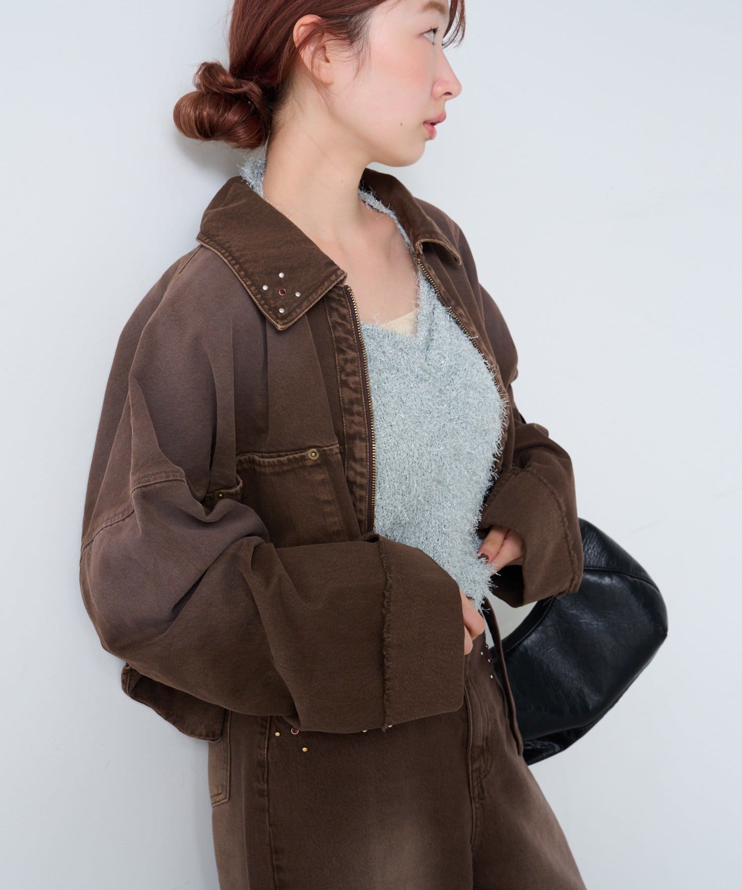 ビジューを散りばめたデザインがアクセントになったデニムジャケット。