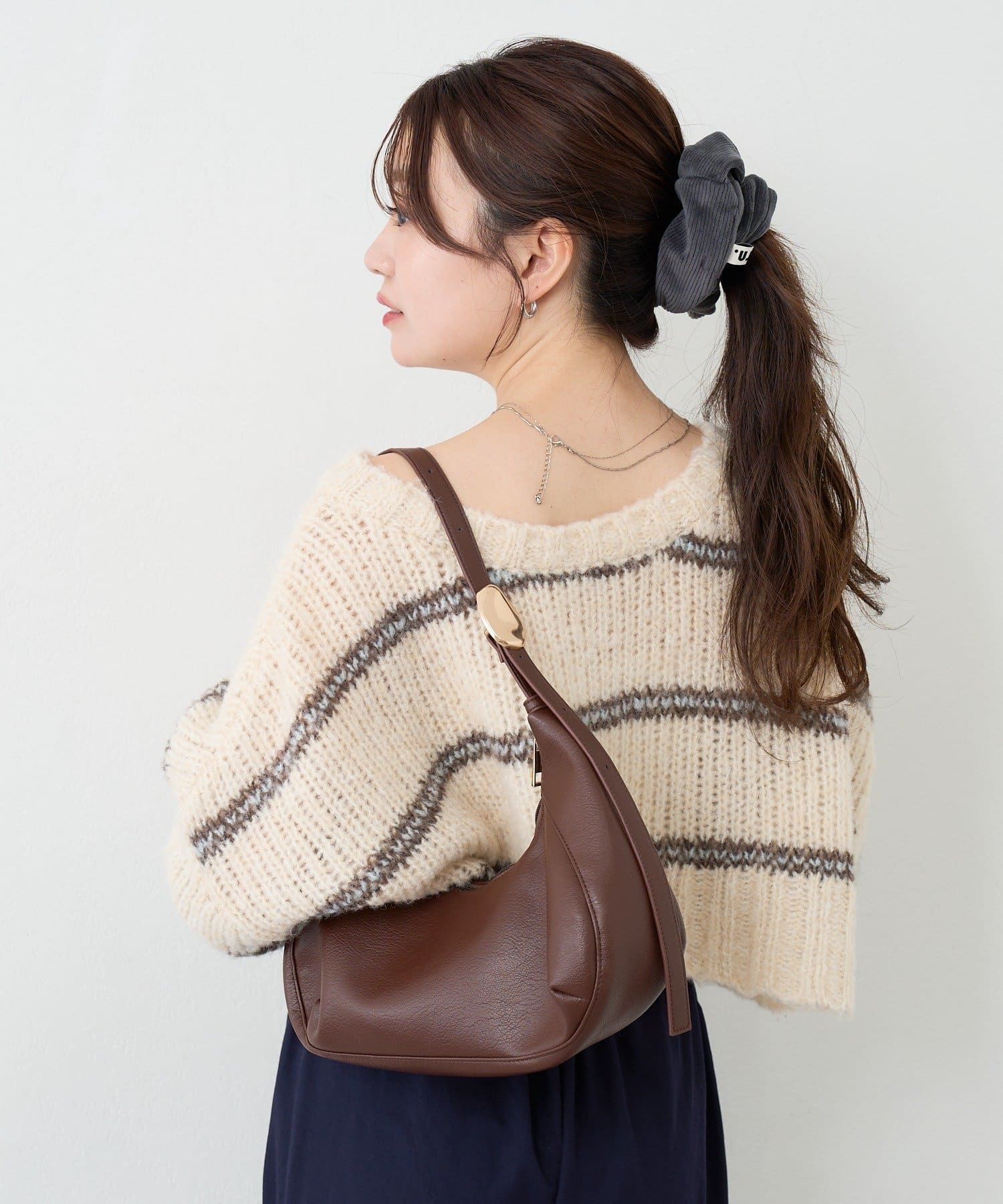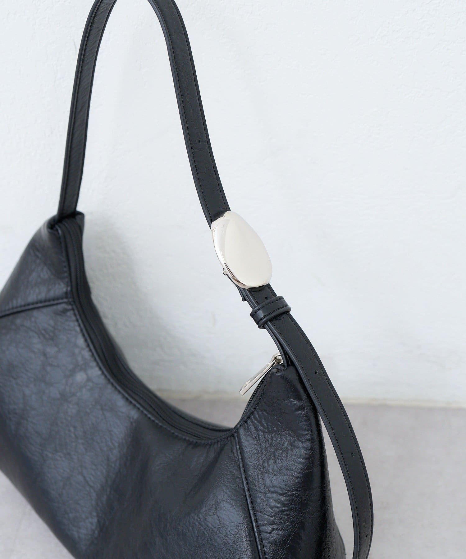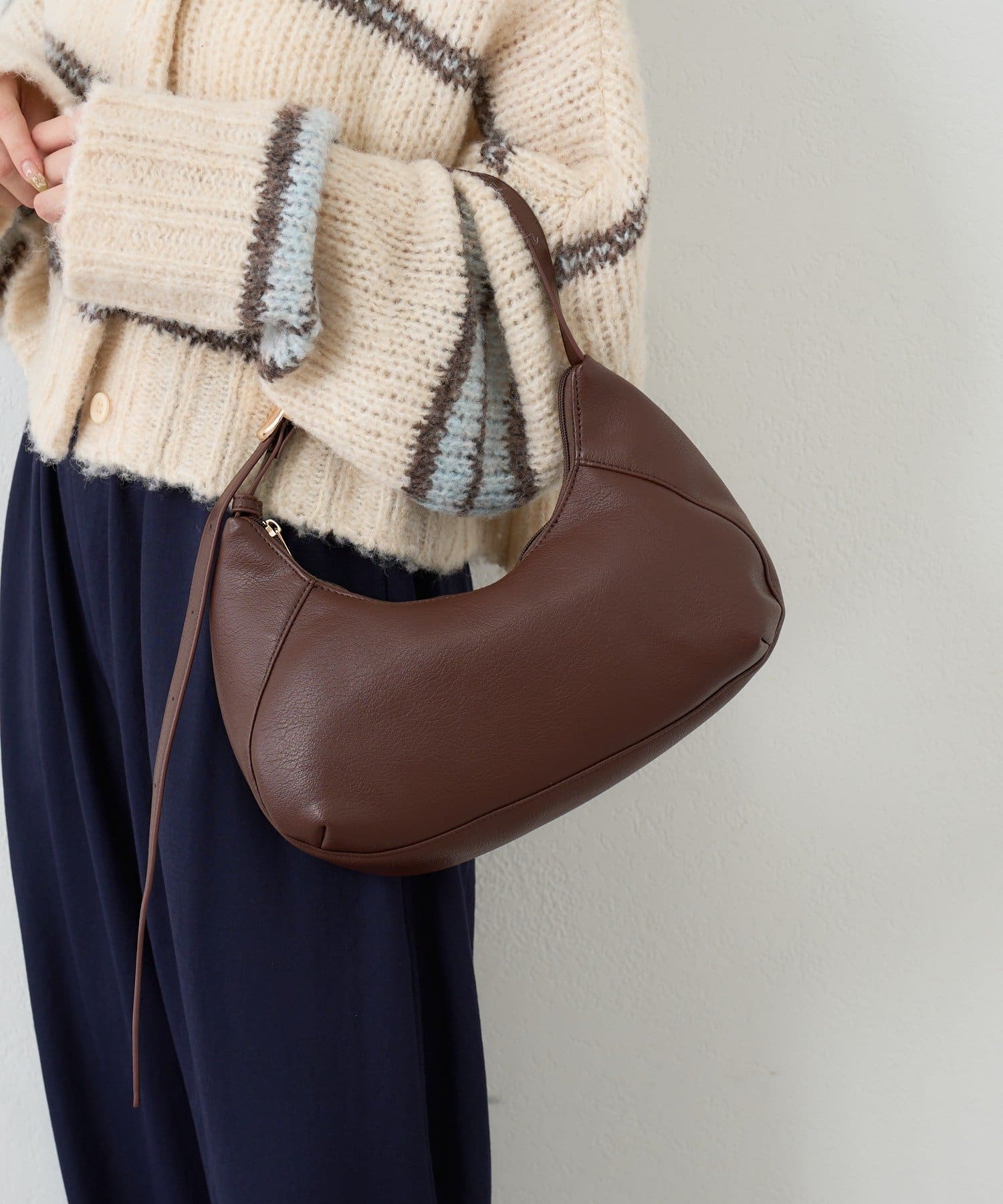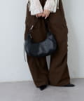 柔らかなレザー調素材と上品なモチーフが魅力のハーフムーンバッグ。