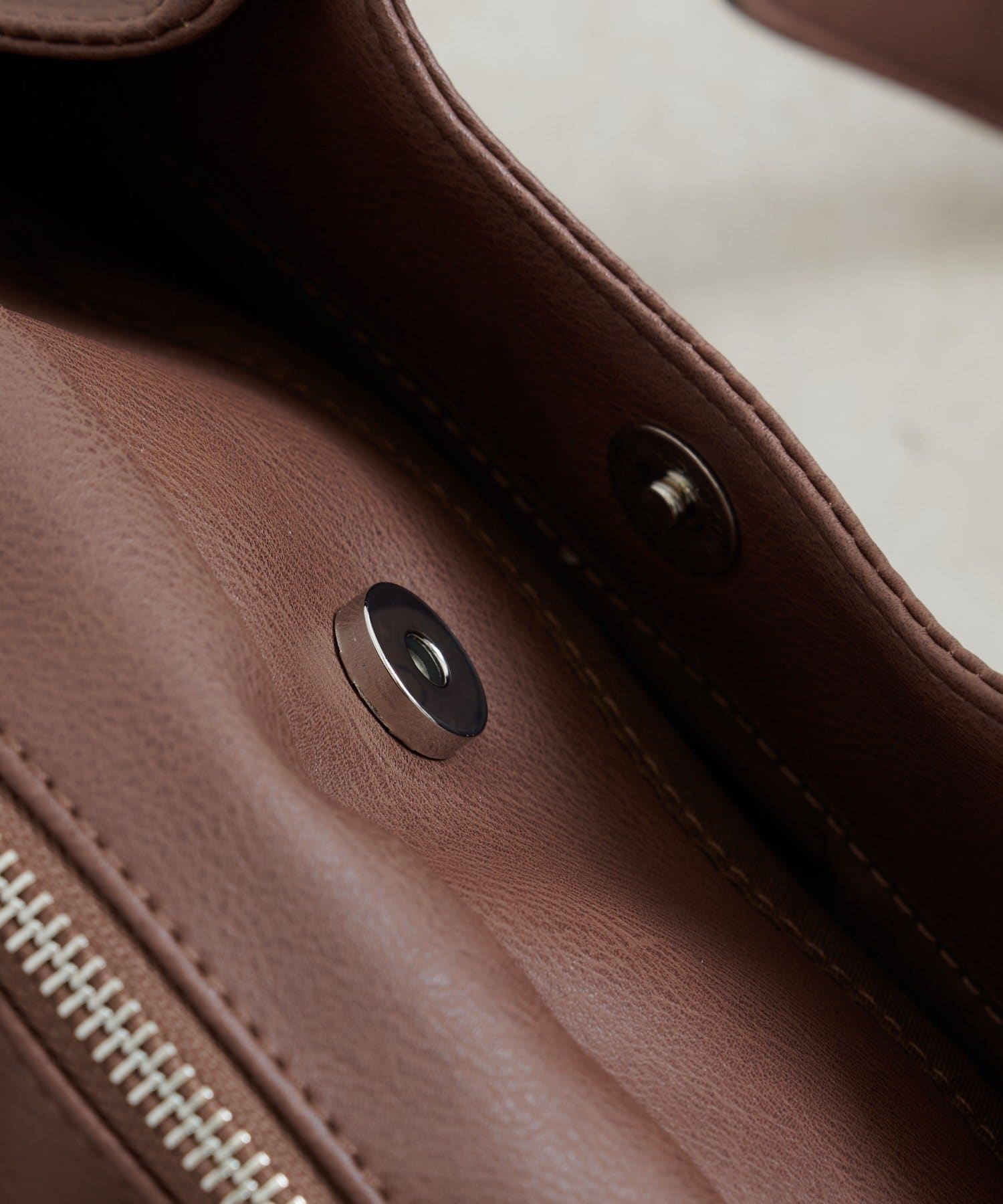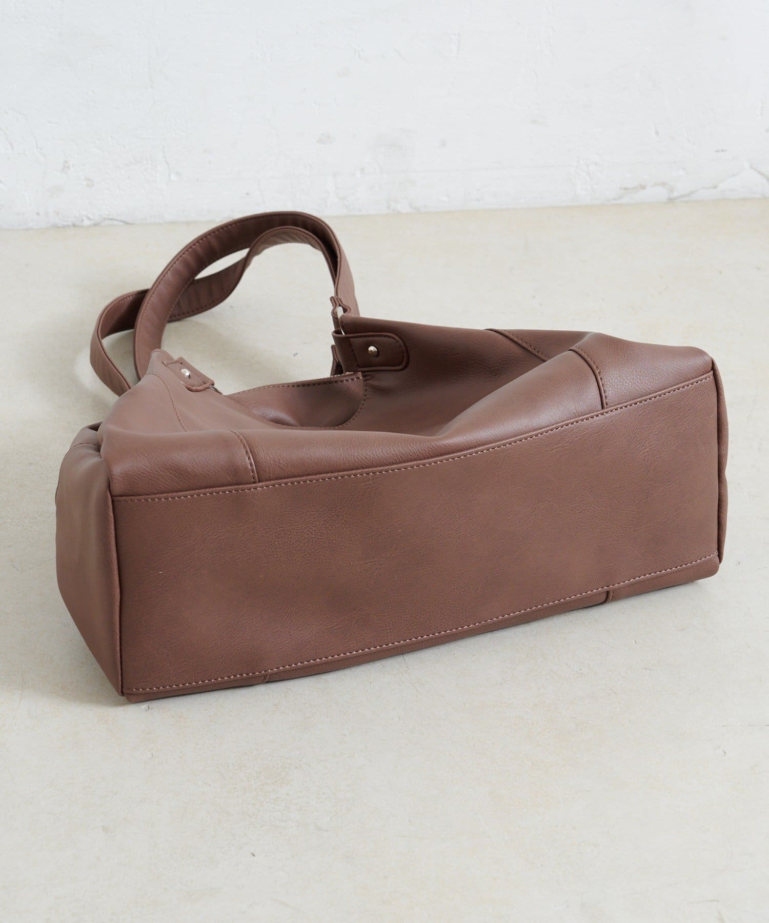 シンプルながらも上品さあるセパレートデザインのミドルバッグ。
