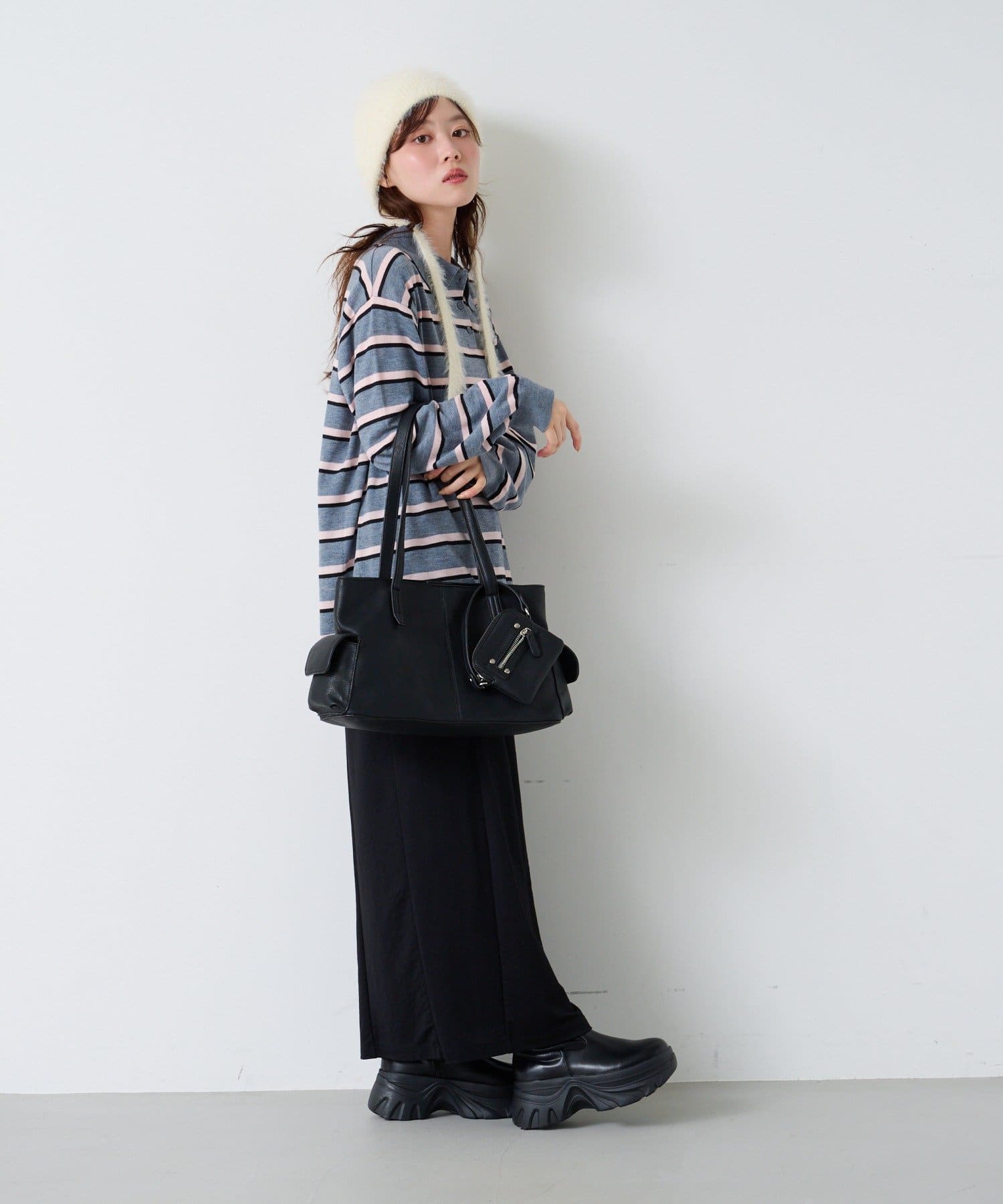 500mlペットボトルや化粧ポーチ、その他持ち歩きの必需品も楽々入るサイズ感が魅力です。