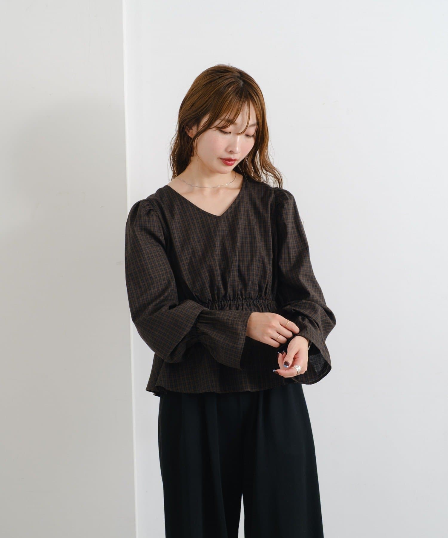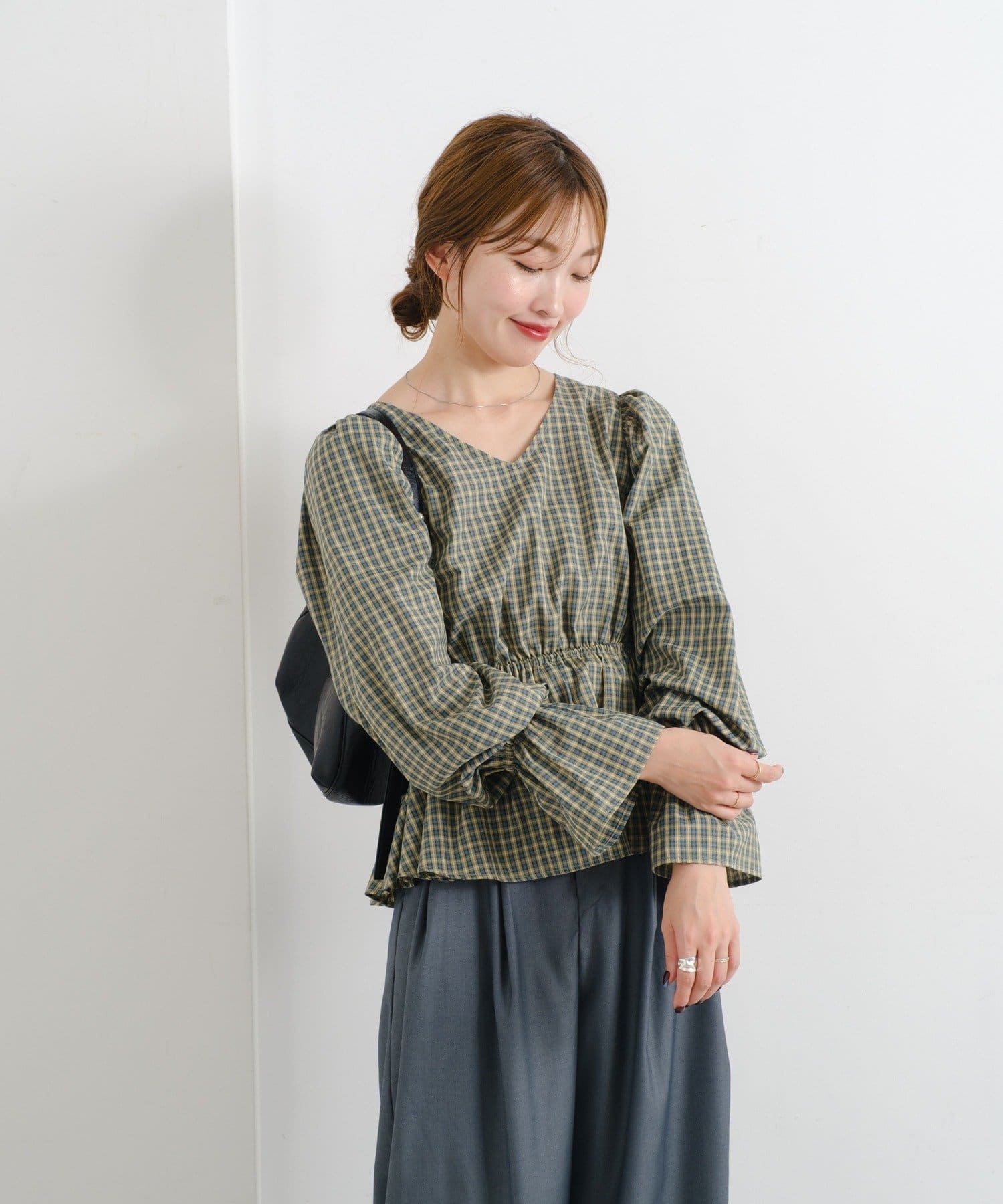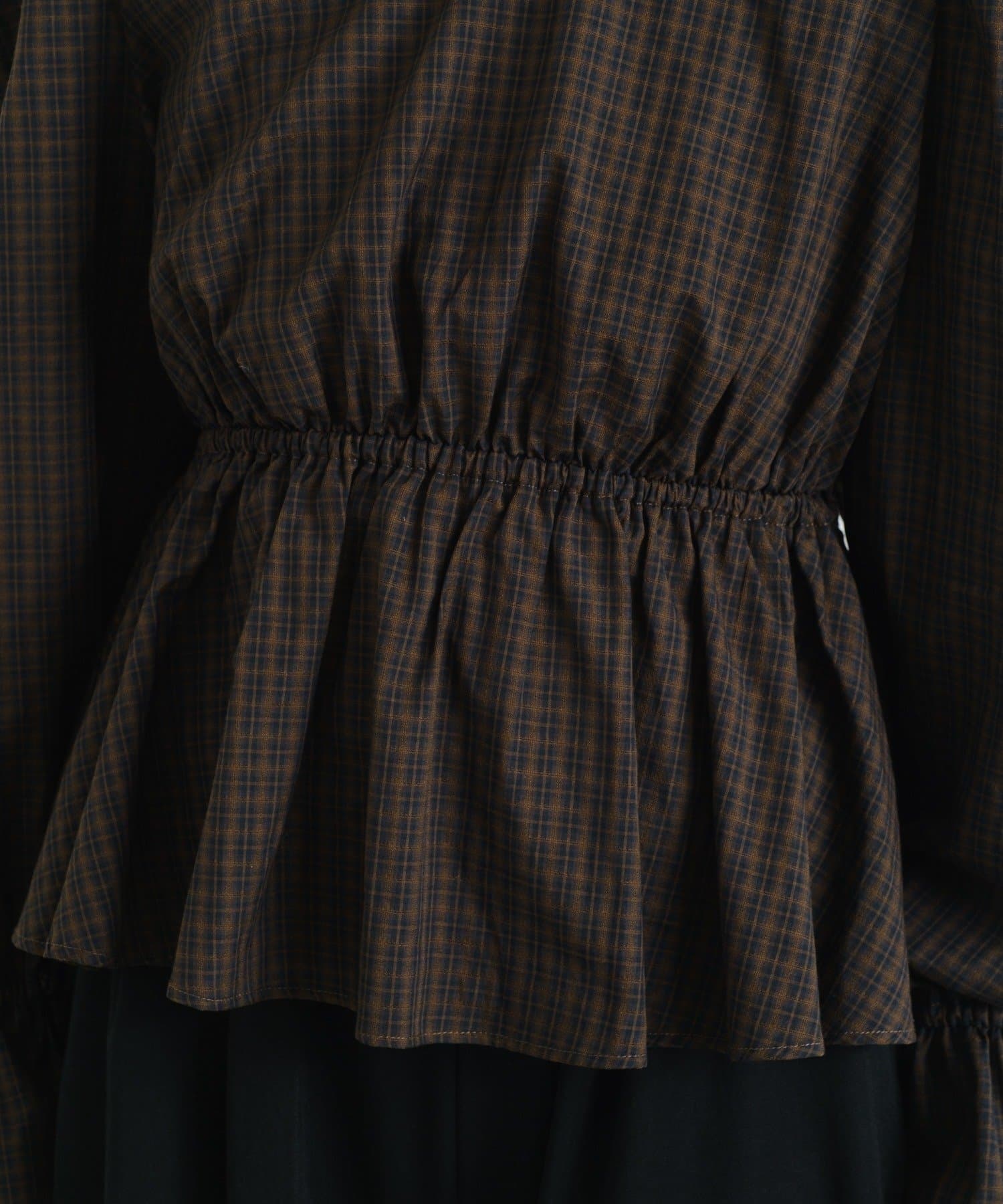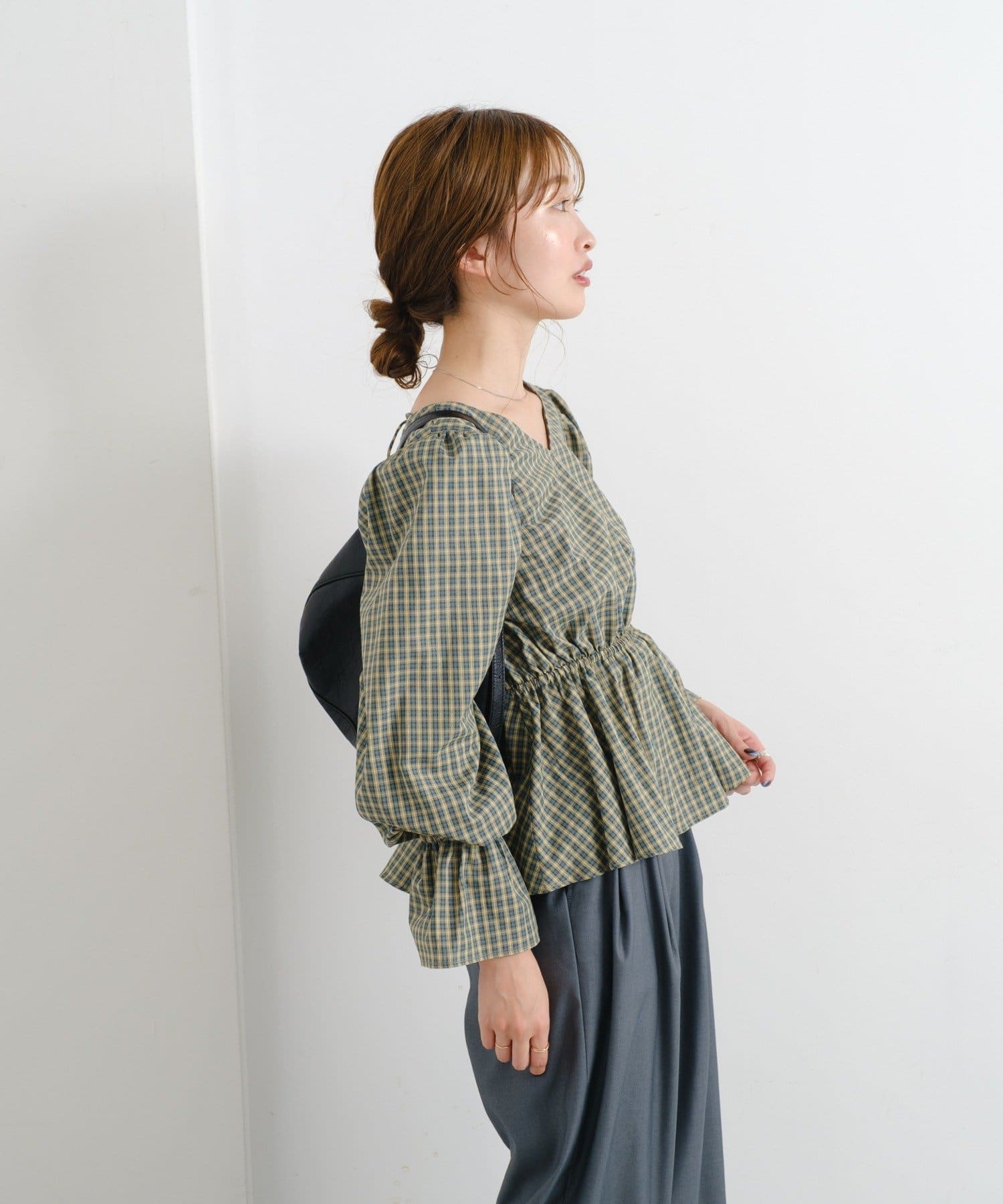 【無地&チェック】B カットアウトペプラムブラウス