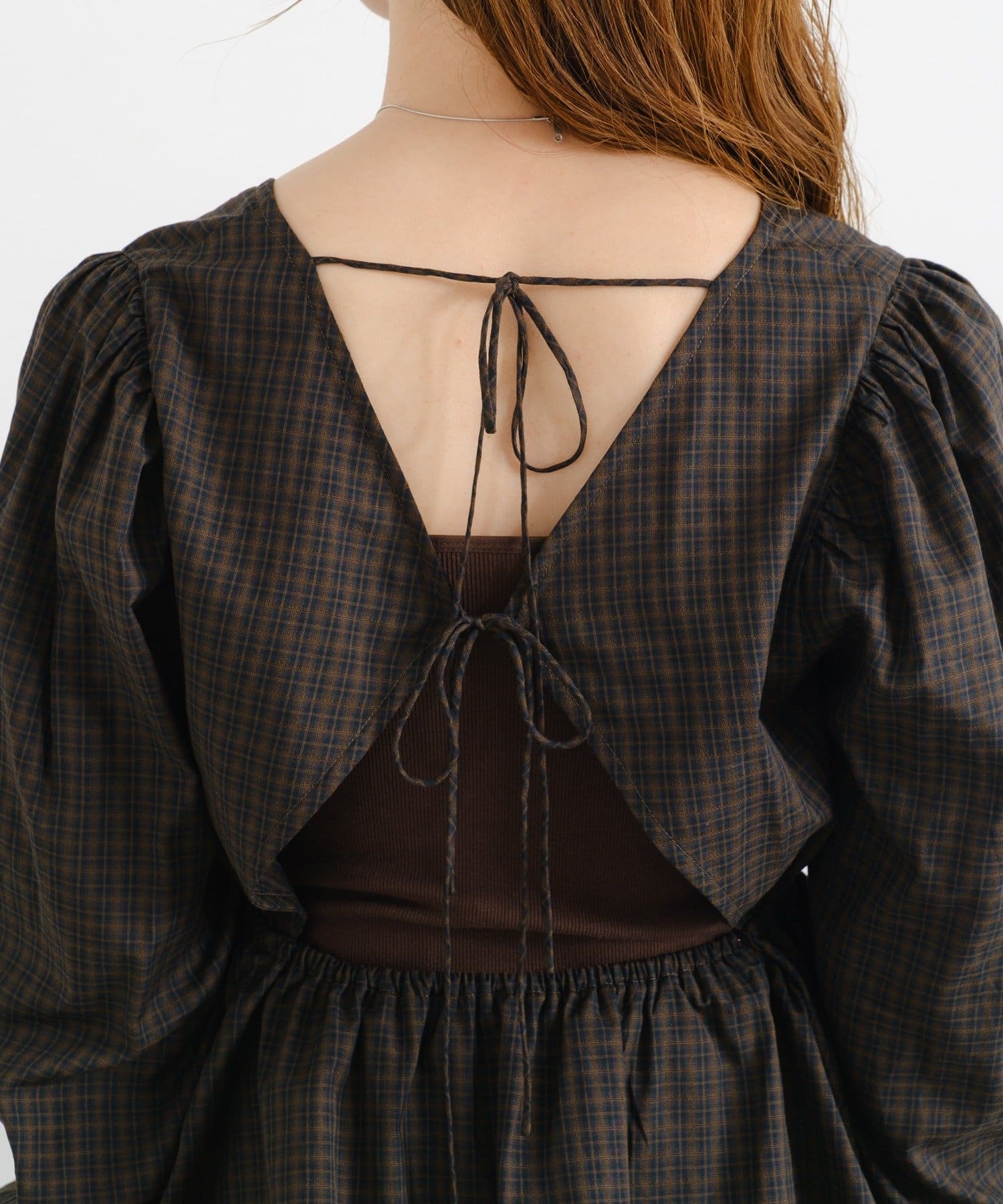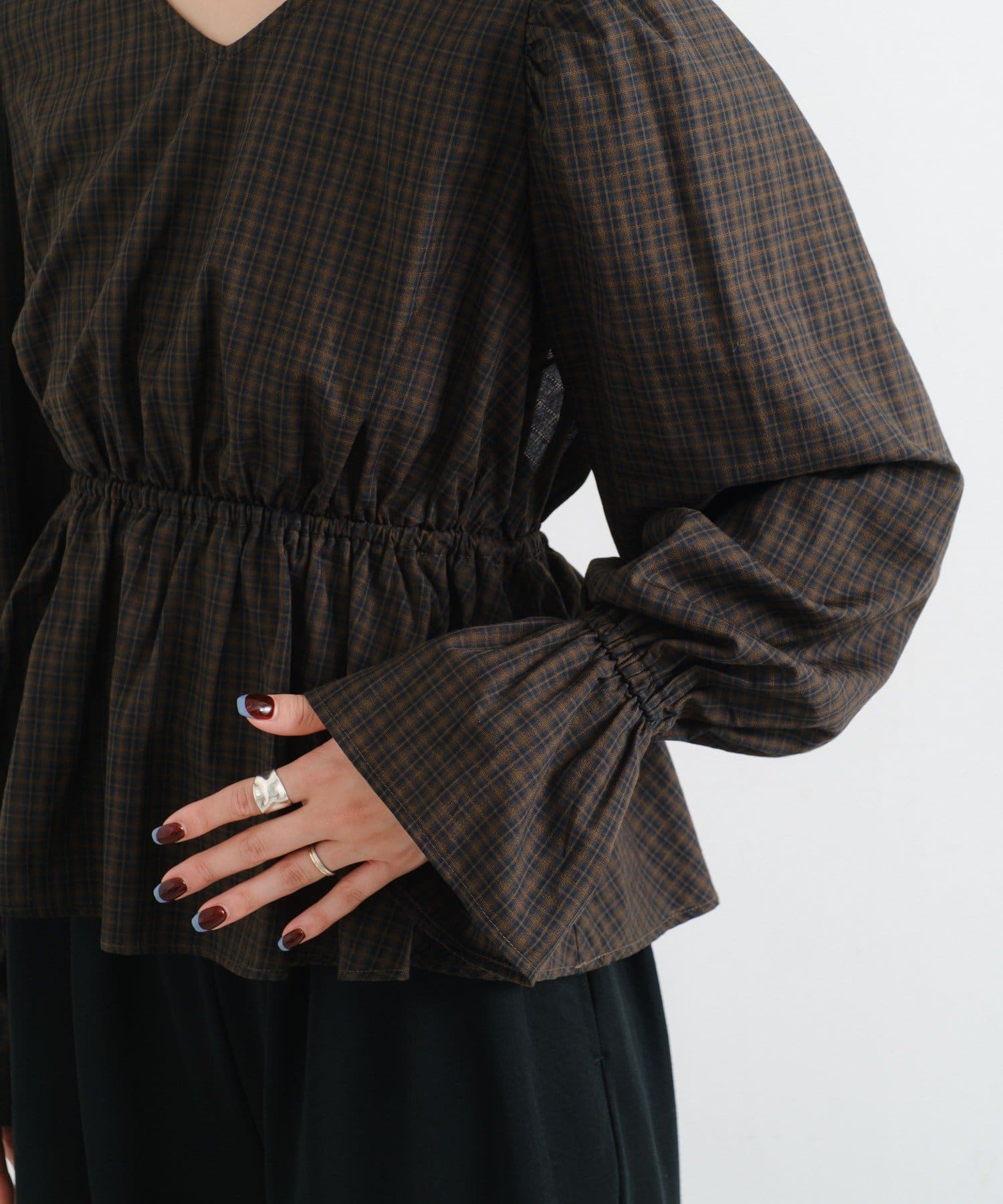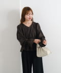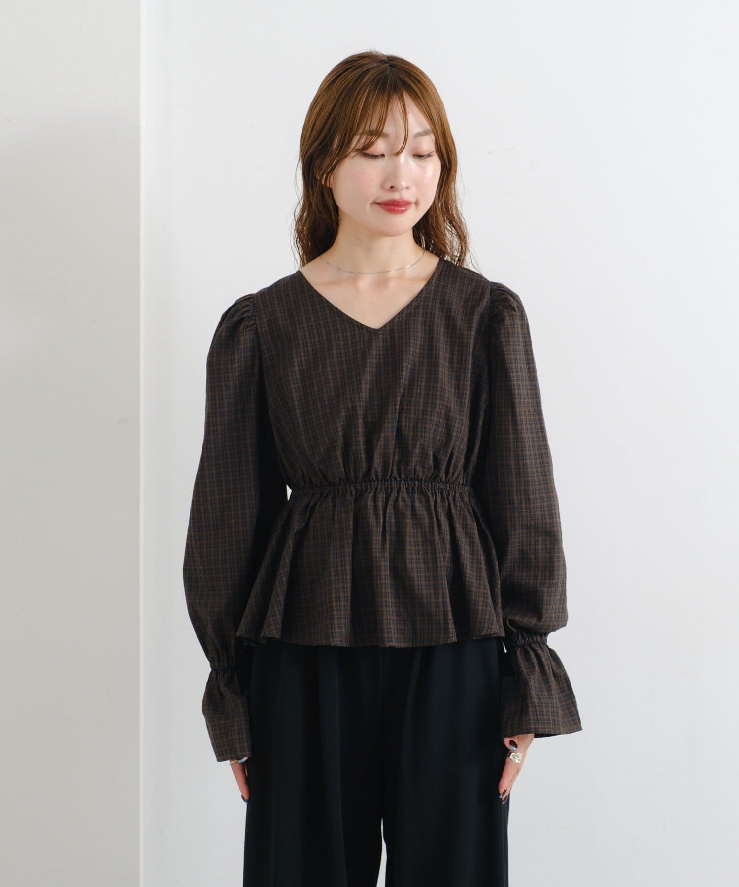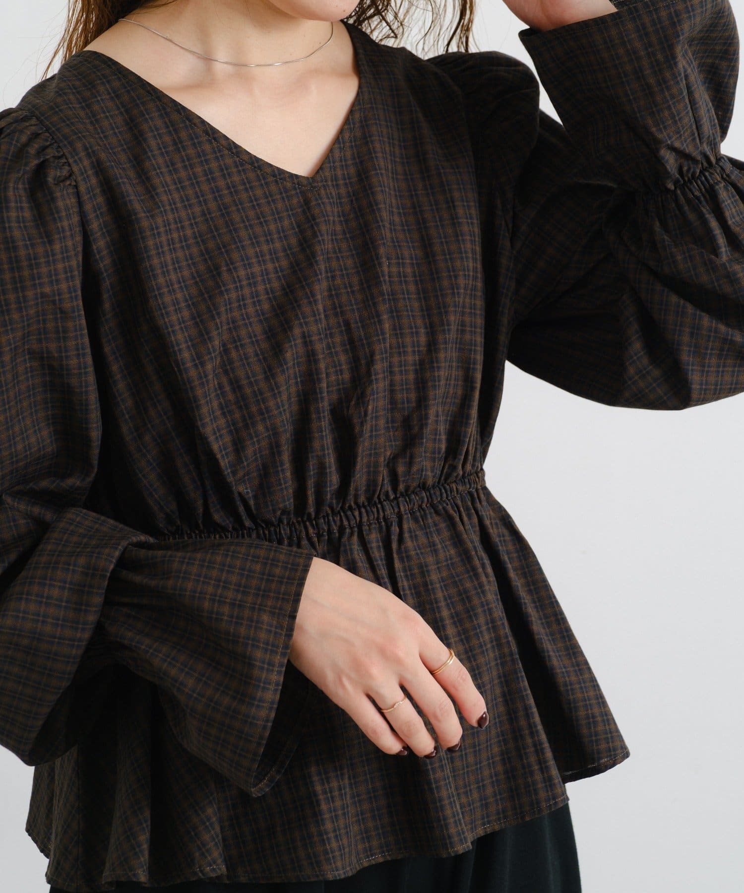 【無地&チェック】B カットアウトペプラムブラウス