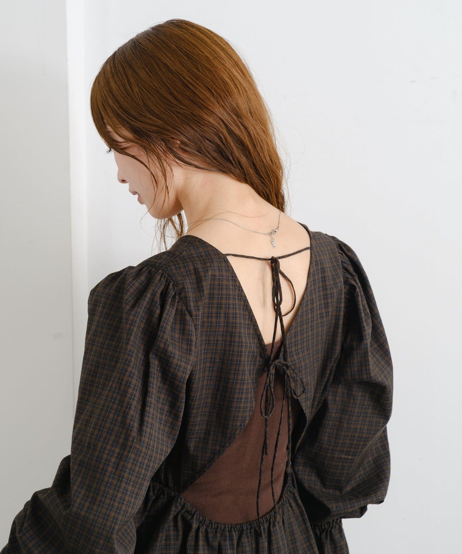 リボンの結び目がさりげないアクセントに。シンプルな中にも個性が光る一枚です。