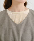前後どちらを前にしても着られる仕様で、Vネック・ラウンドネックの2つの表情が楽しめます。