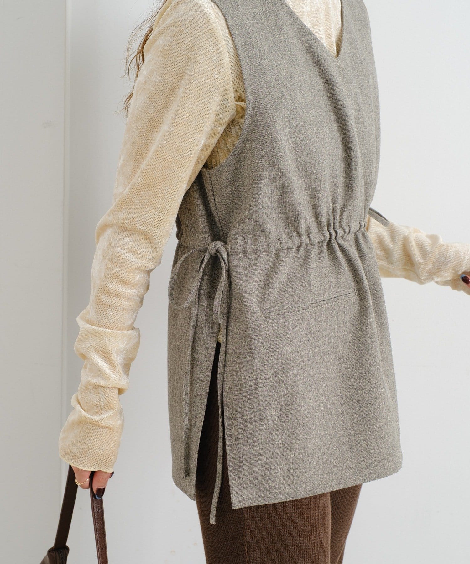 前後2wayで着回し自在、ウエスト調整でスタイルアップも叶う万能ベスト