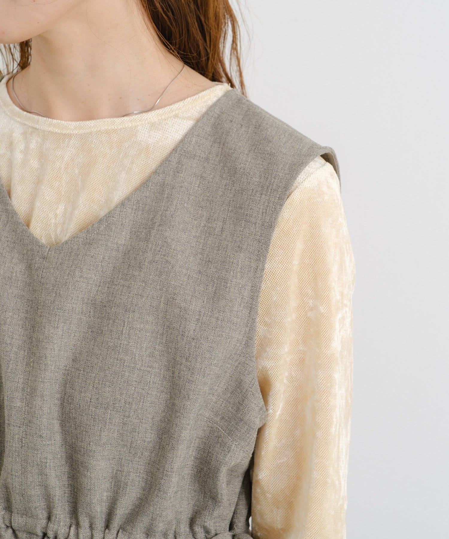 ワンピースの上に重ねてレイヤードアクセントにも。