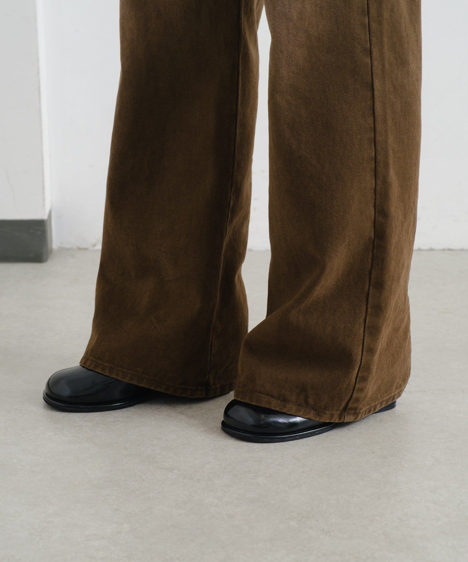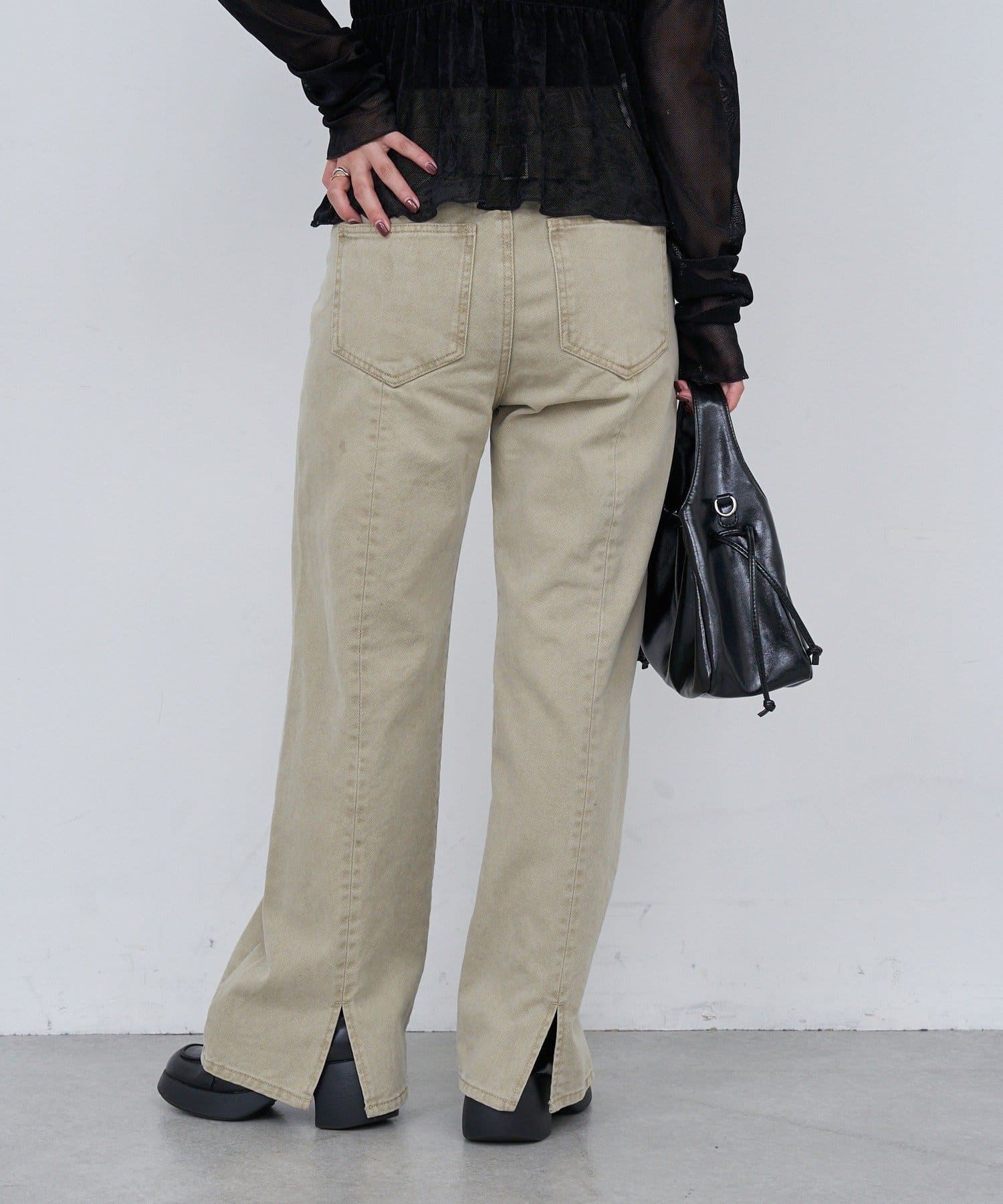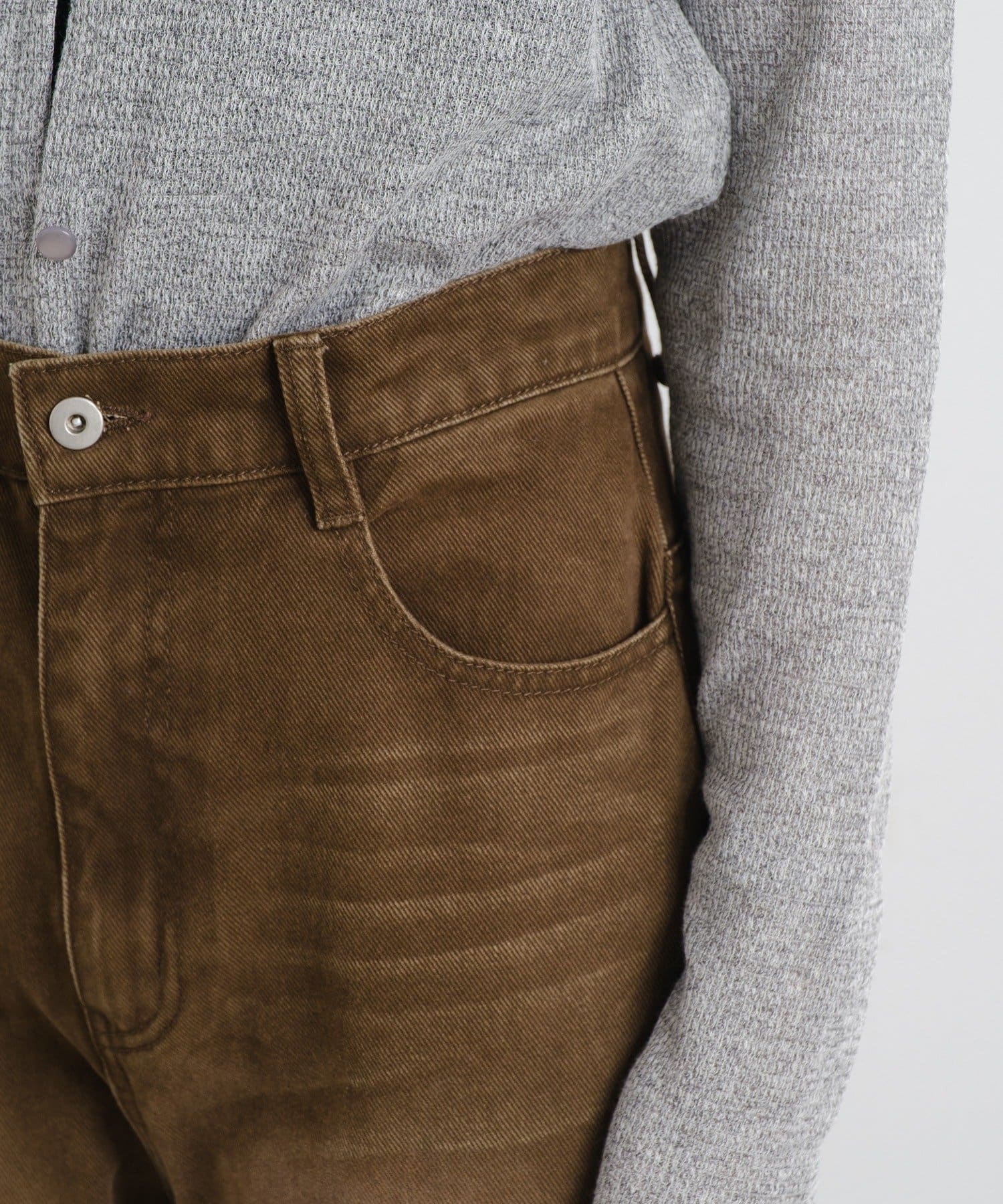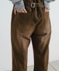 バックスタイルのベルトデザインがアクセントになったツイルストレートパンツ。