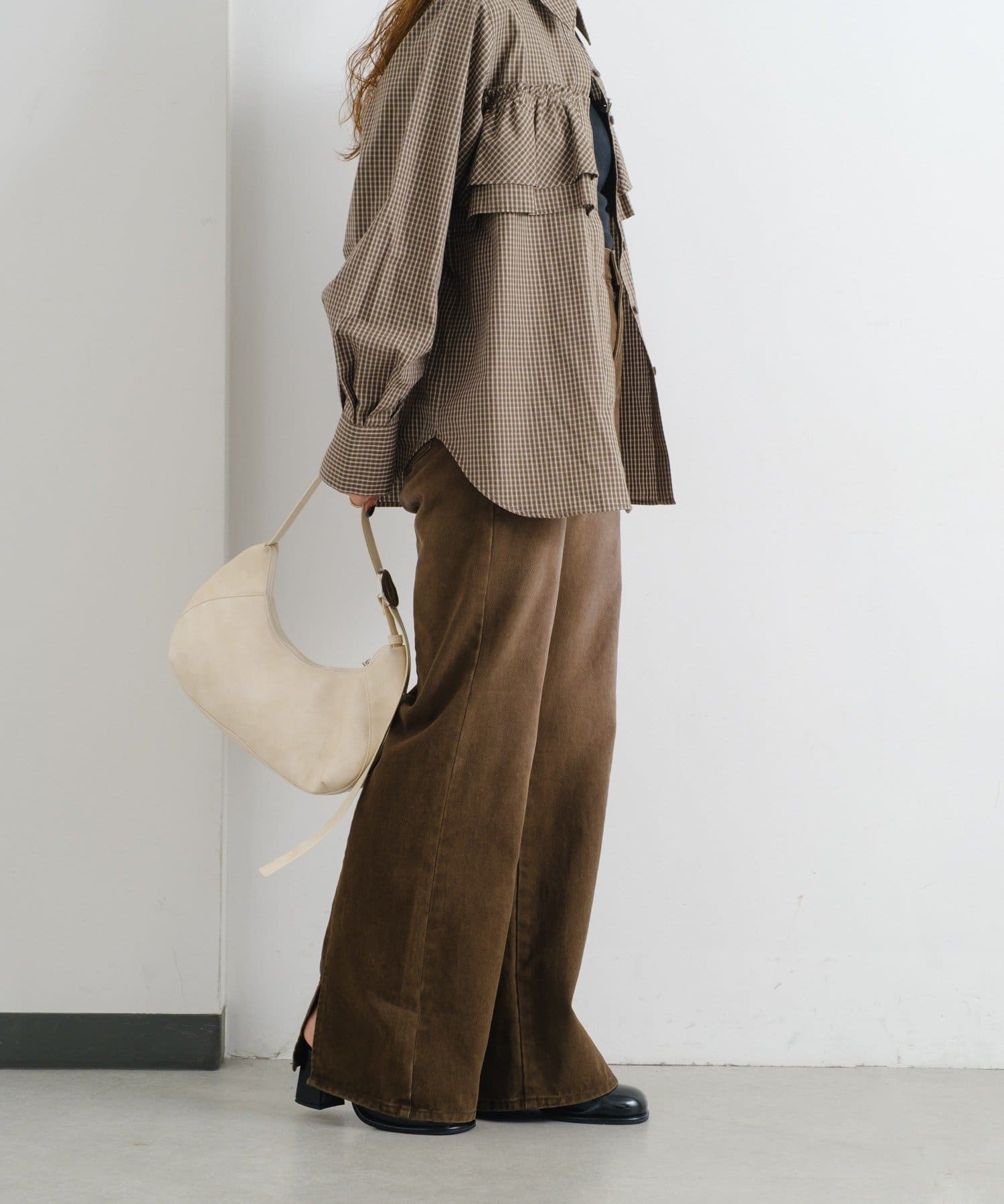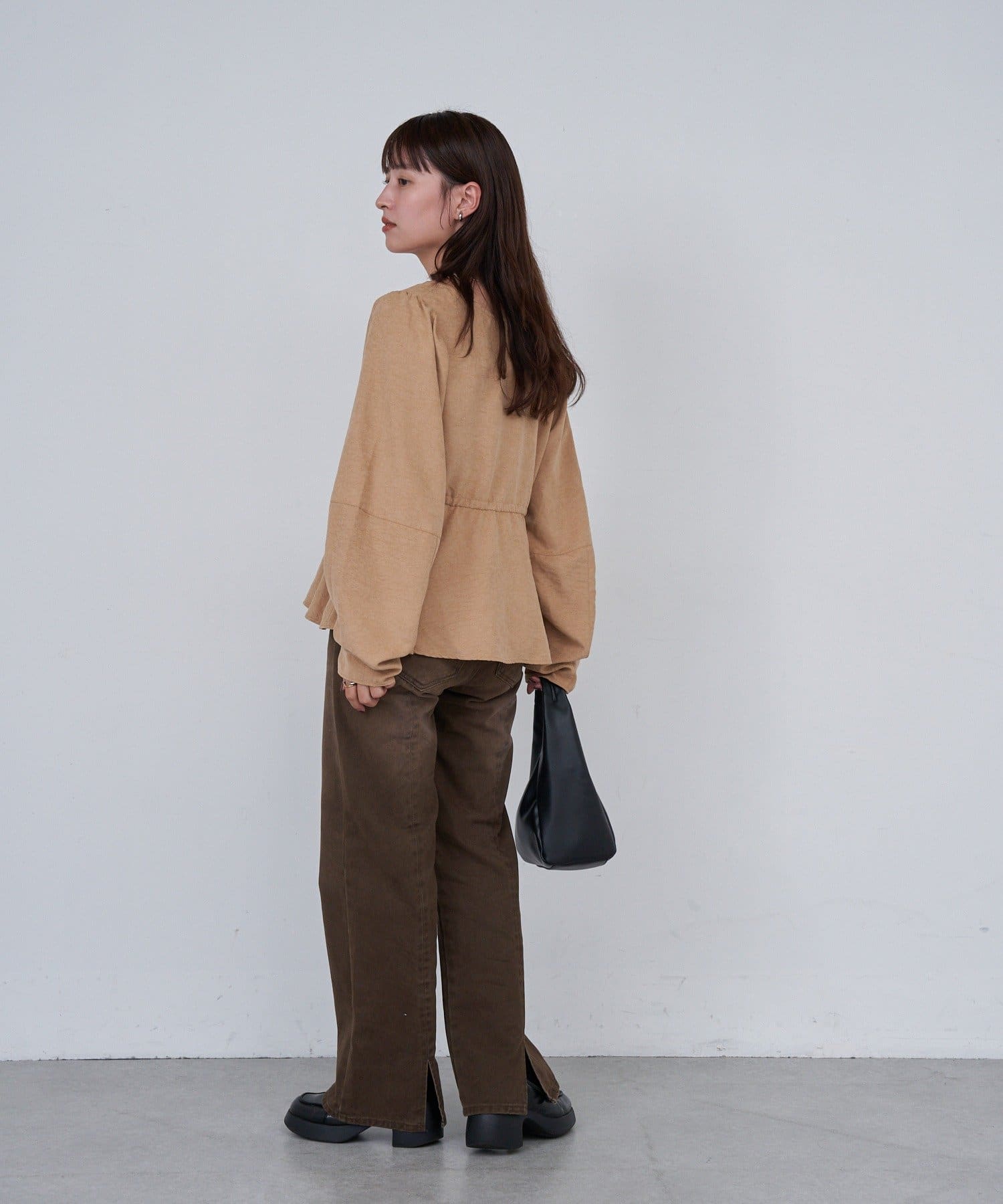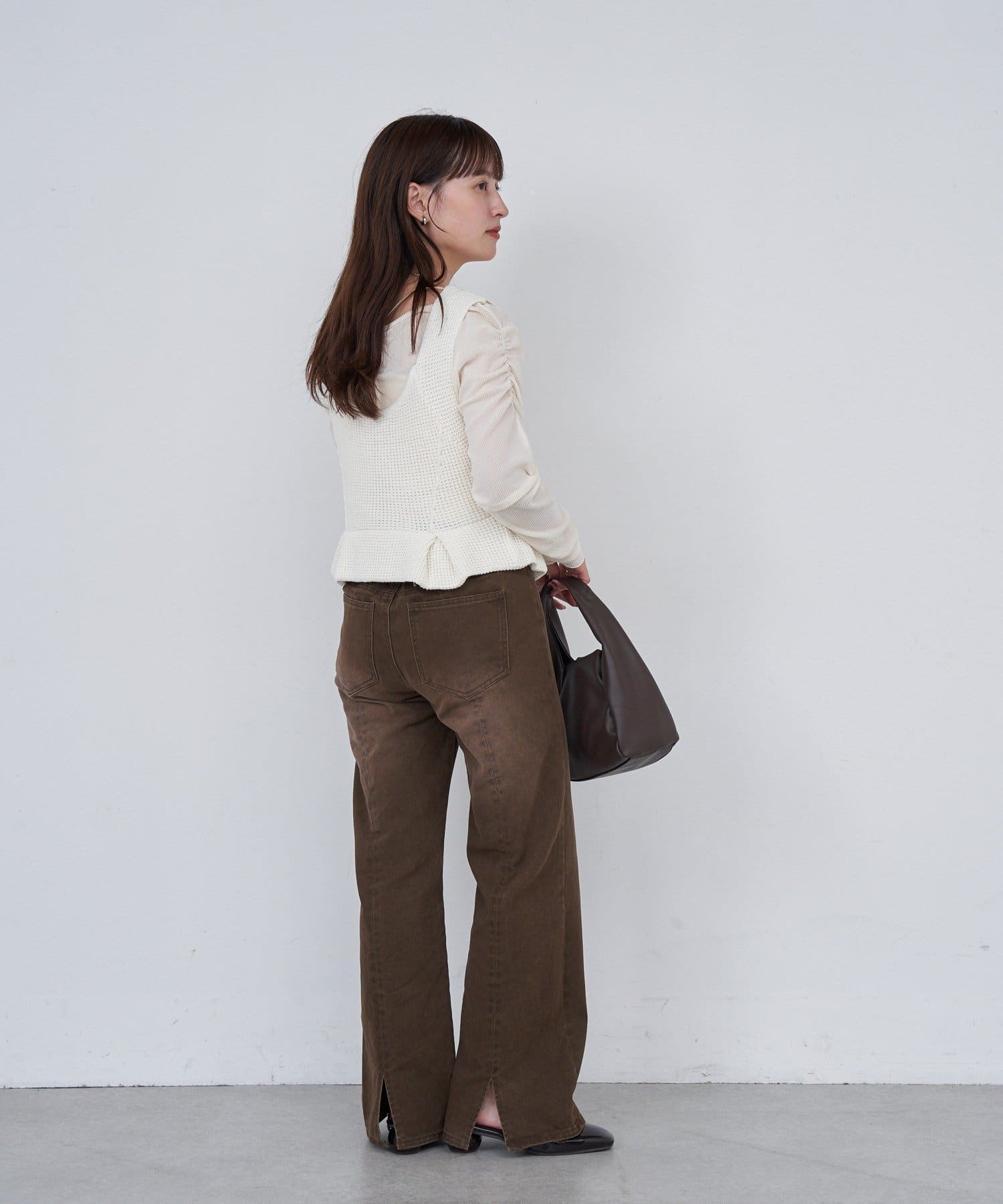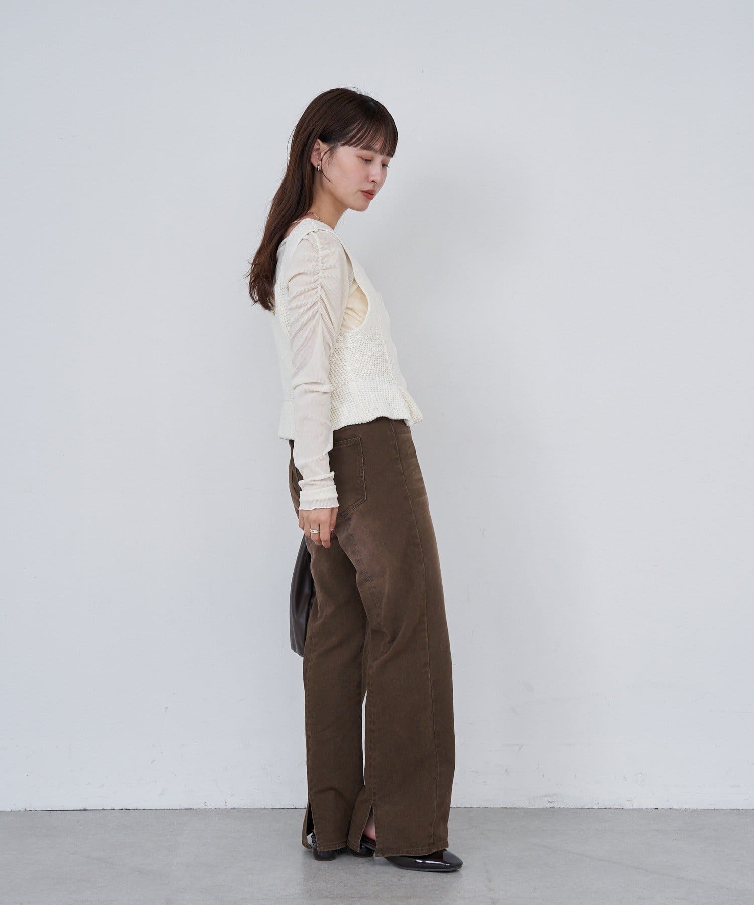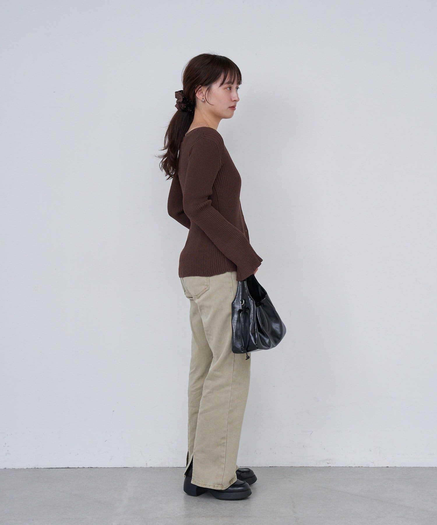 裾のスリットが抜け感をプラスし、シンプルながらもこなれた印象に仕上げます。