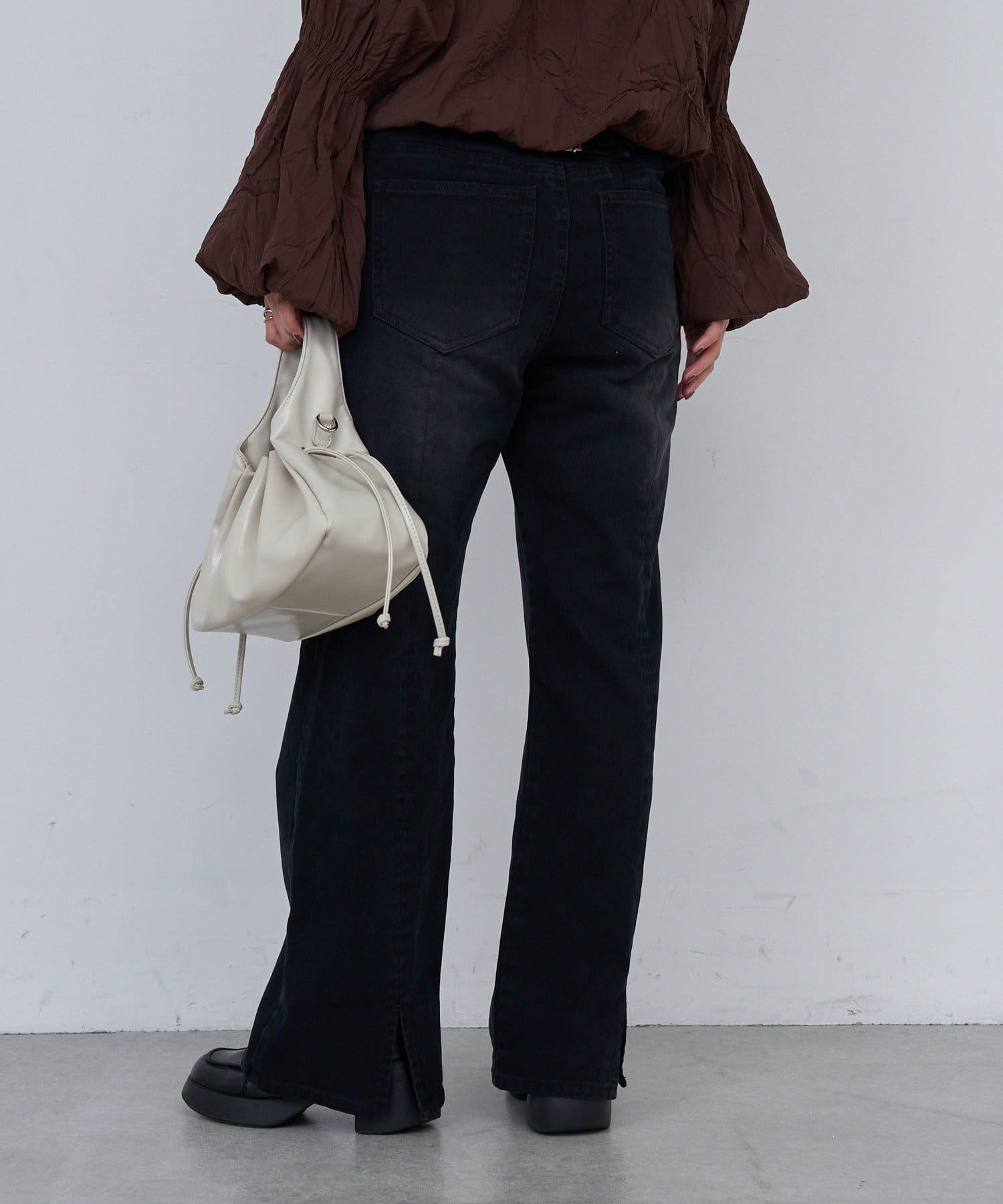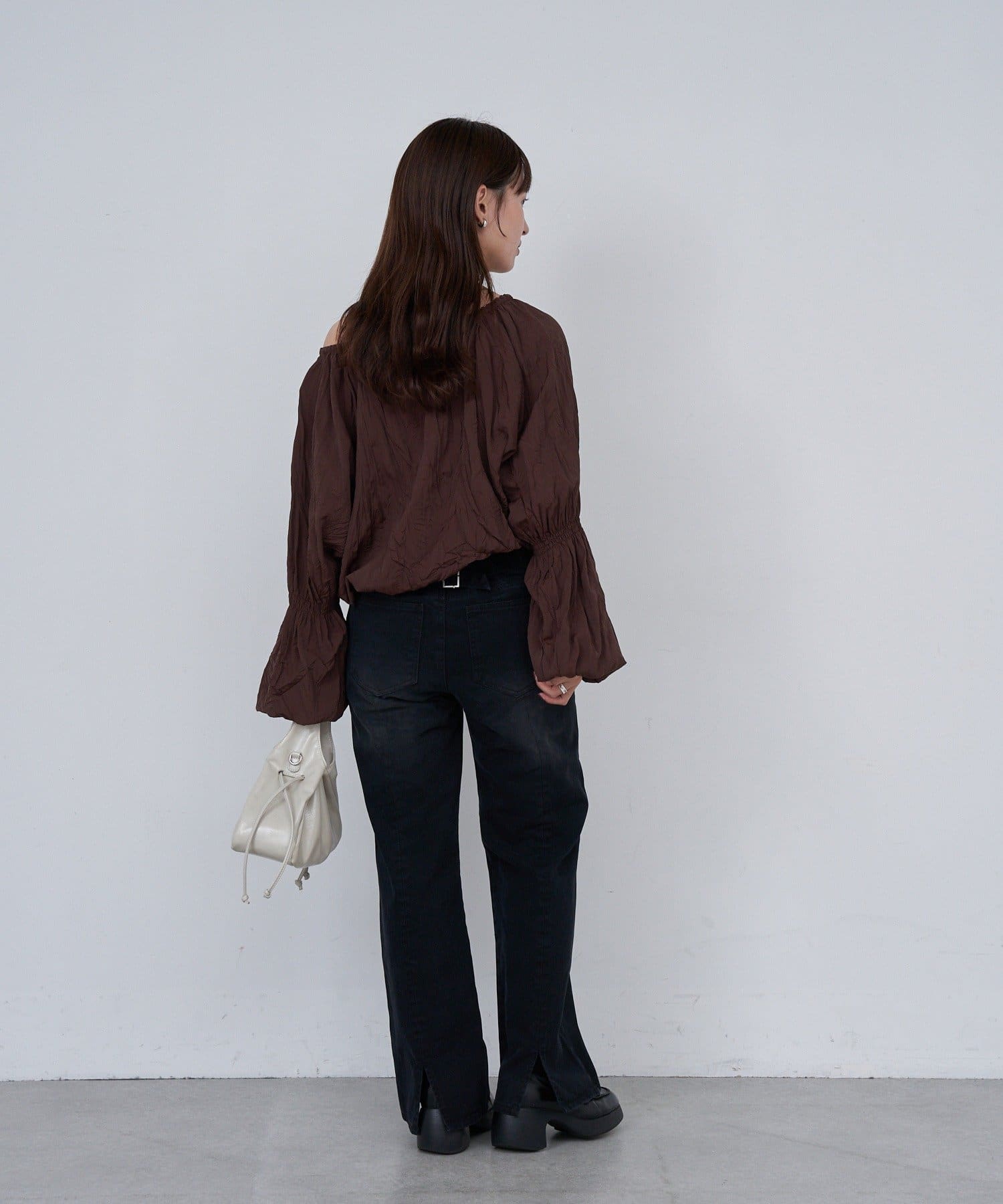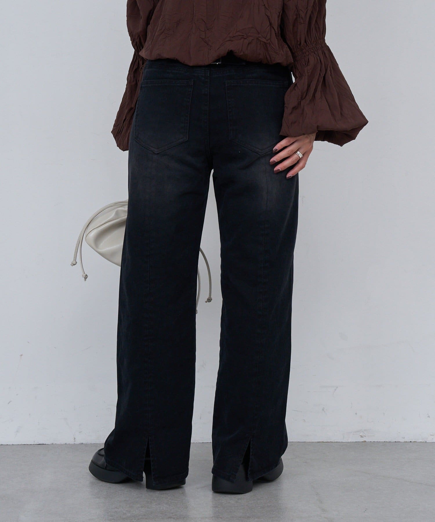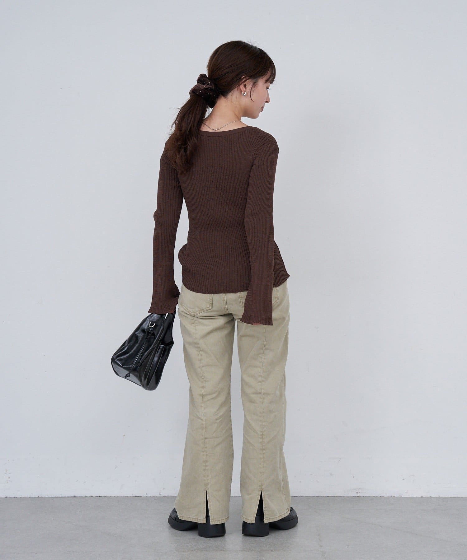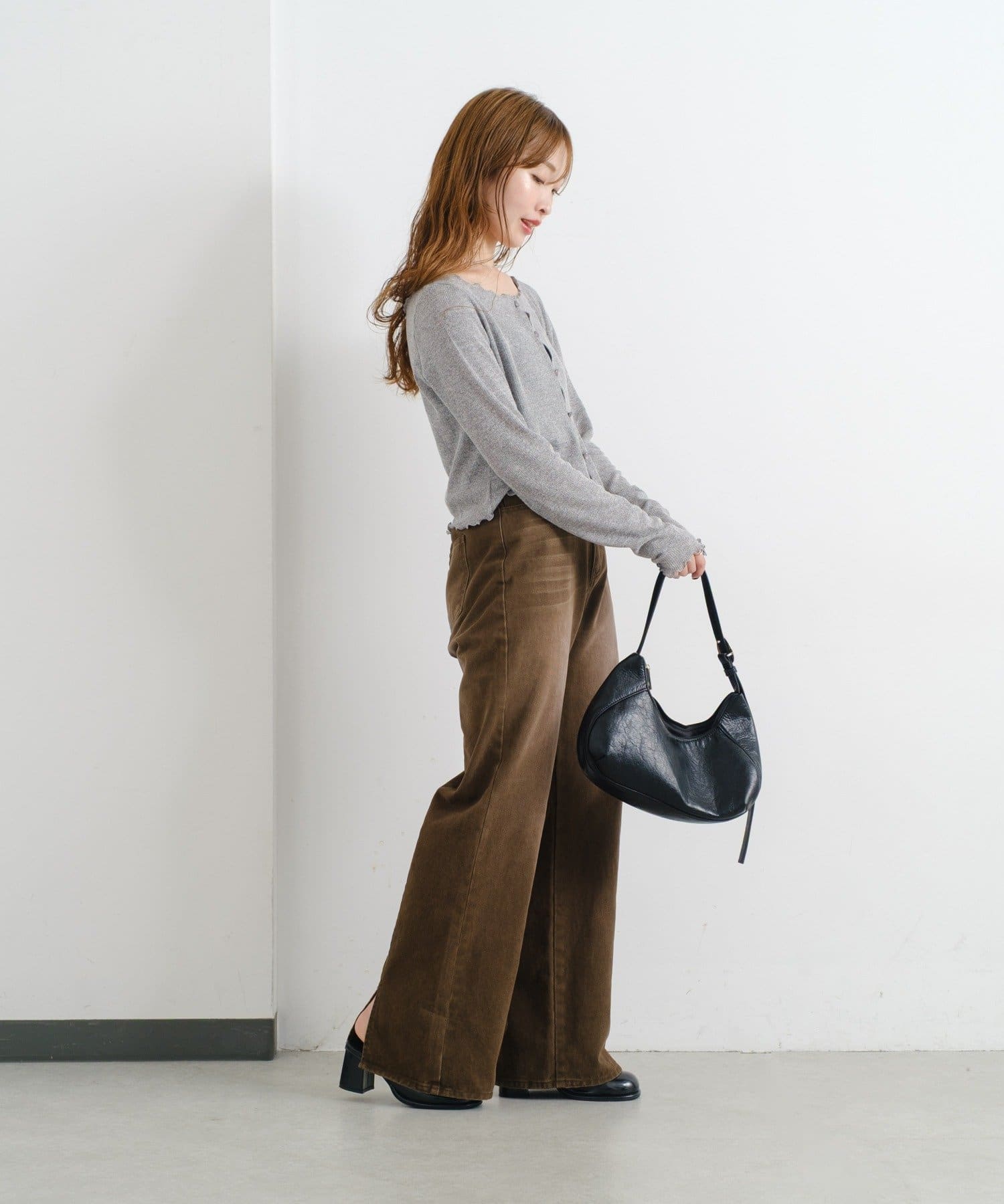 裾のスリットが抜け感をプラスし、シンプルながらもこなれた印象に仕上げます。