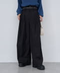 タックを入れることで腰まわりに程よいゆとりを持たせ、裾にかけてストンと落ちるワイドシルエットが脚を長くすっきりと見せてくれます。