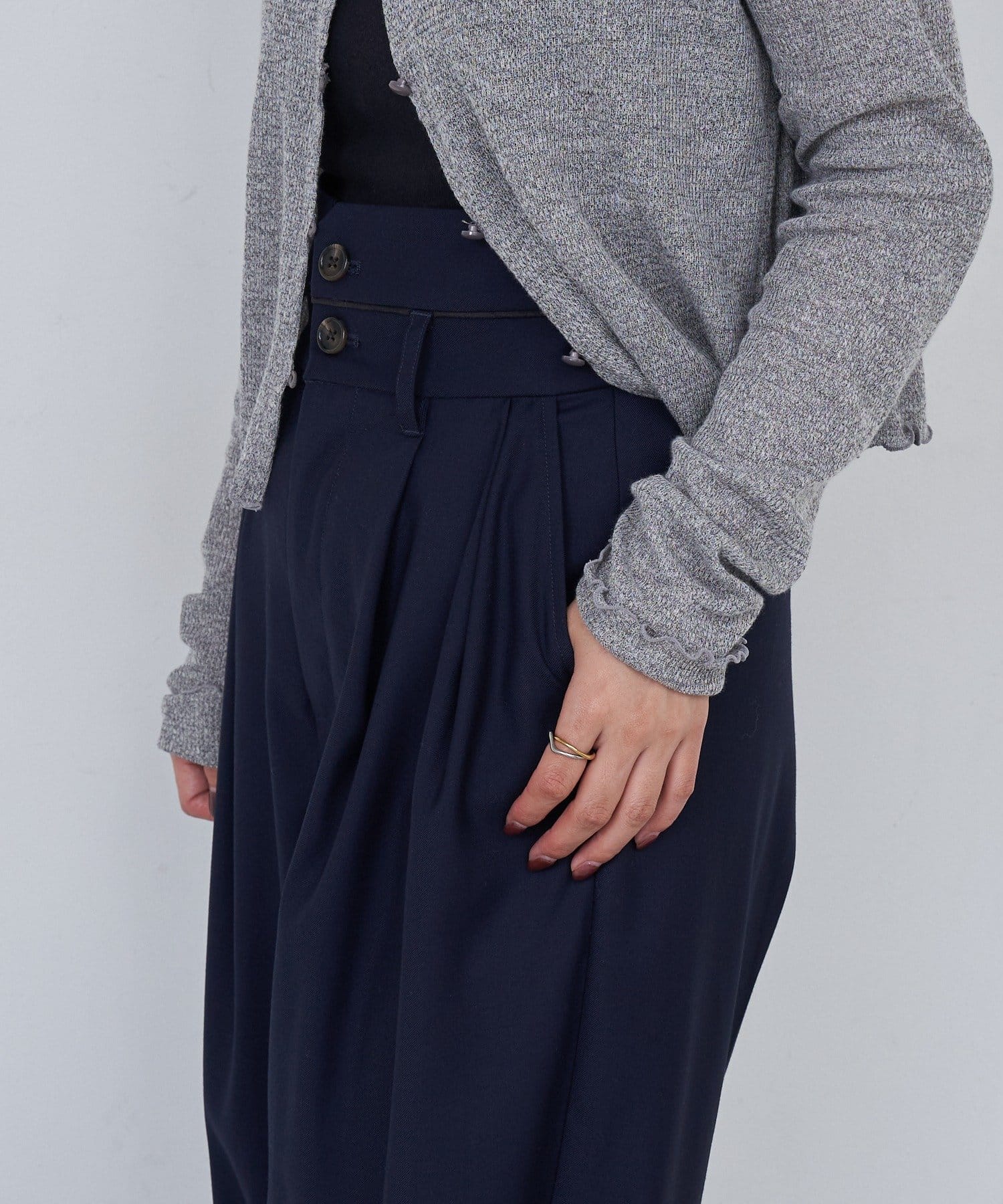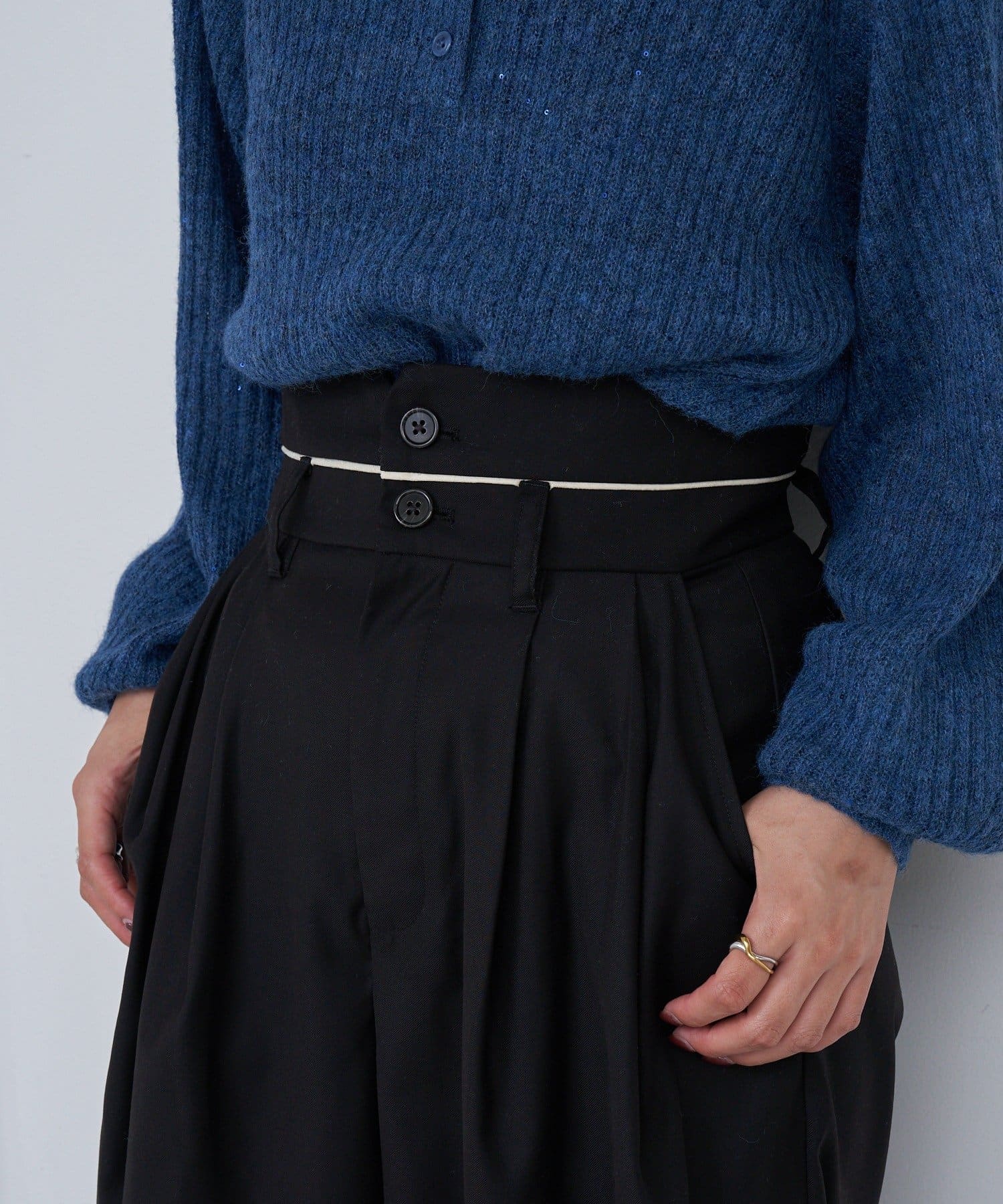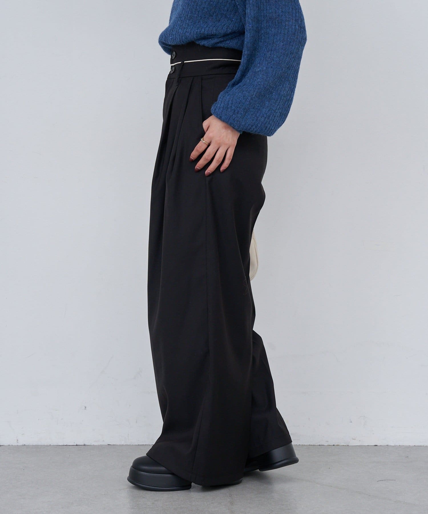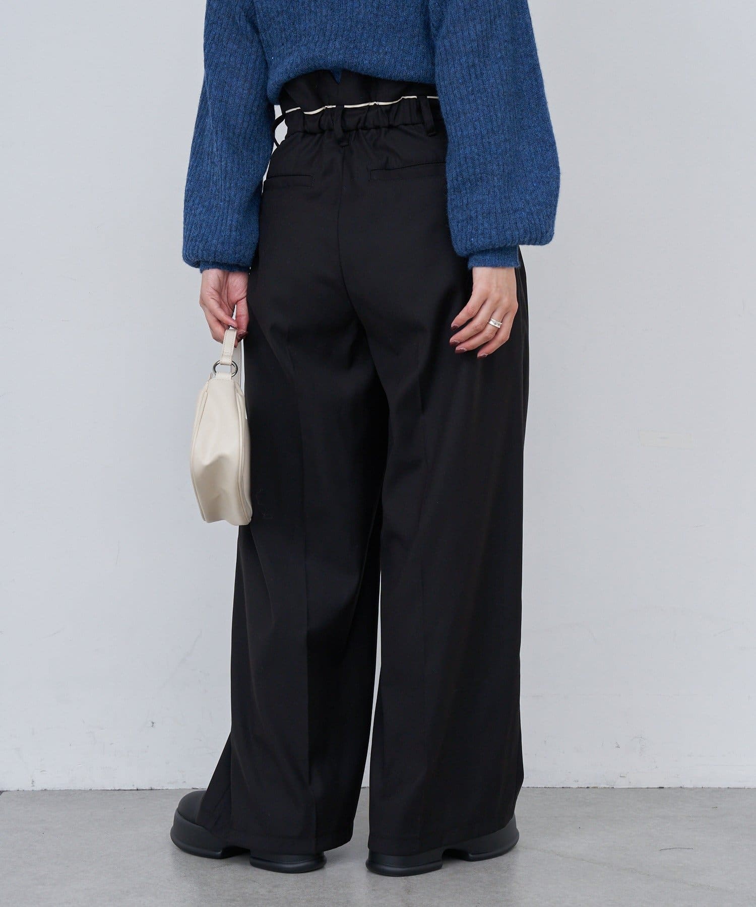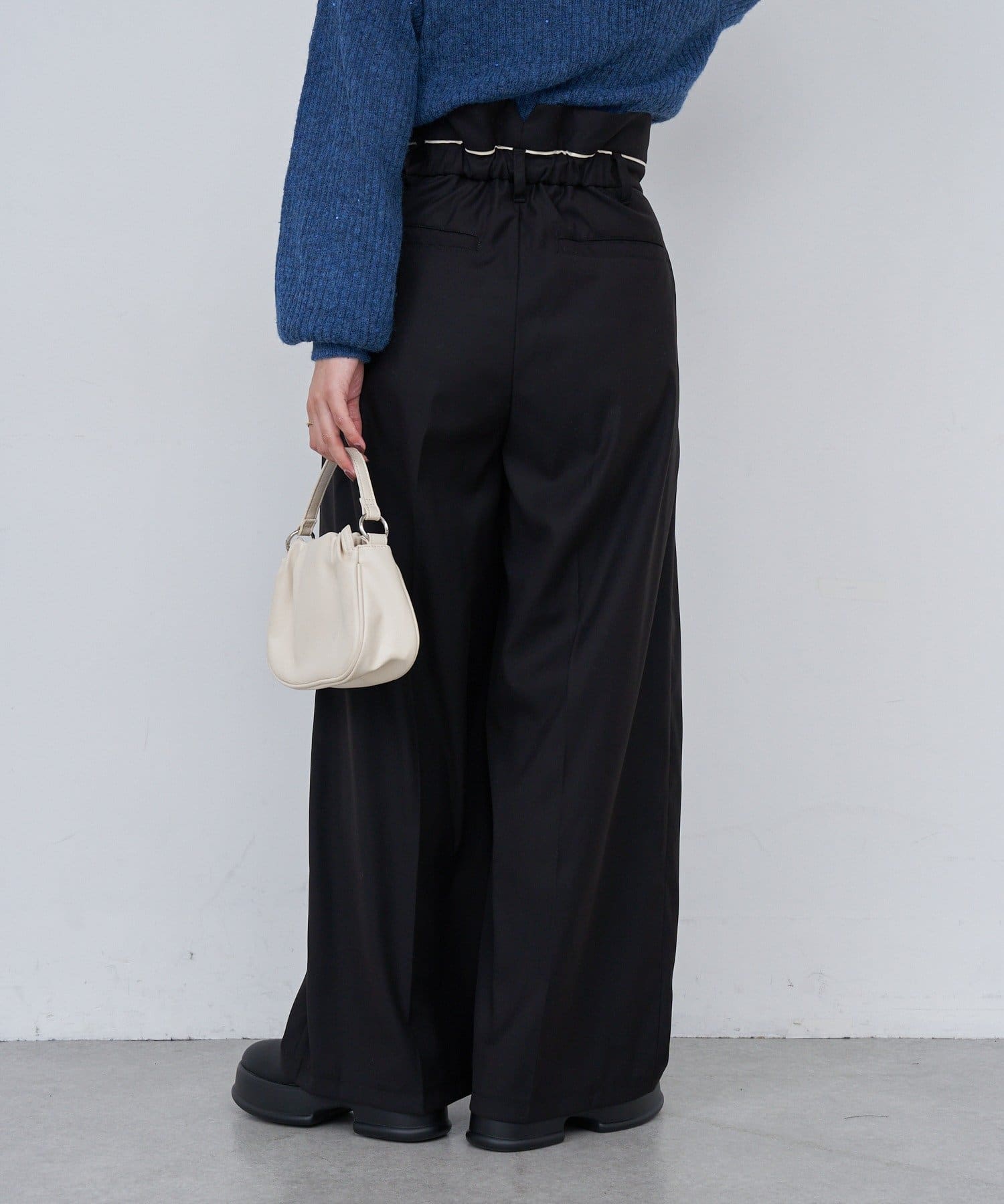 ウエスト部分に施したパイピングデザインがアクセントになったハイウエストパンツ。