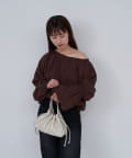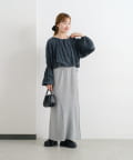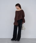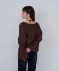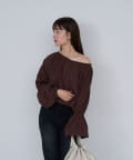 オフショルダー風のデザインで、デコルテを美しく見せつつ、リラックス感も演出。