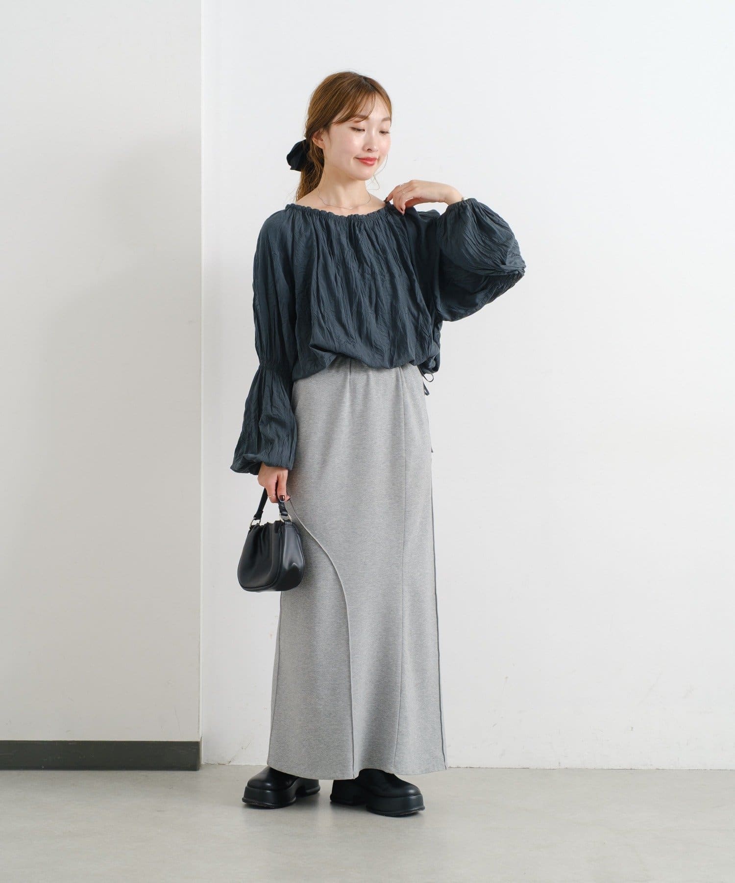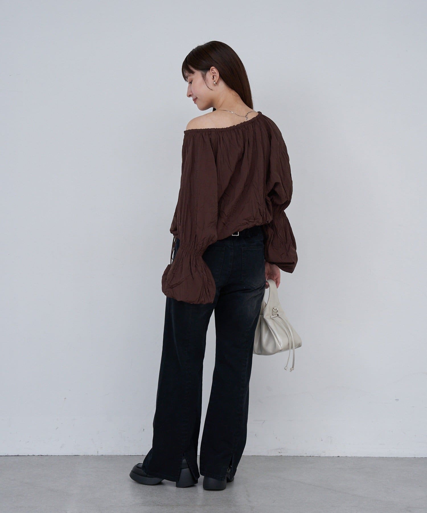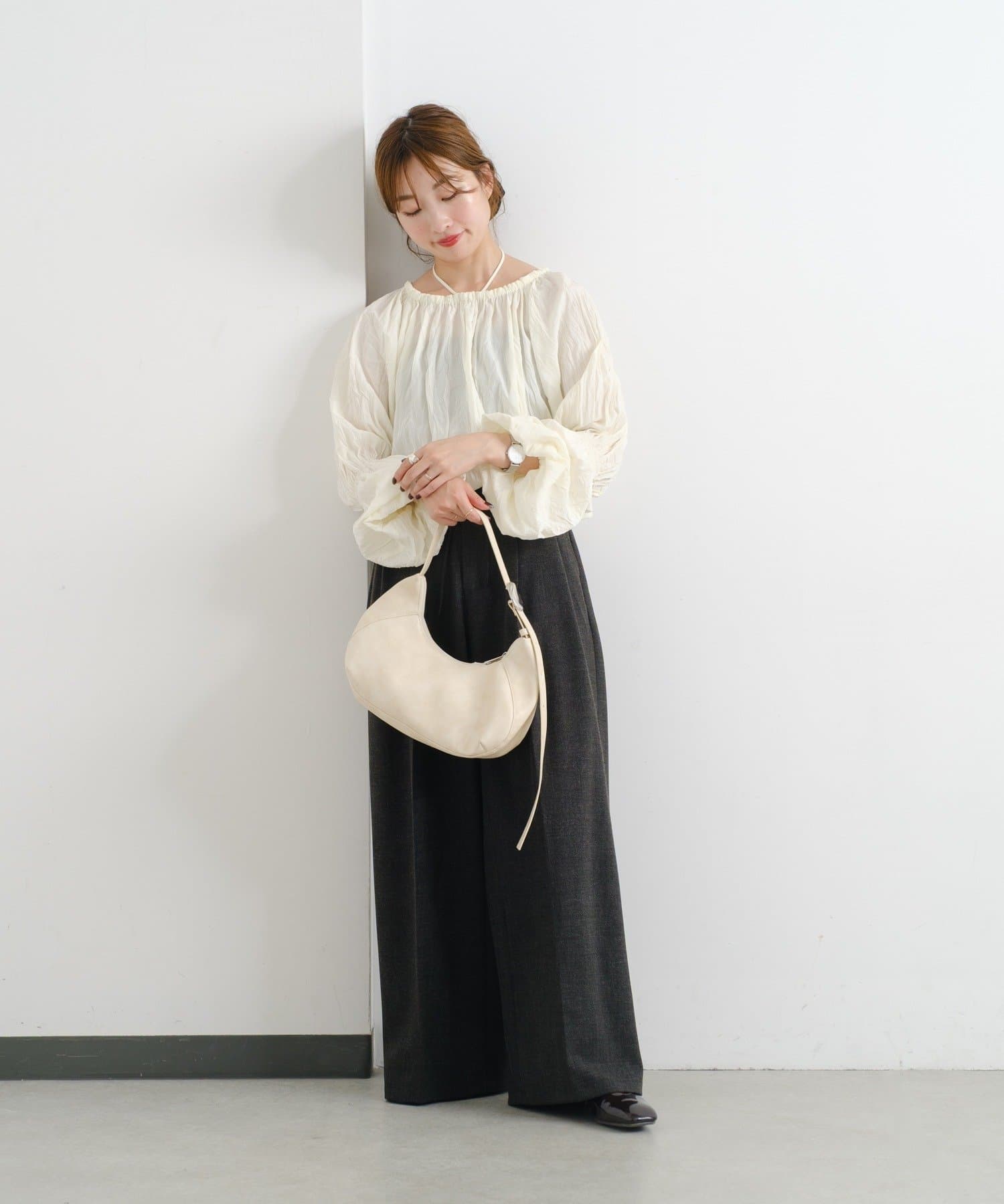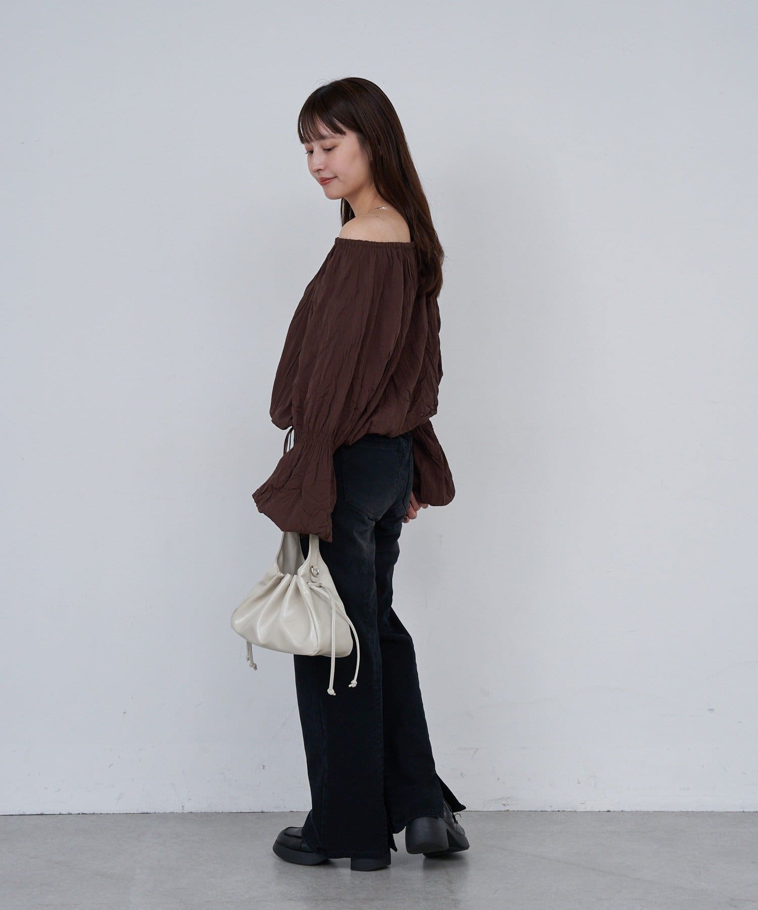 袖にボリューム感のあるトップスなので、シンプルボトムとの相性◎