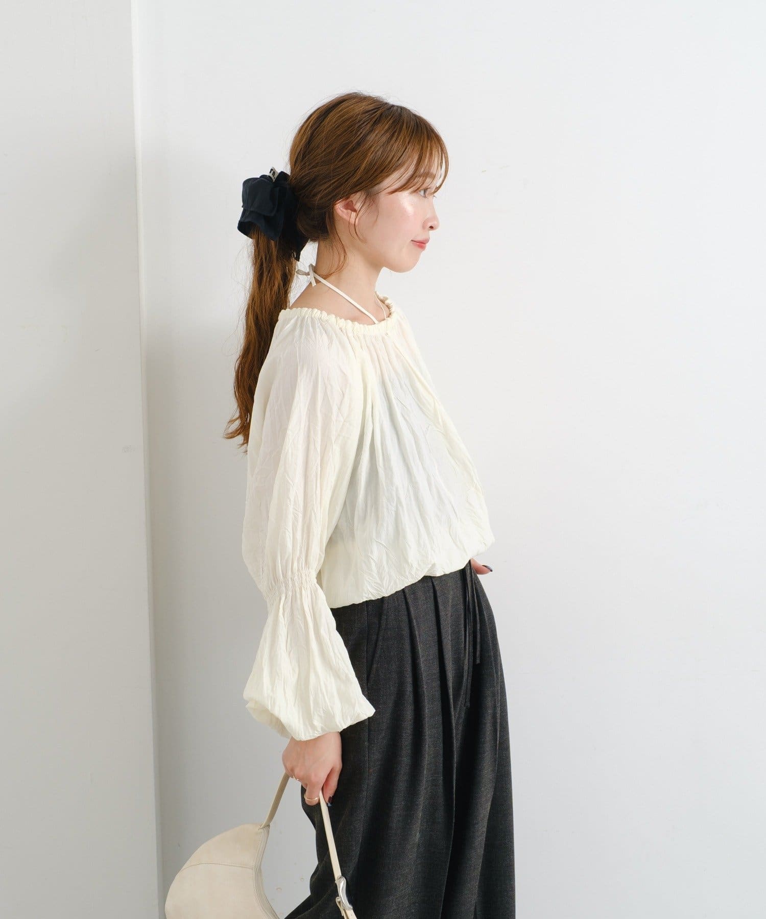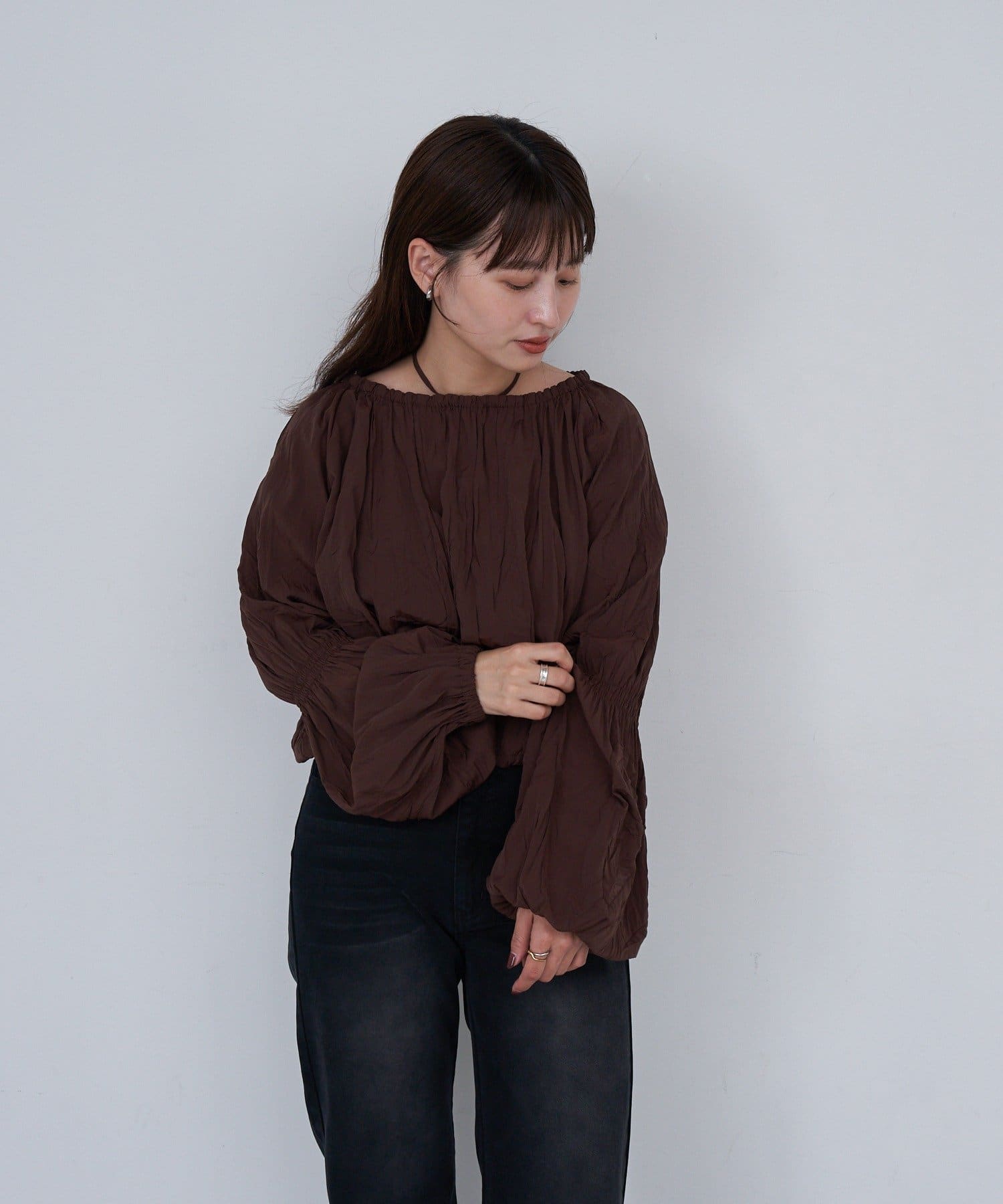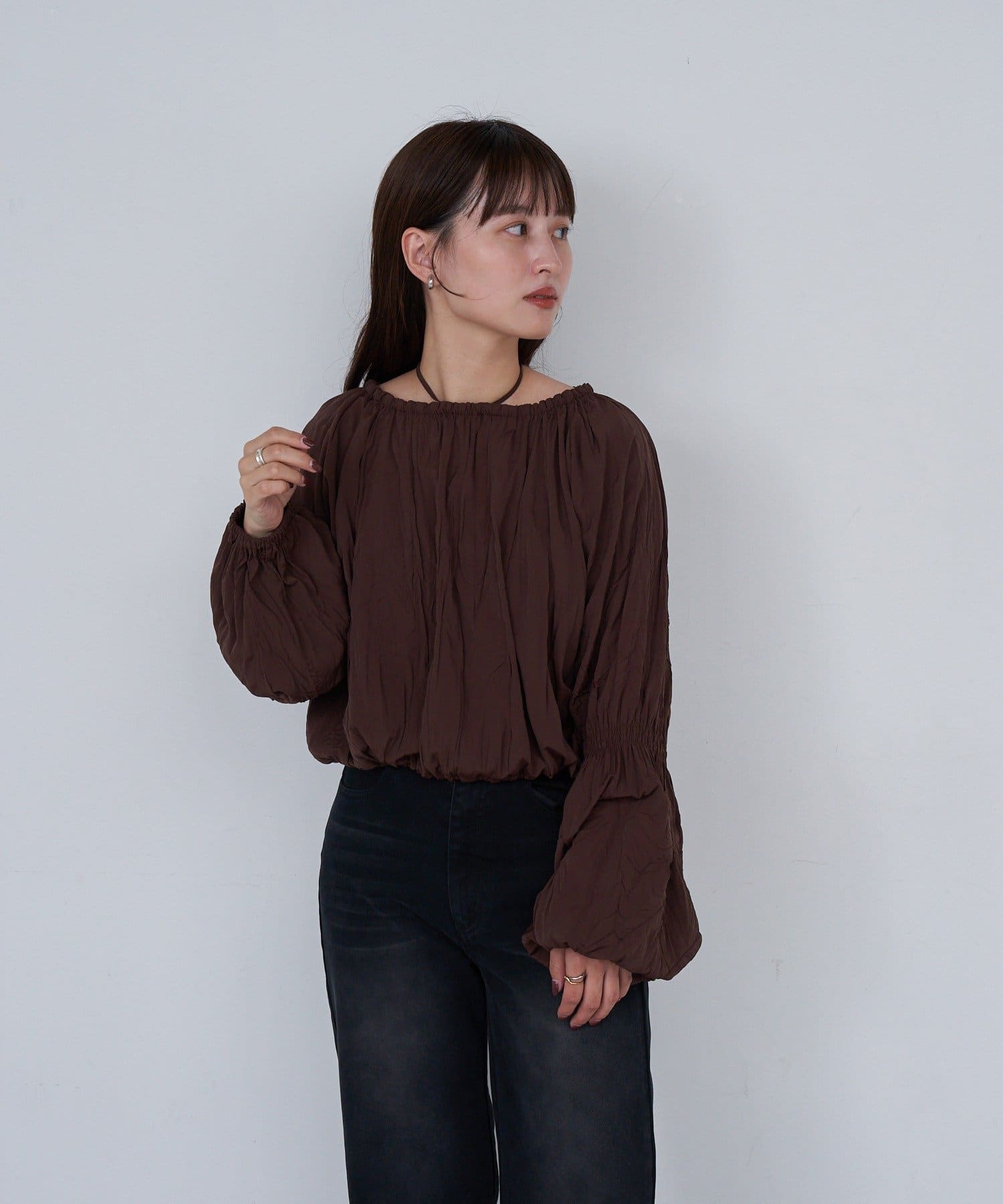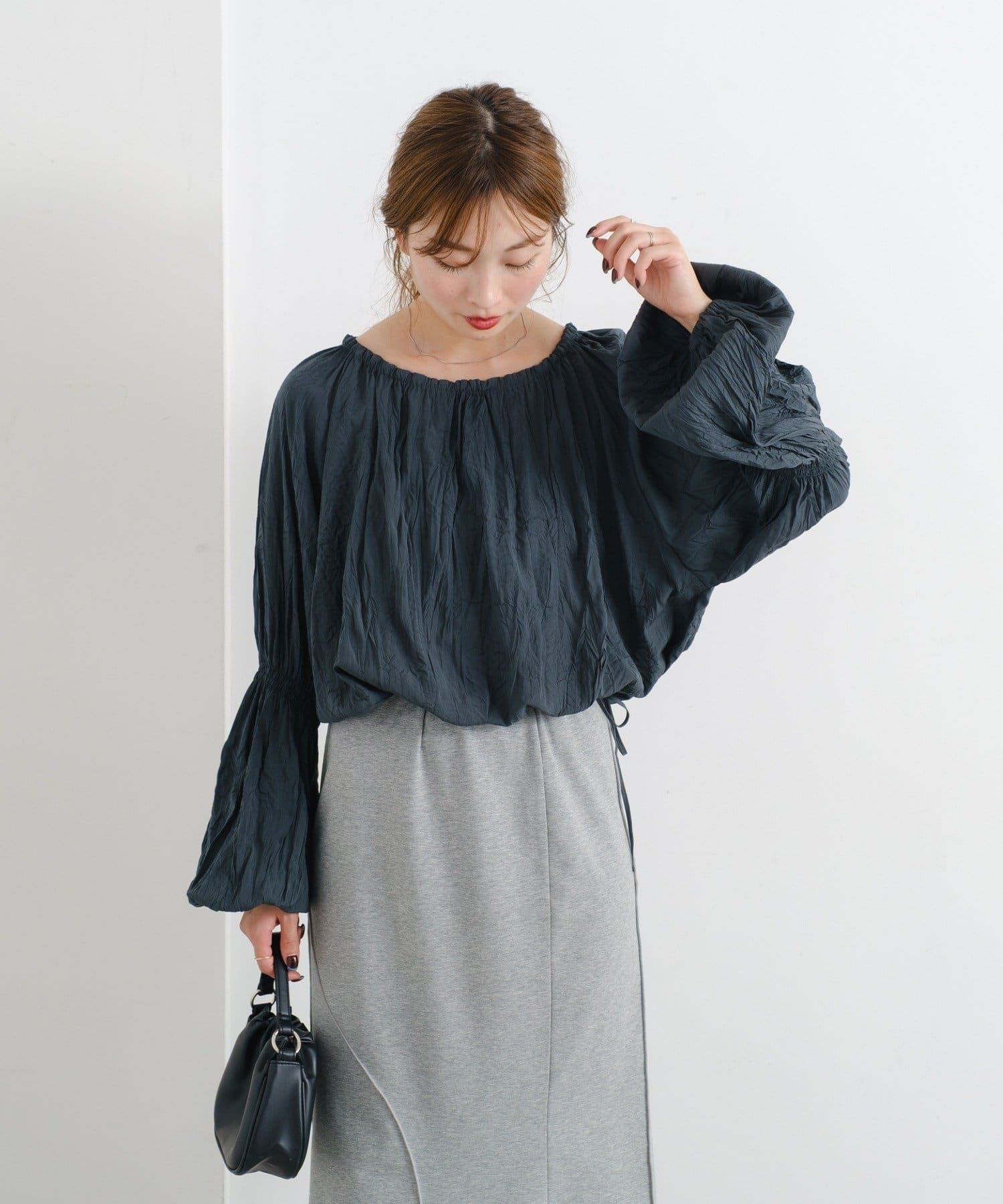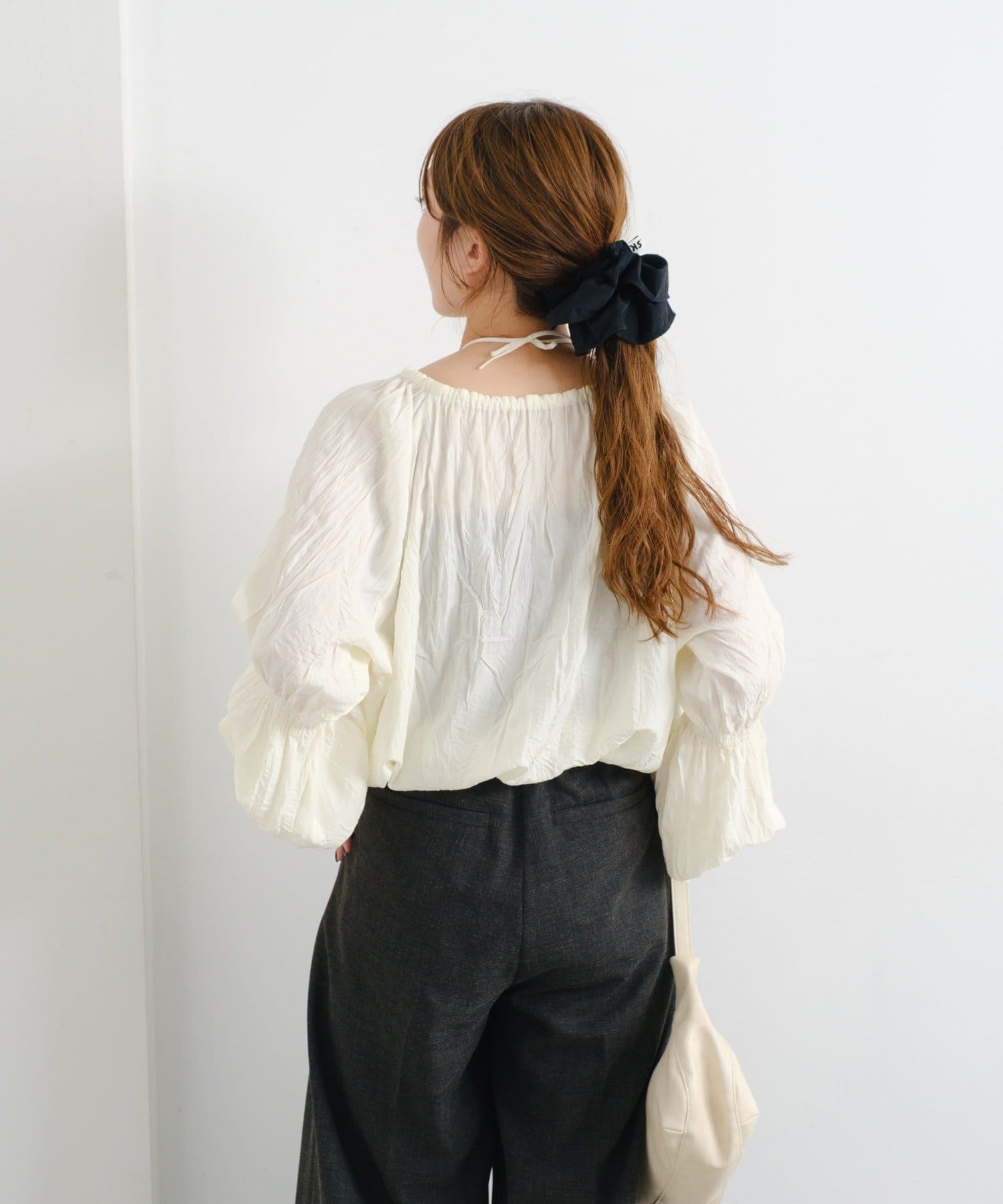 軽やかなシワ感とふんわりとした袖が特徴のキャンディスリーブブラウス。