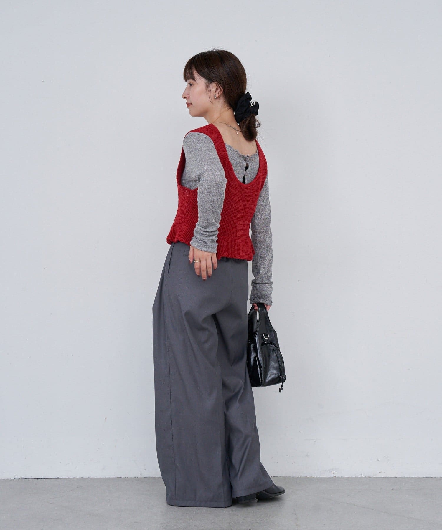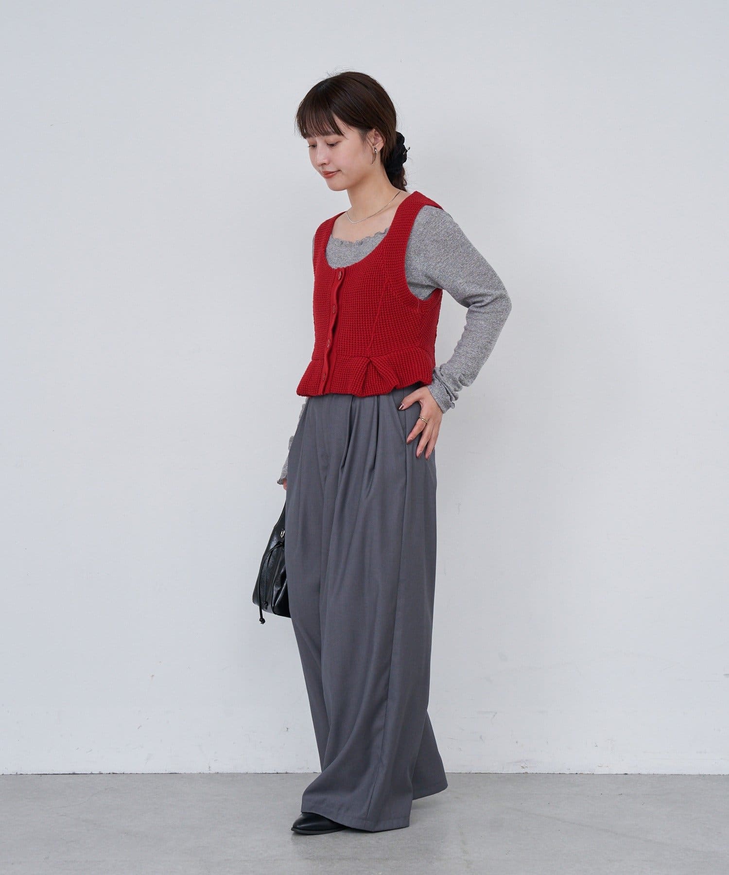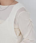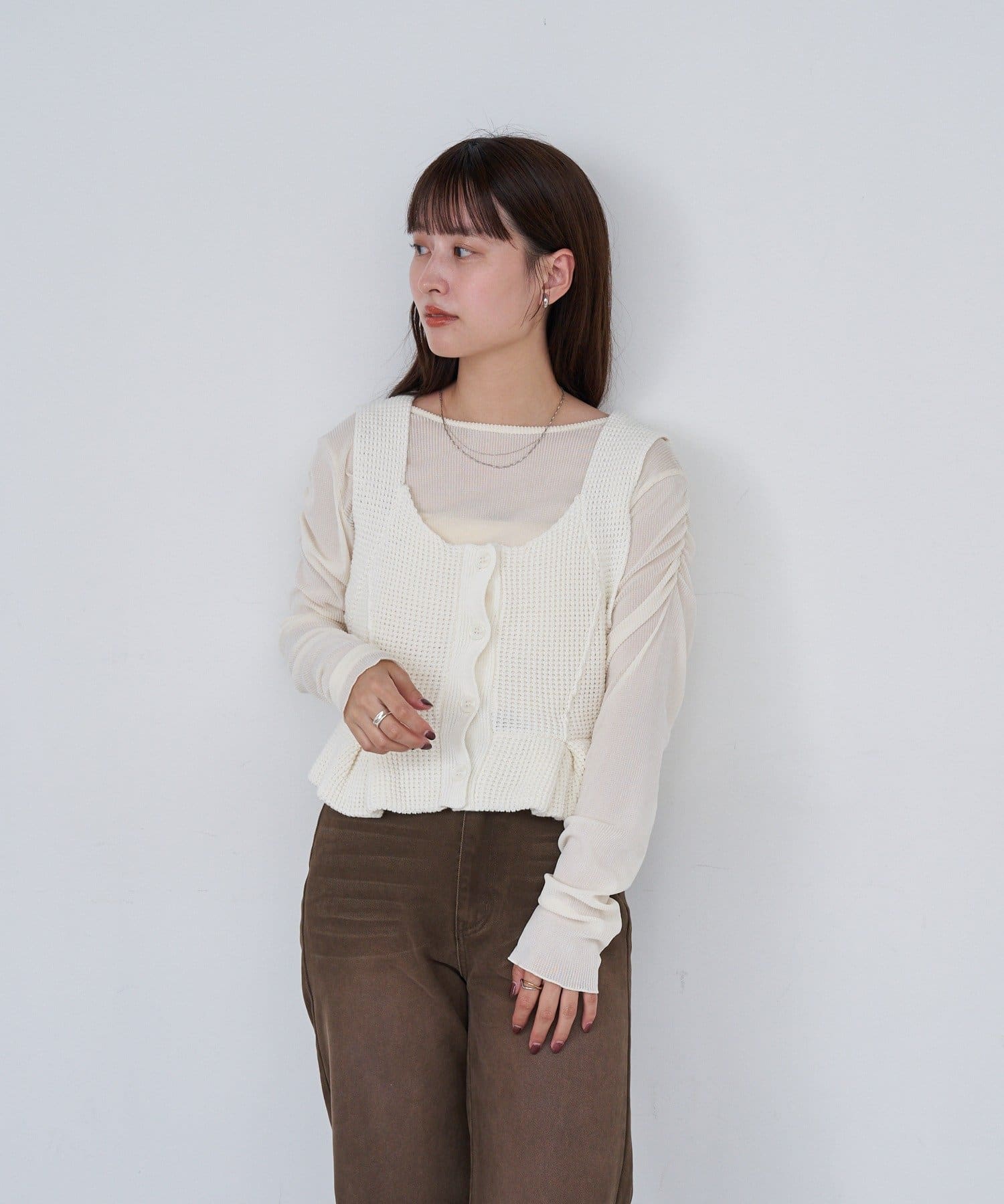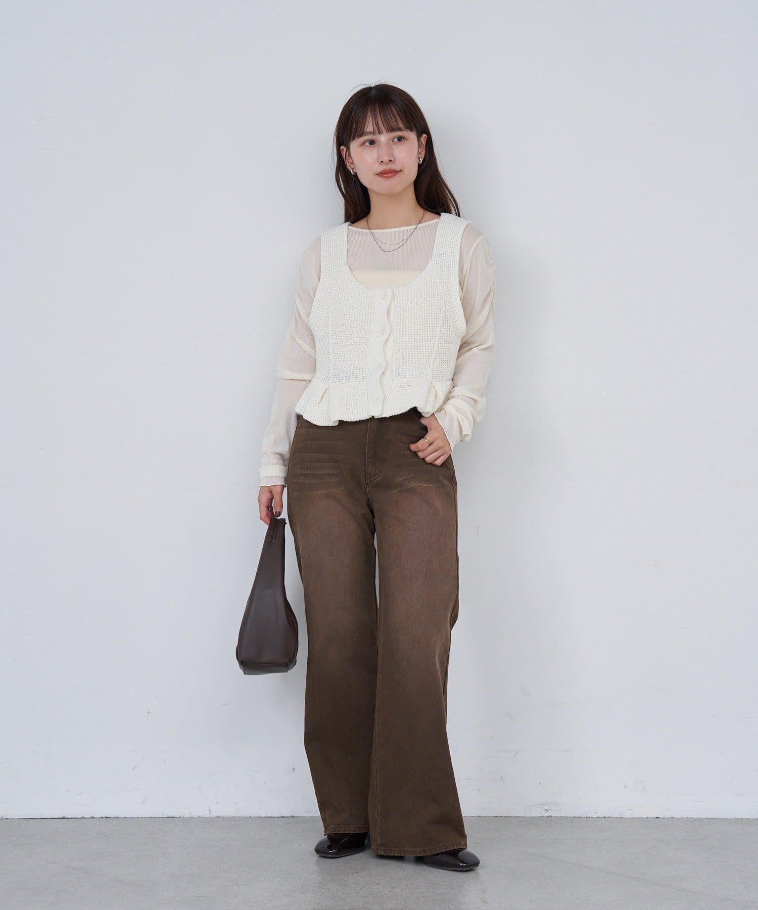 インナーにロンTやブラウスを合わせてカジュアルに。シャツやワンピースの上に重ねてトレンド感をプラス。