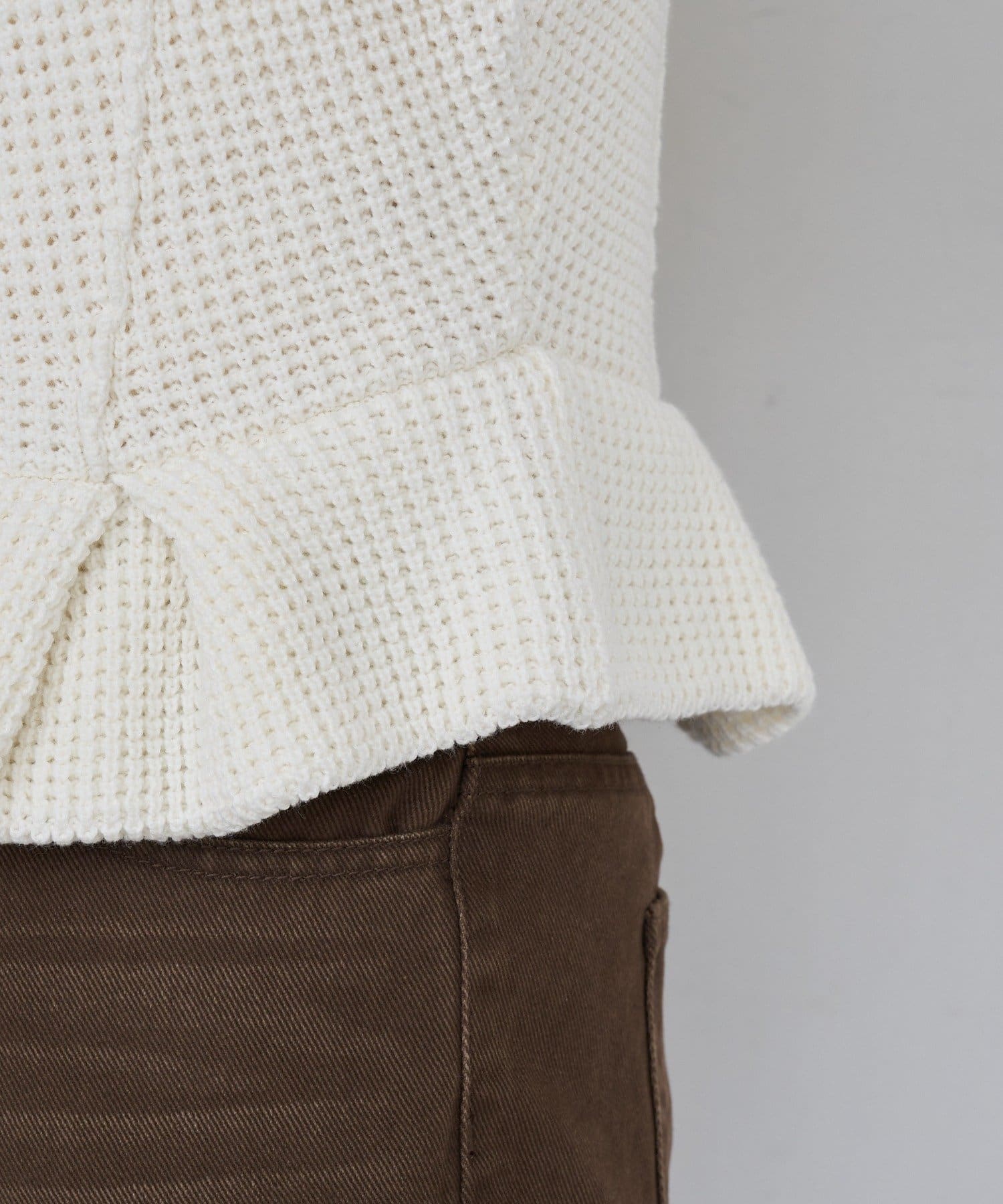 ワッフル編みならではの凹凸感があり、程よく体にフィットします。