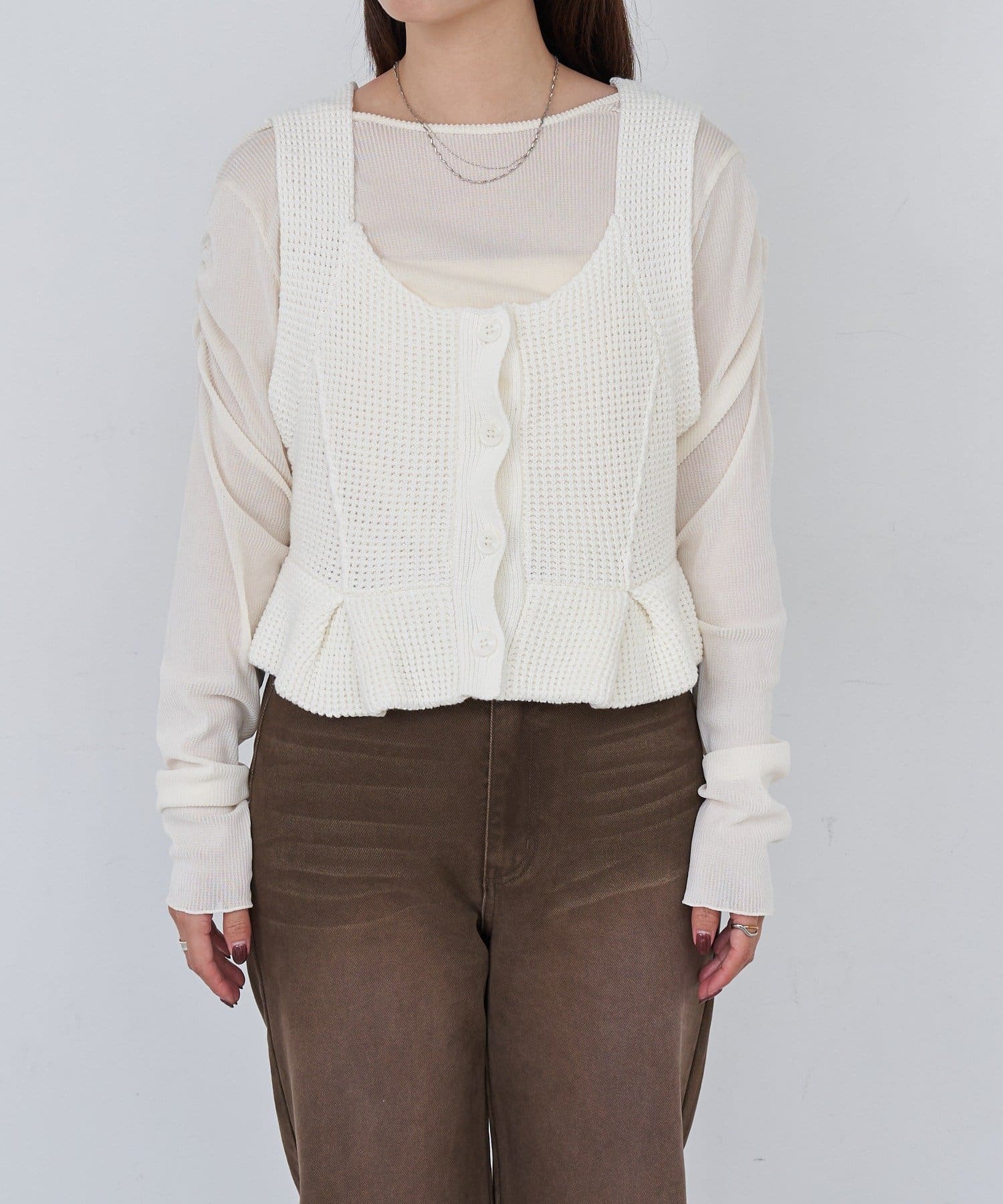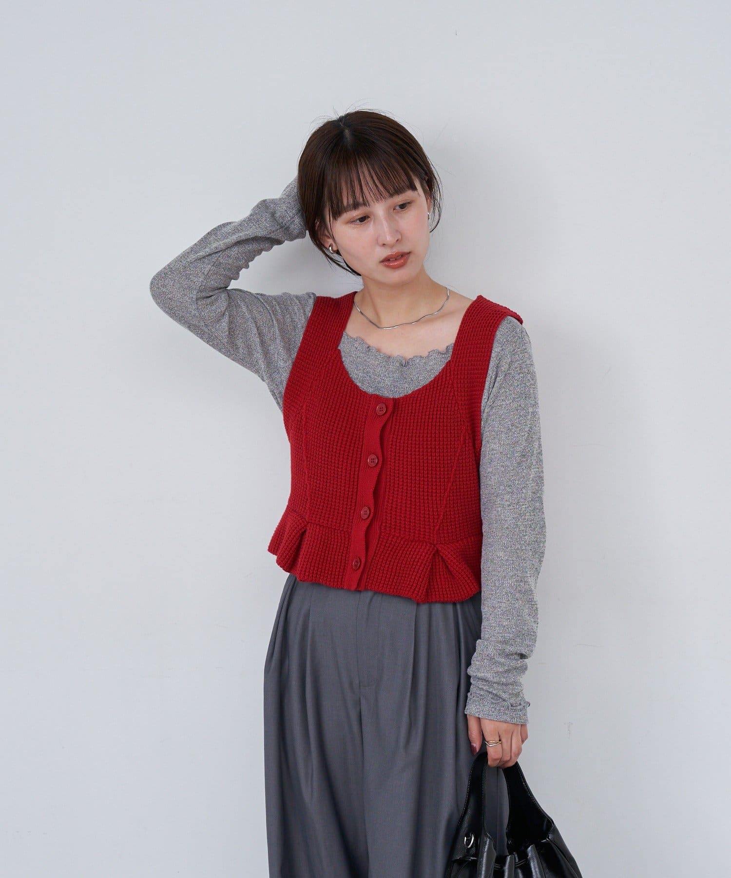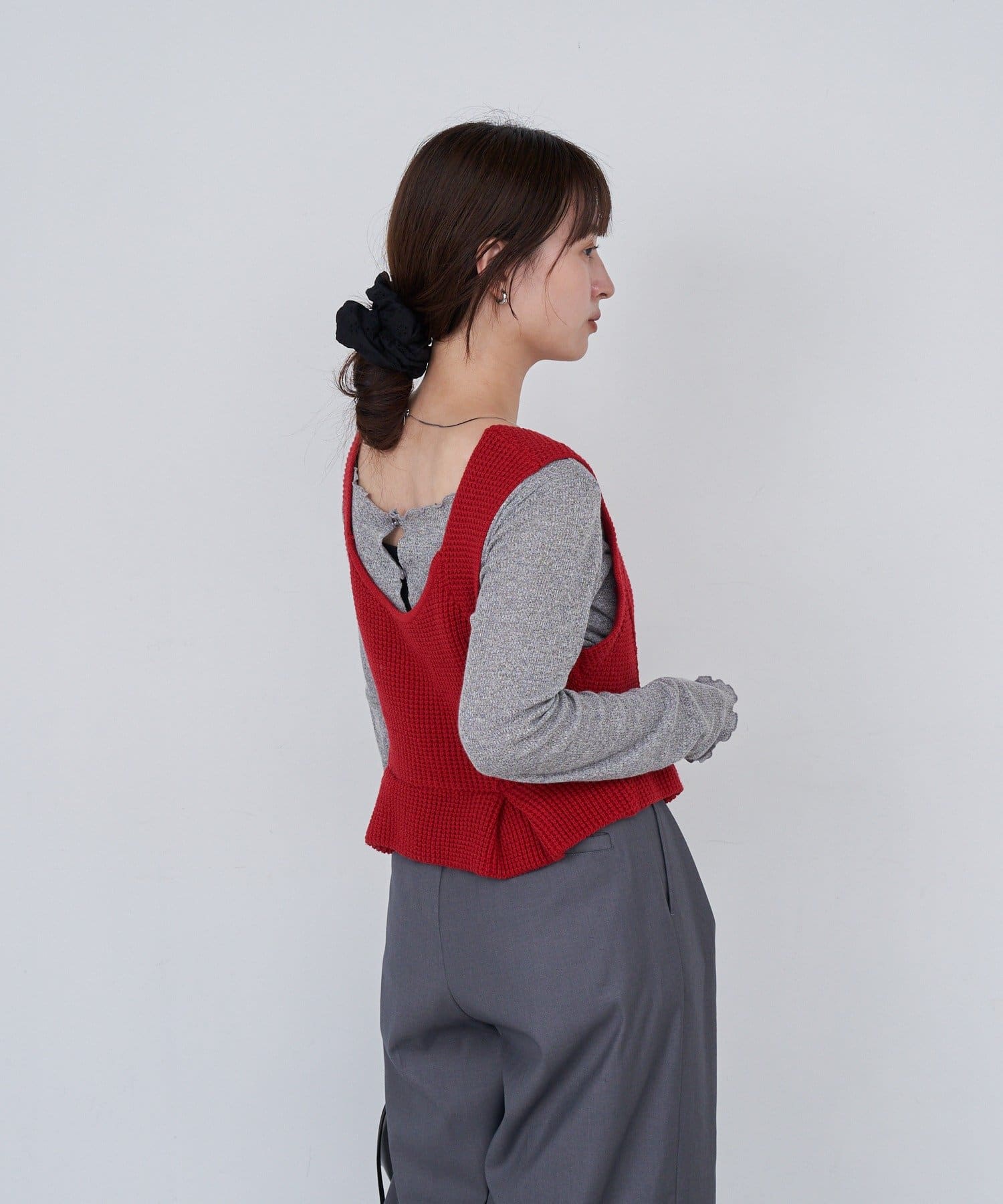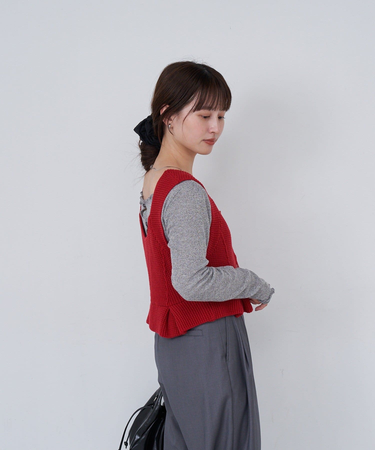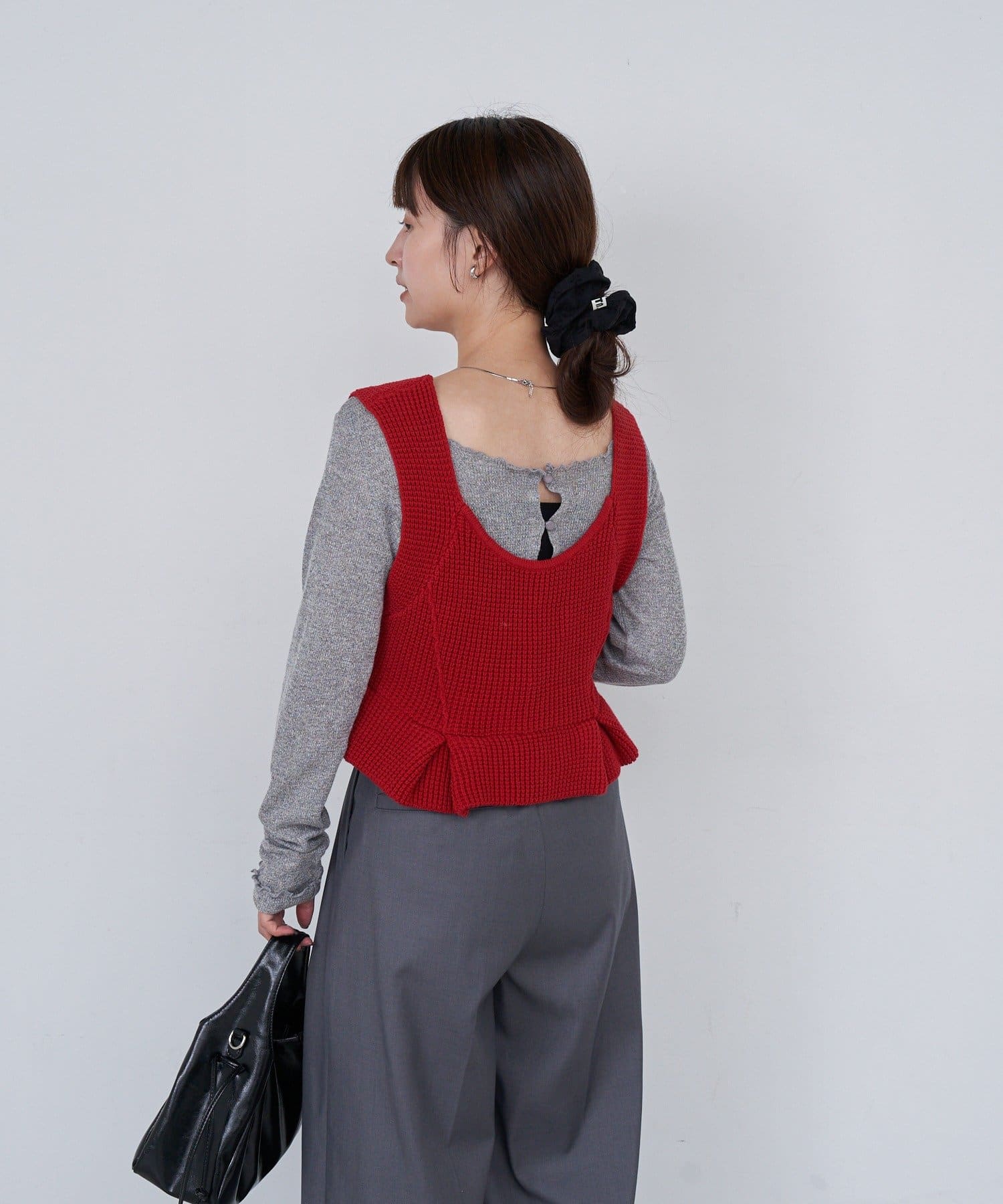 立体的なワッフル編みが特徴的なニットビスチェ。