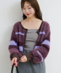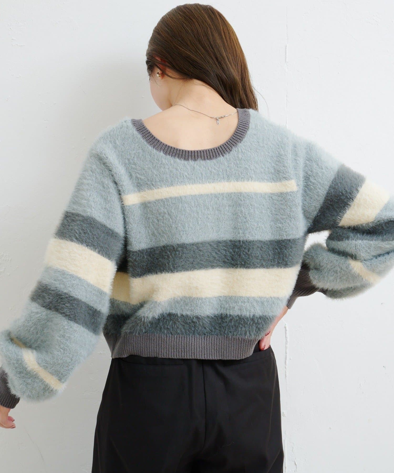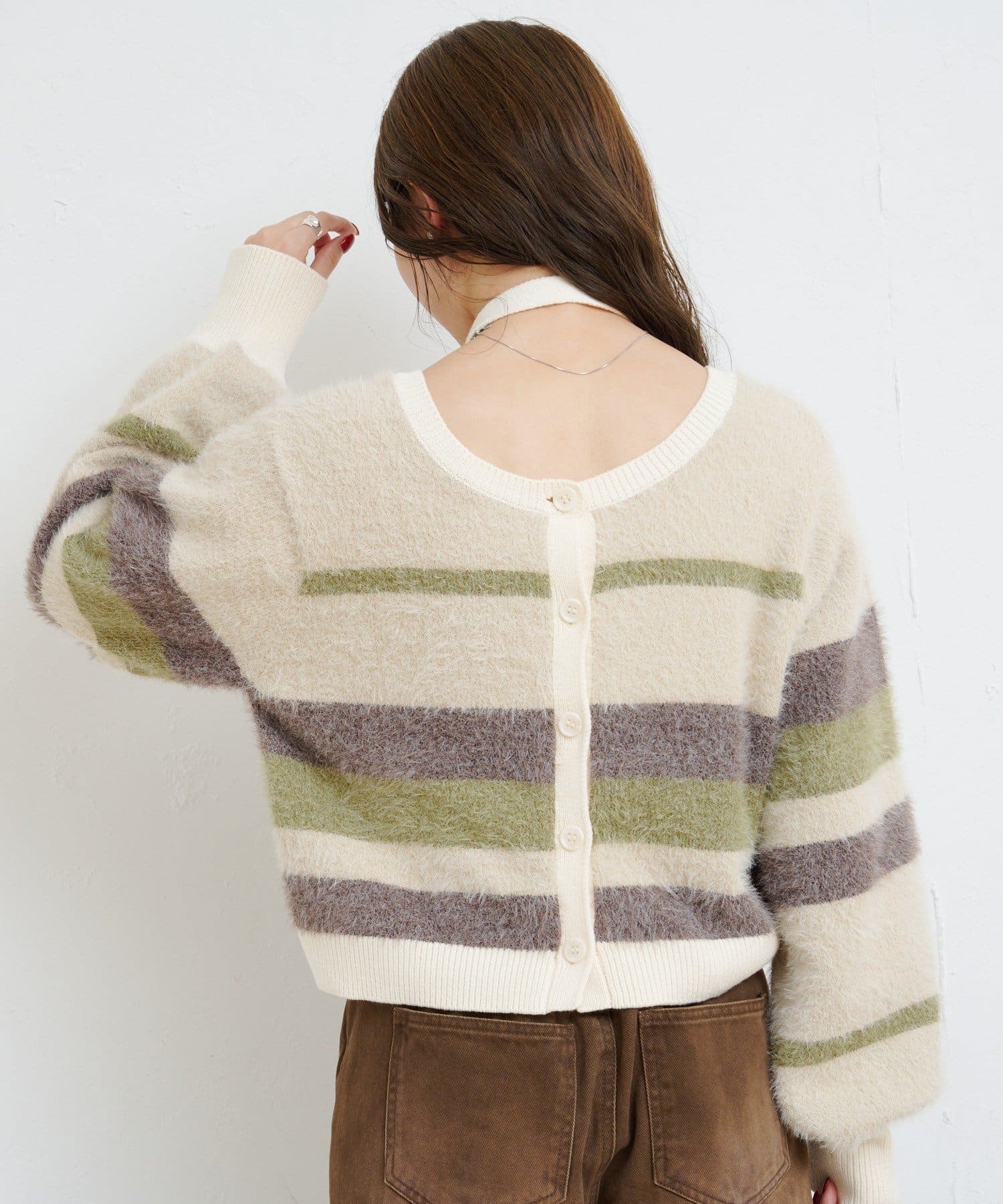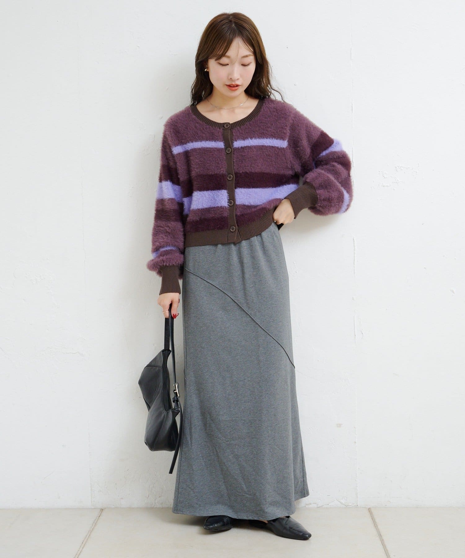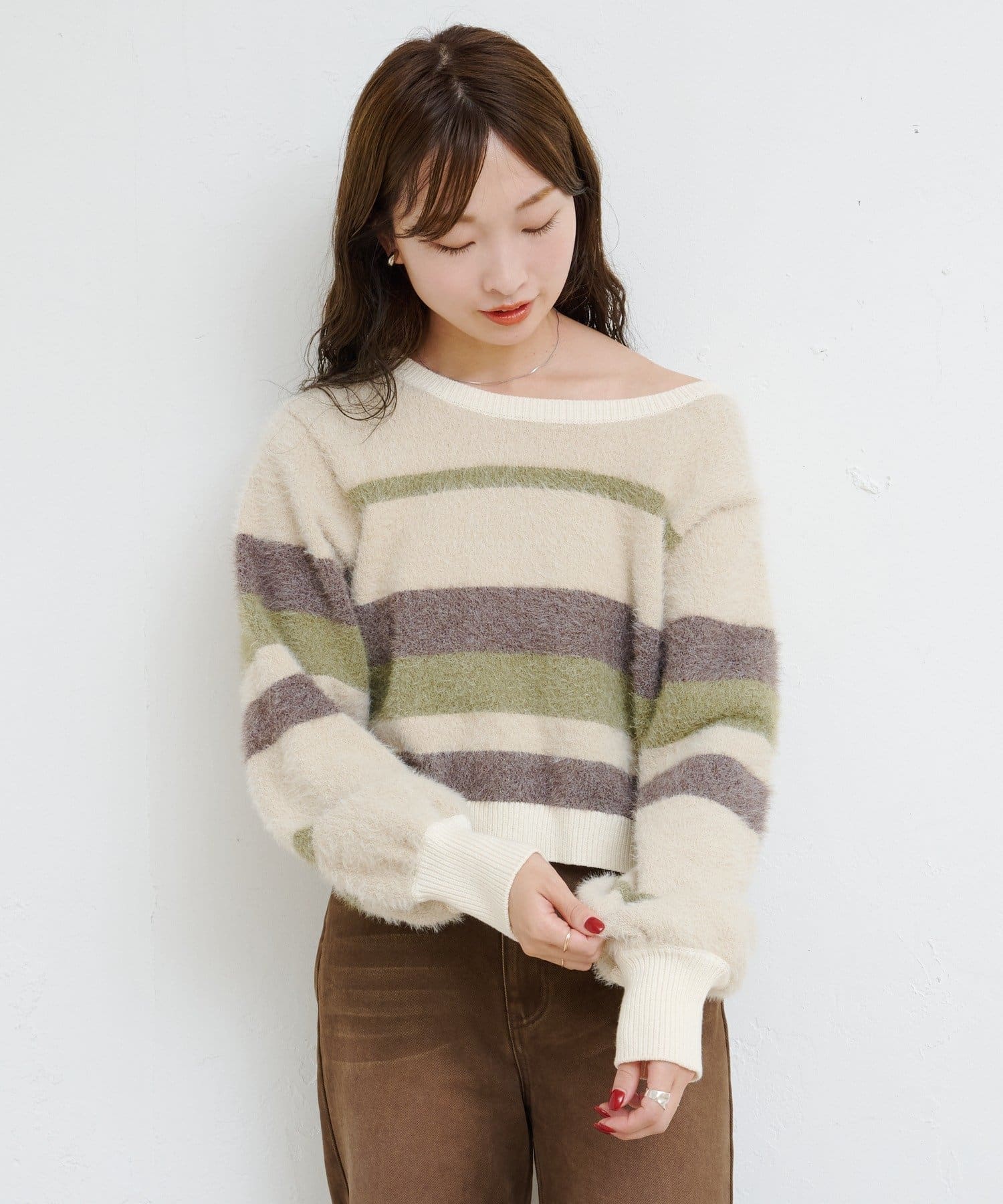 ふんわりとしたシャギー素材が魅力の2WAYボーダーカーディガン。