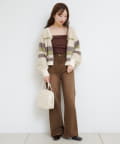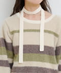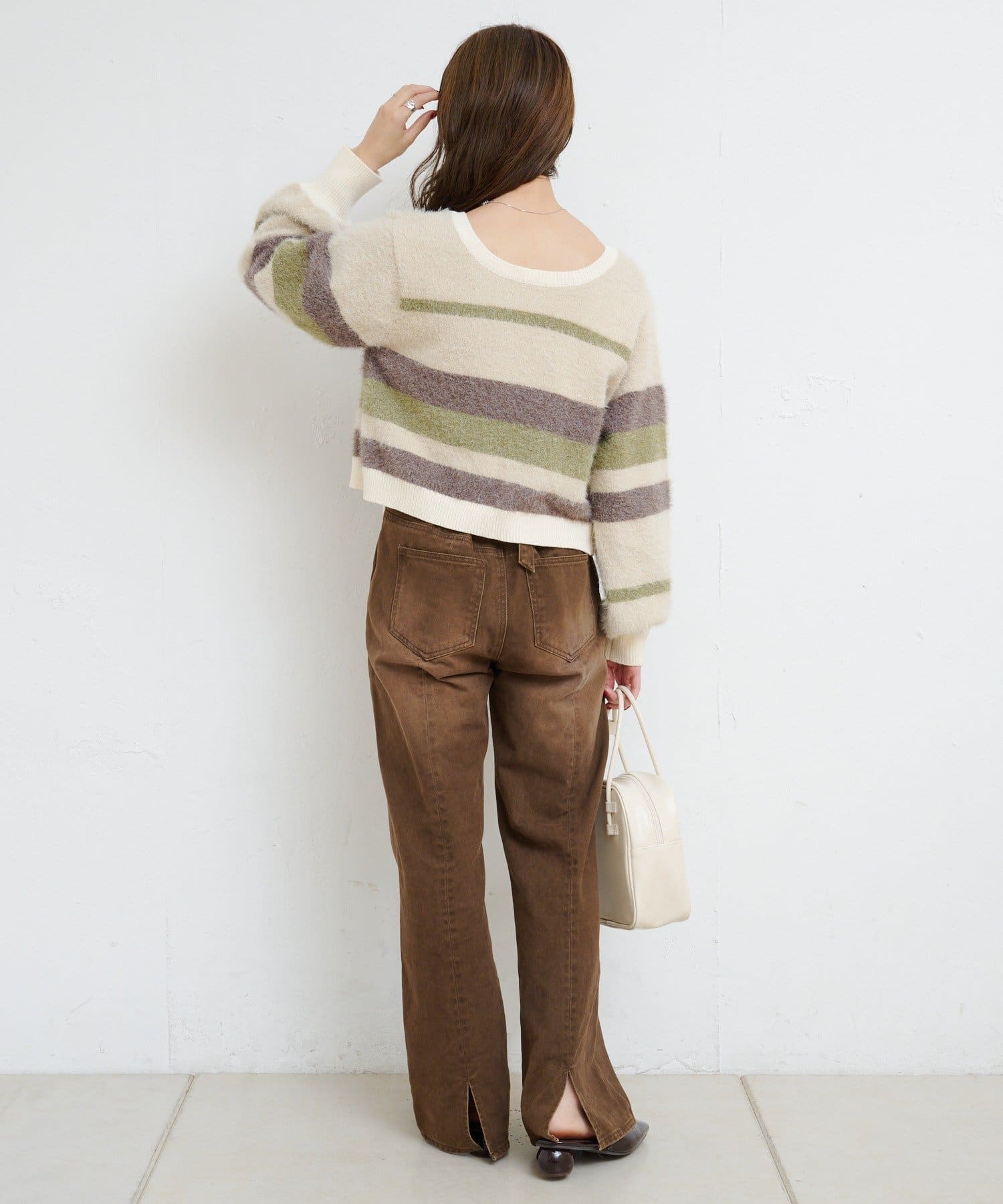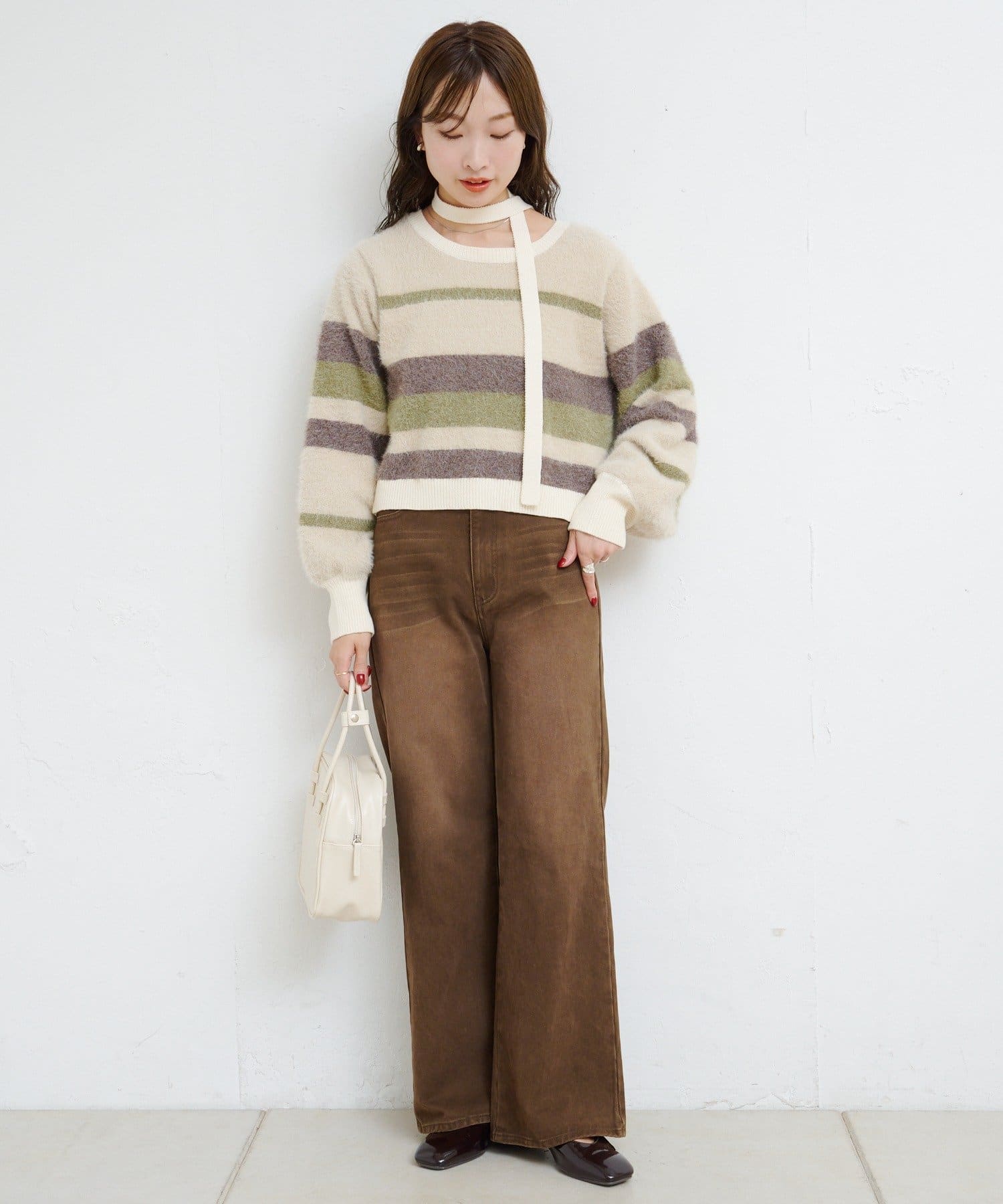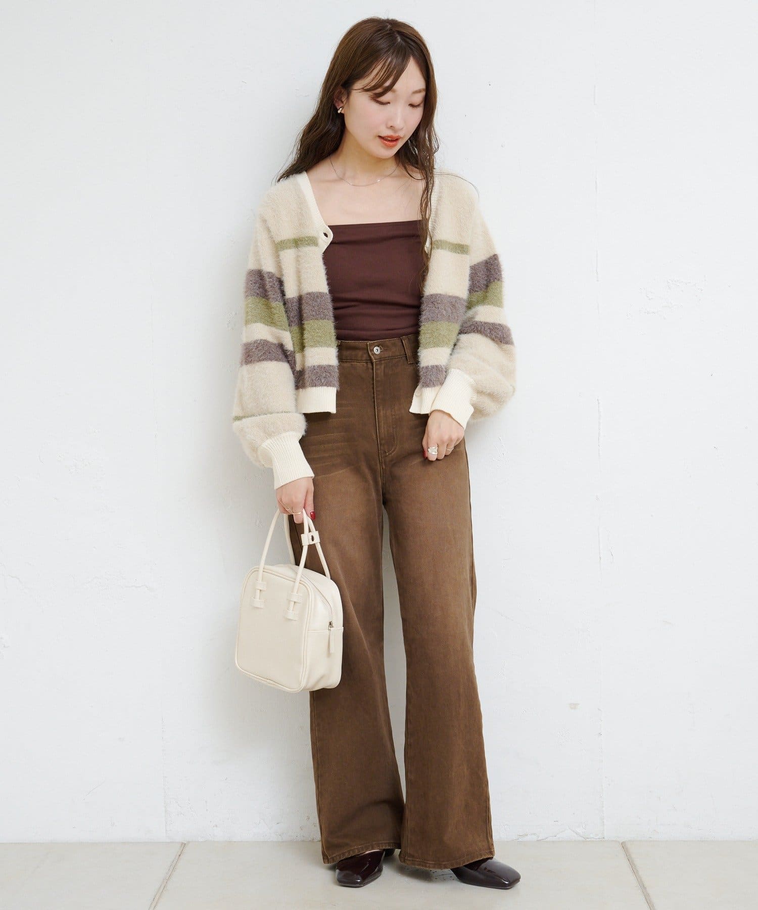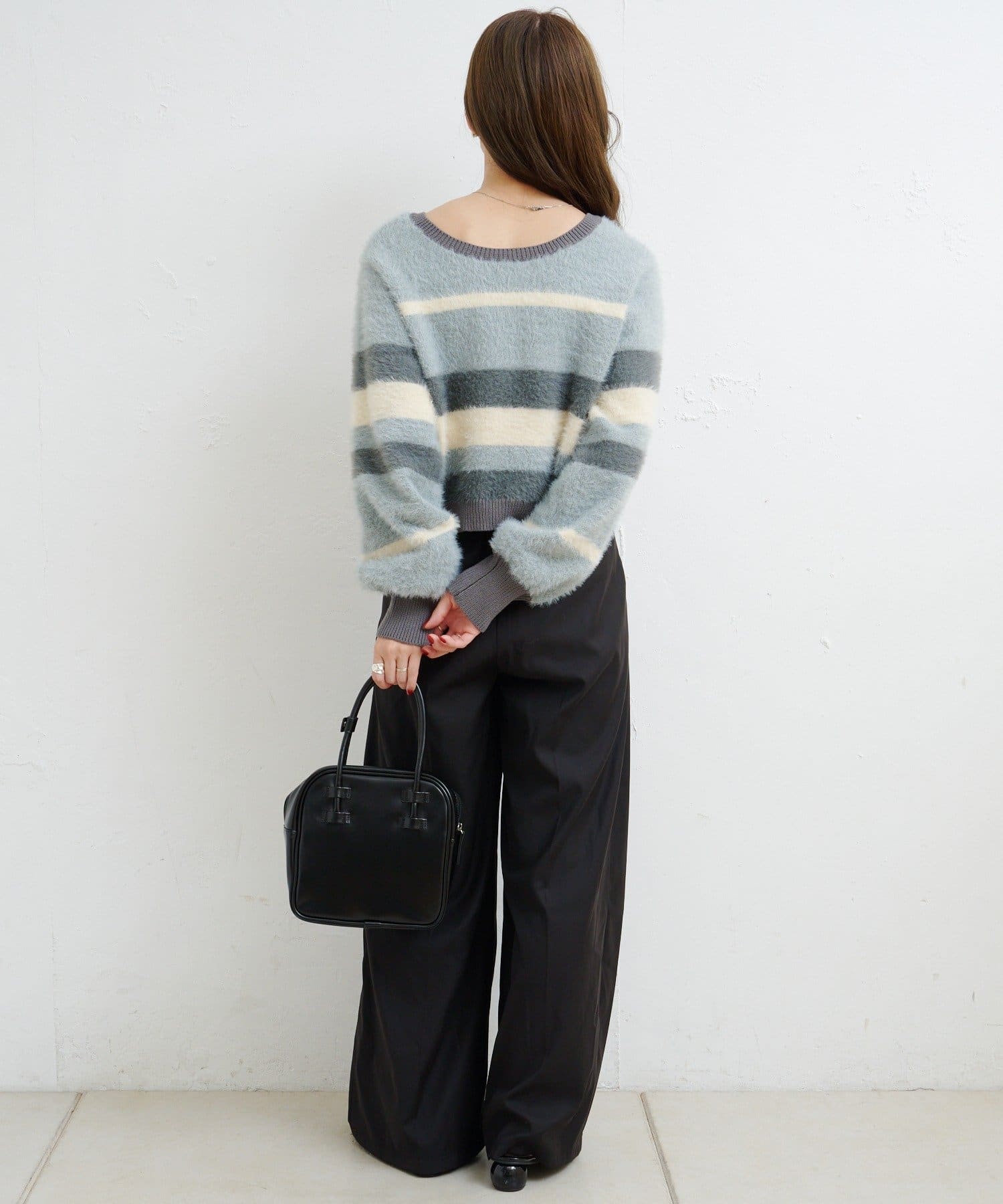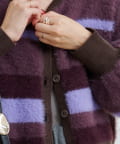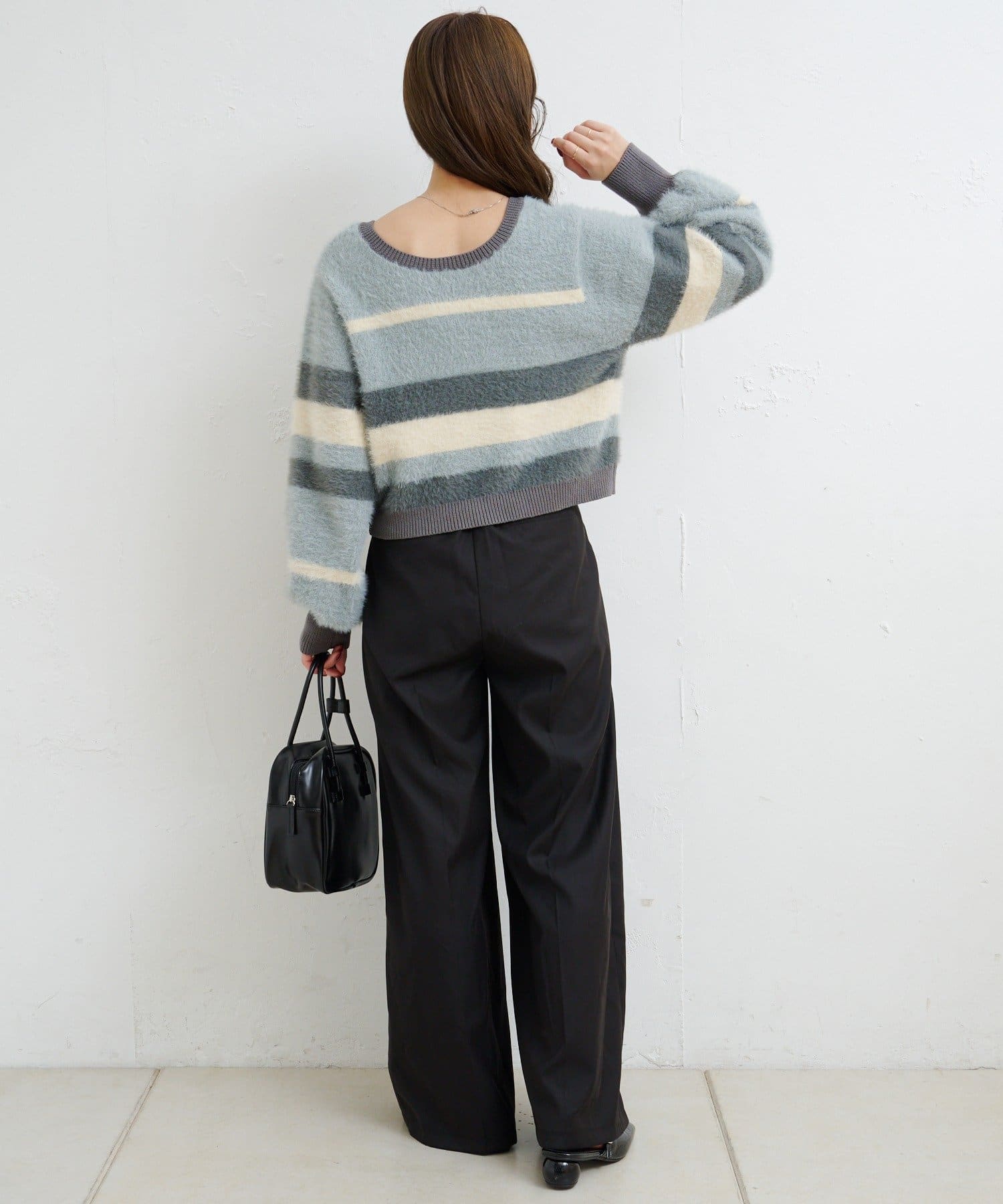 ふんわりとしたシャギー素材が魅力の2WAYボーダーカーディガン。