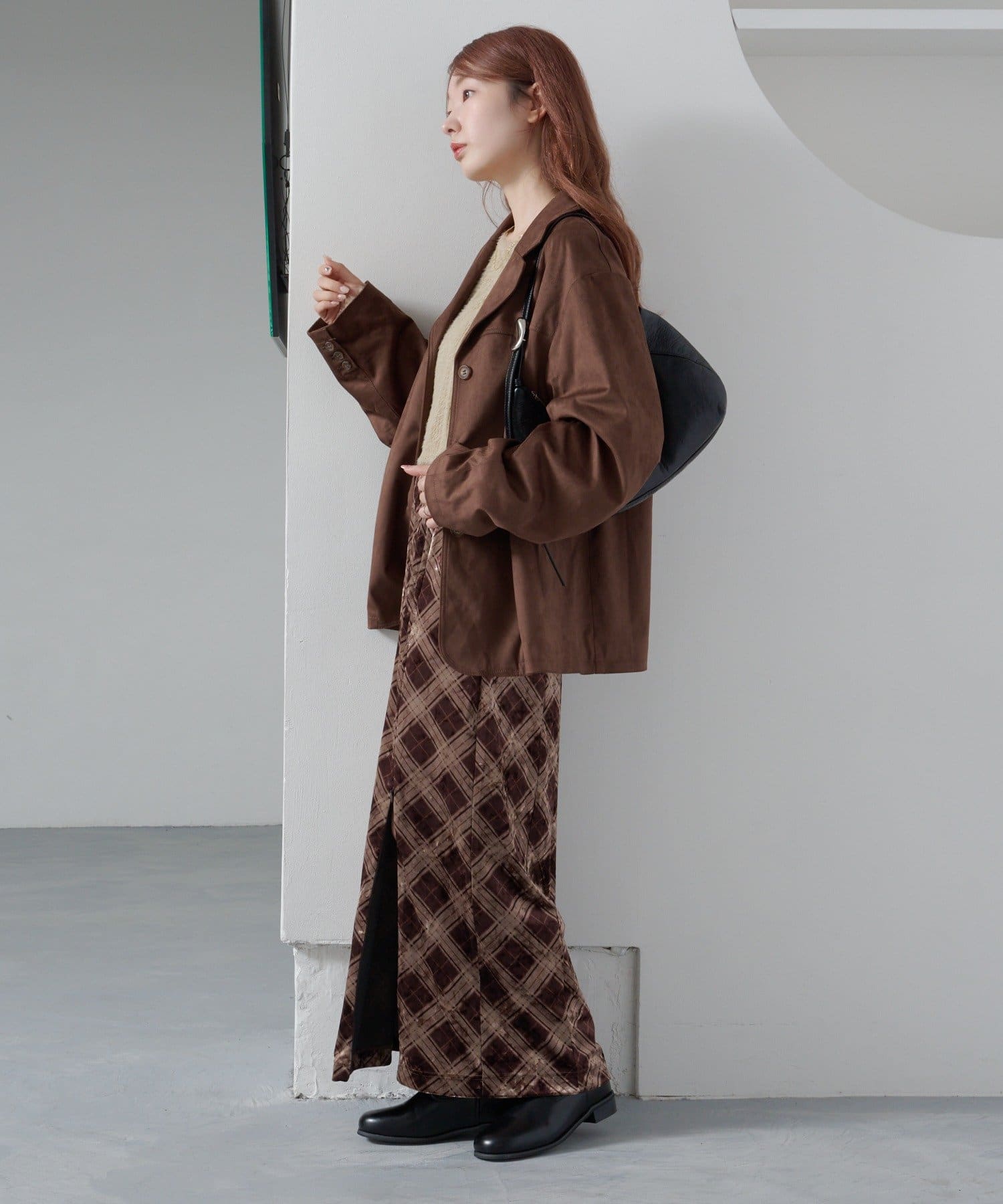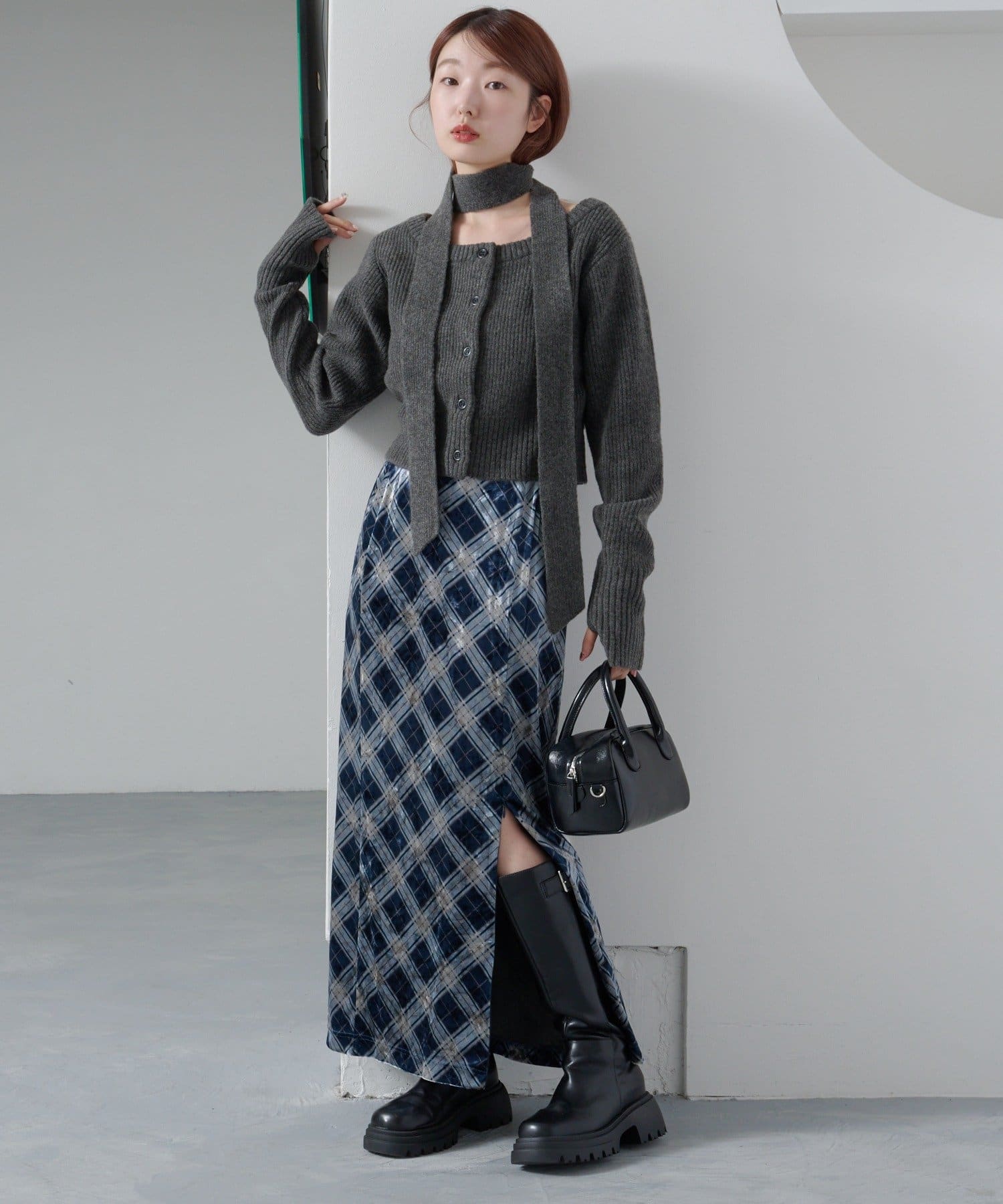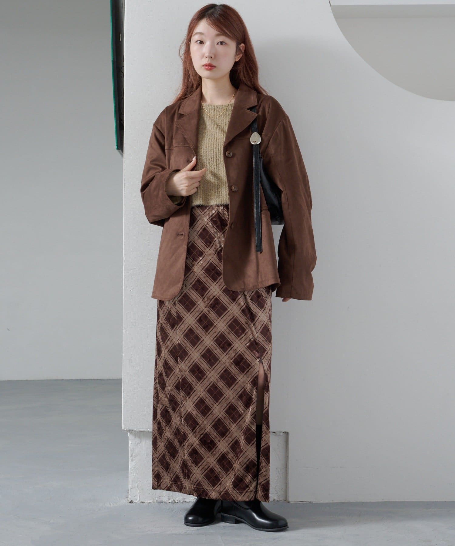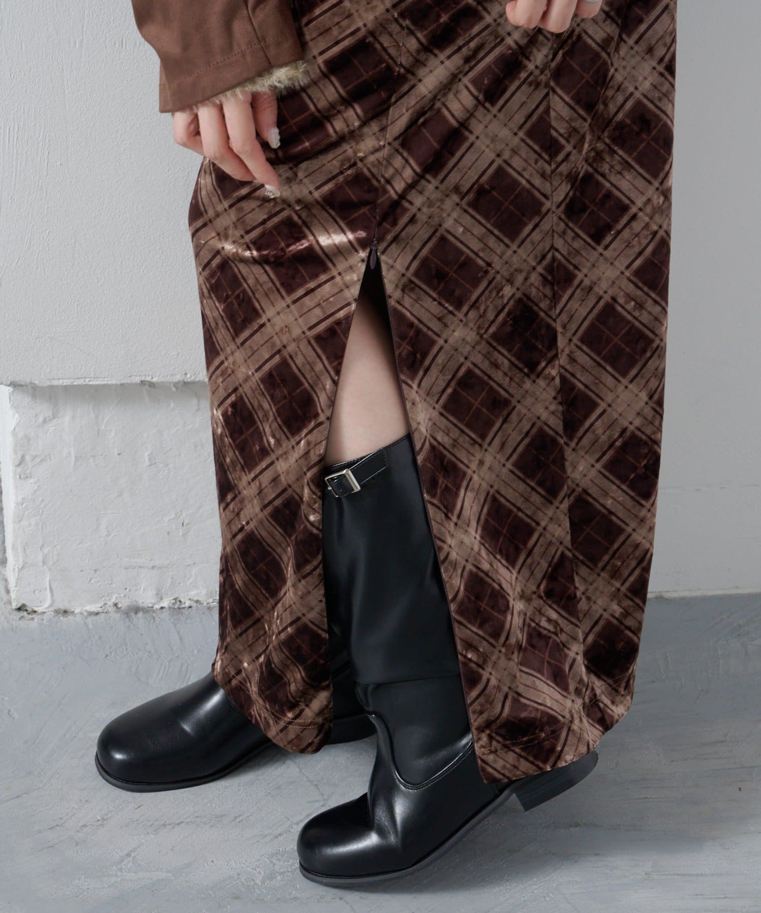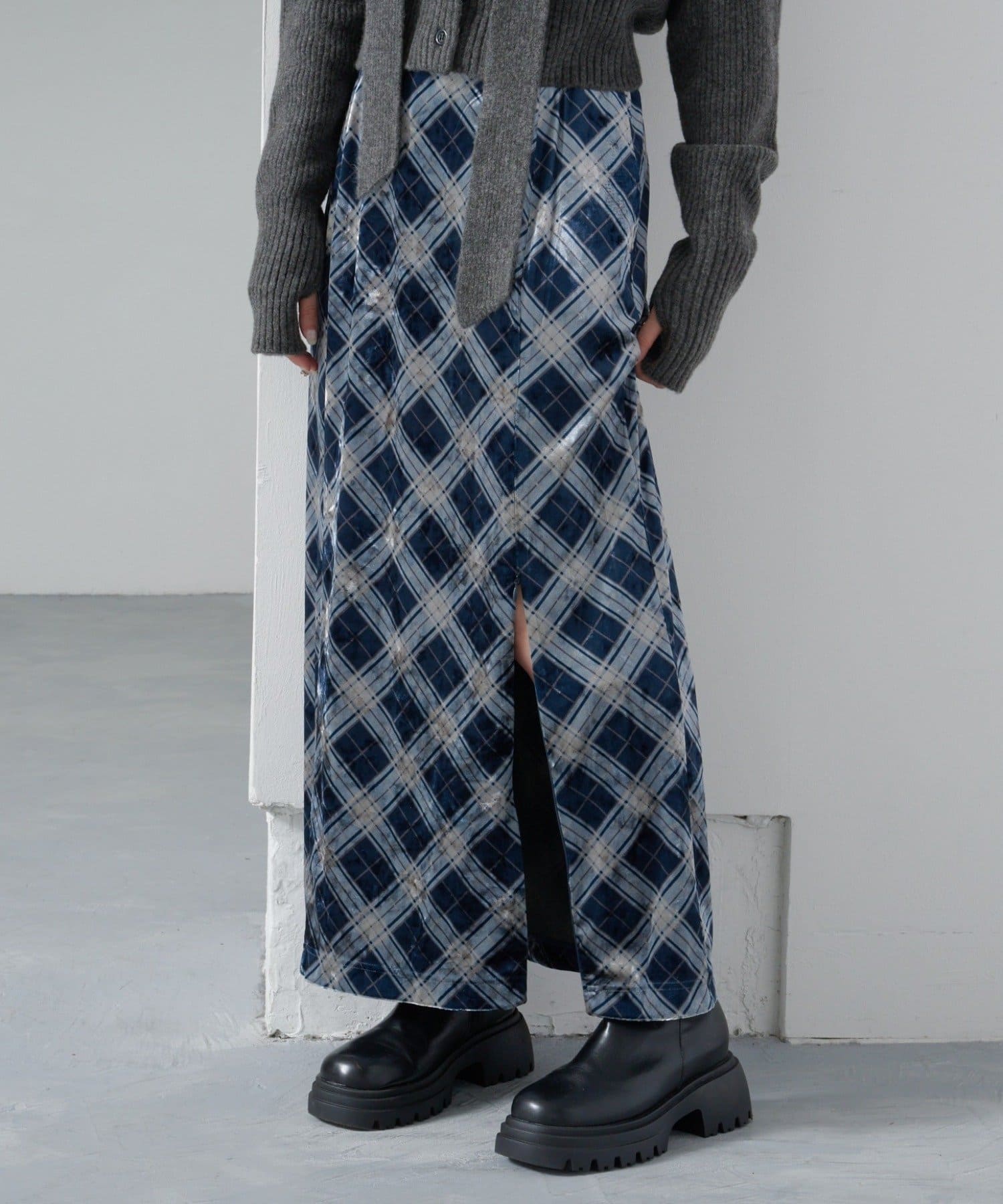 シーズンムードをぐっと高めてくれる、ベロア調素材のチェック柄スカート。