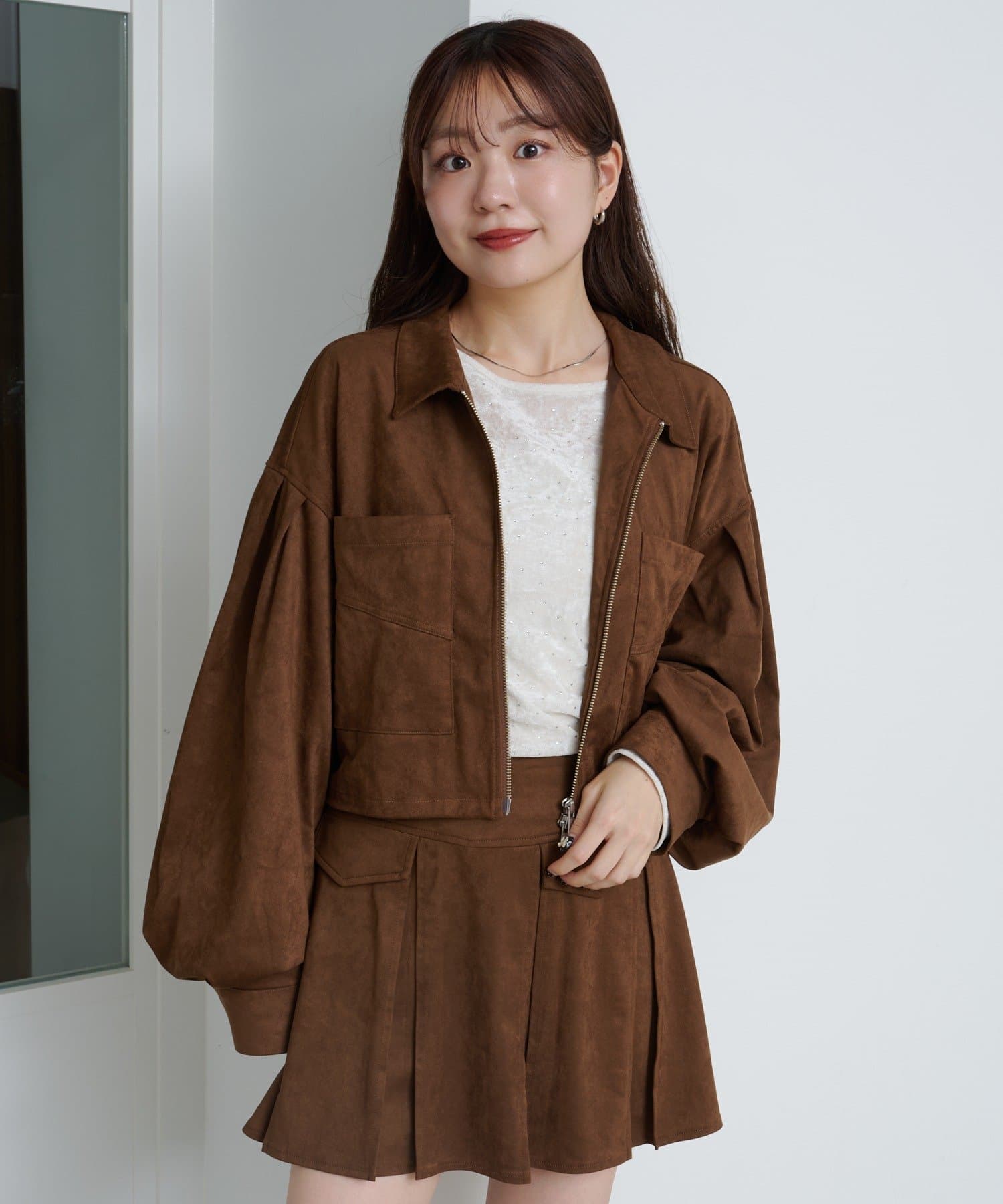 同生地のジャケット合わせでトレンド感のあるコーディネートに。
