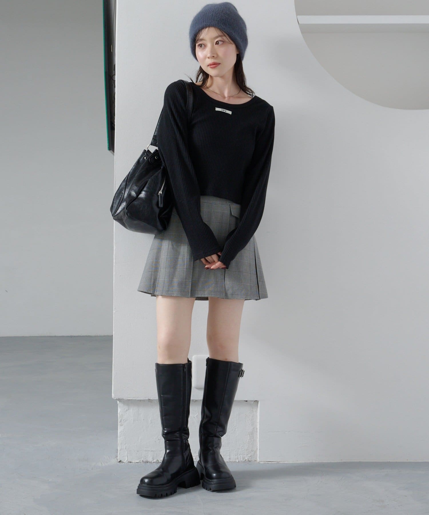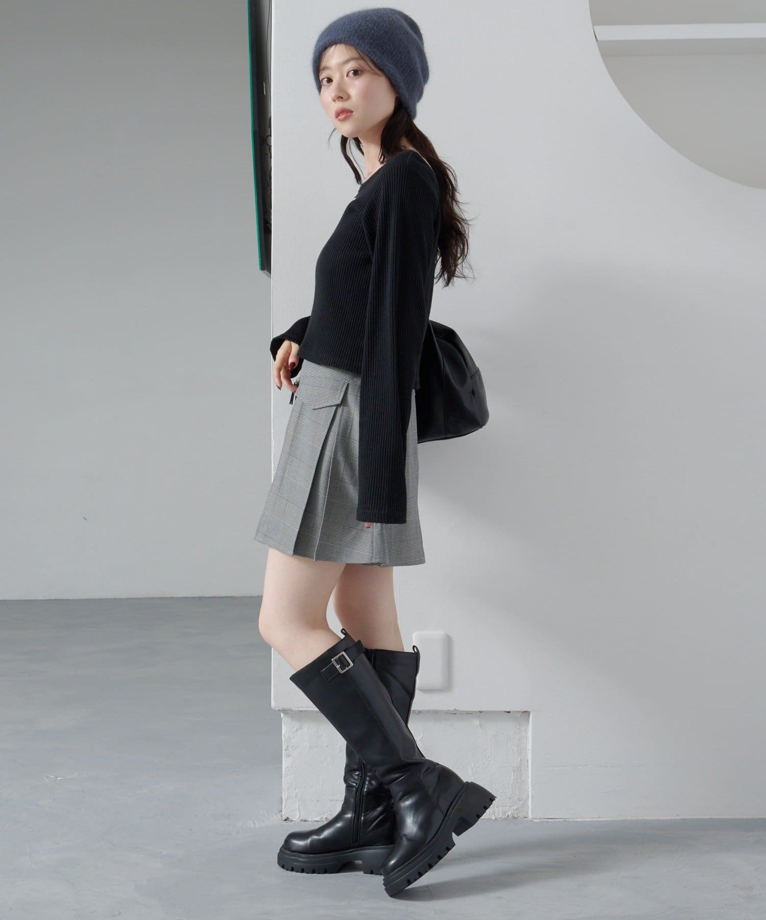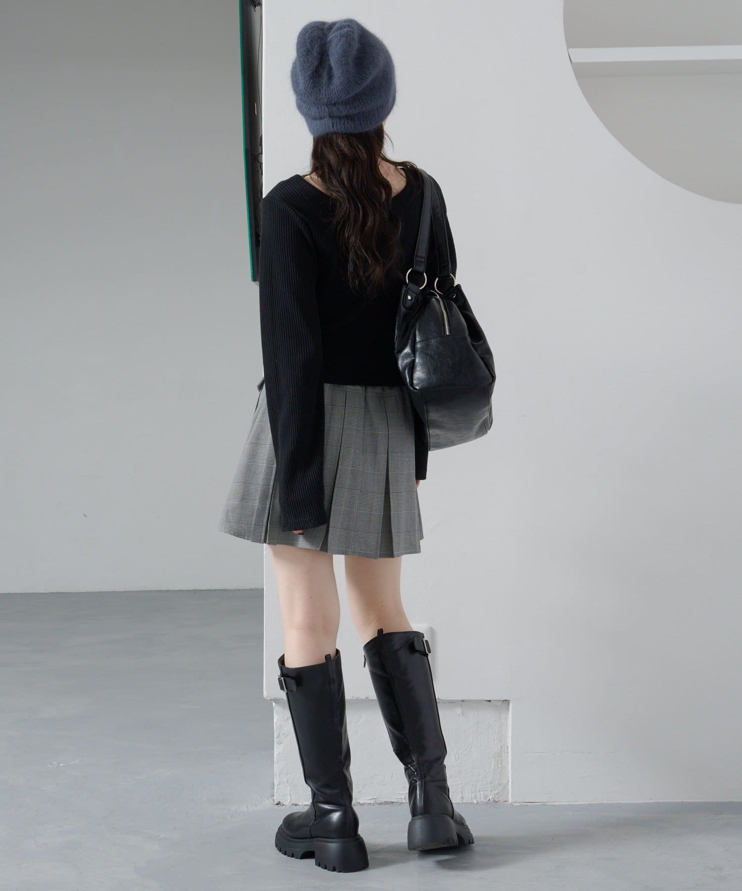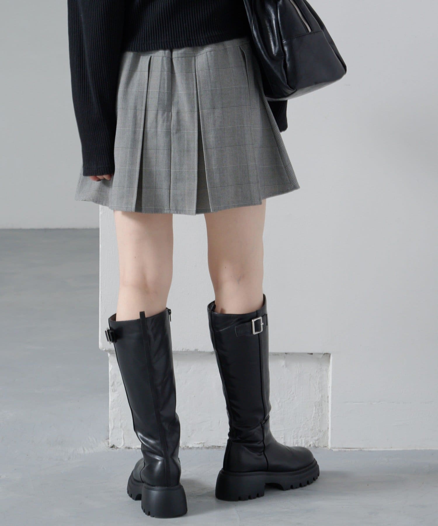 今っぽいシルエットを感じさせるプリーツミニスカート。