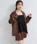 同素材のアウターと合わせれば、統一感のあるセットアップスタイルが完成します。