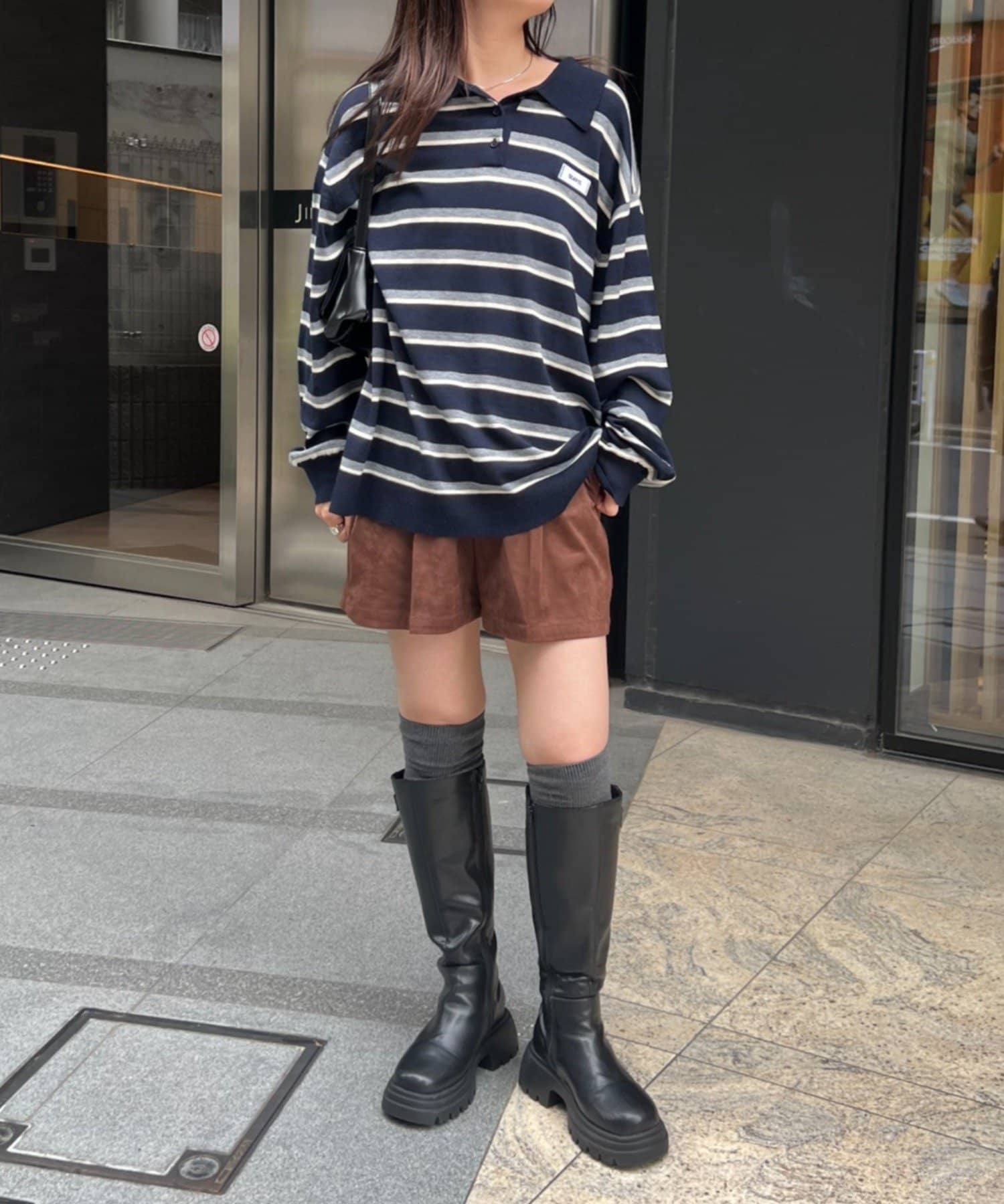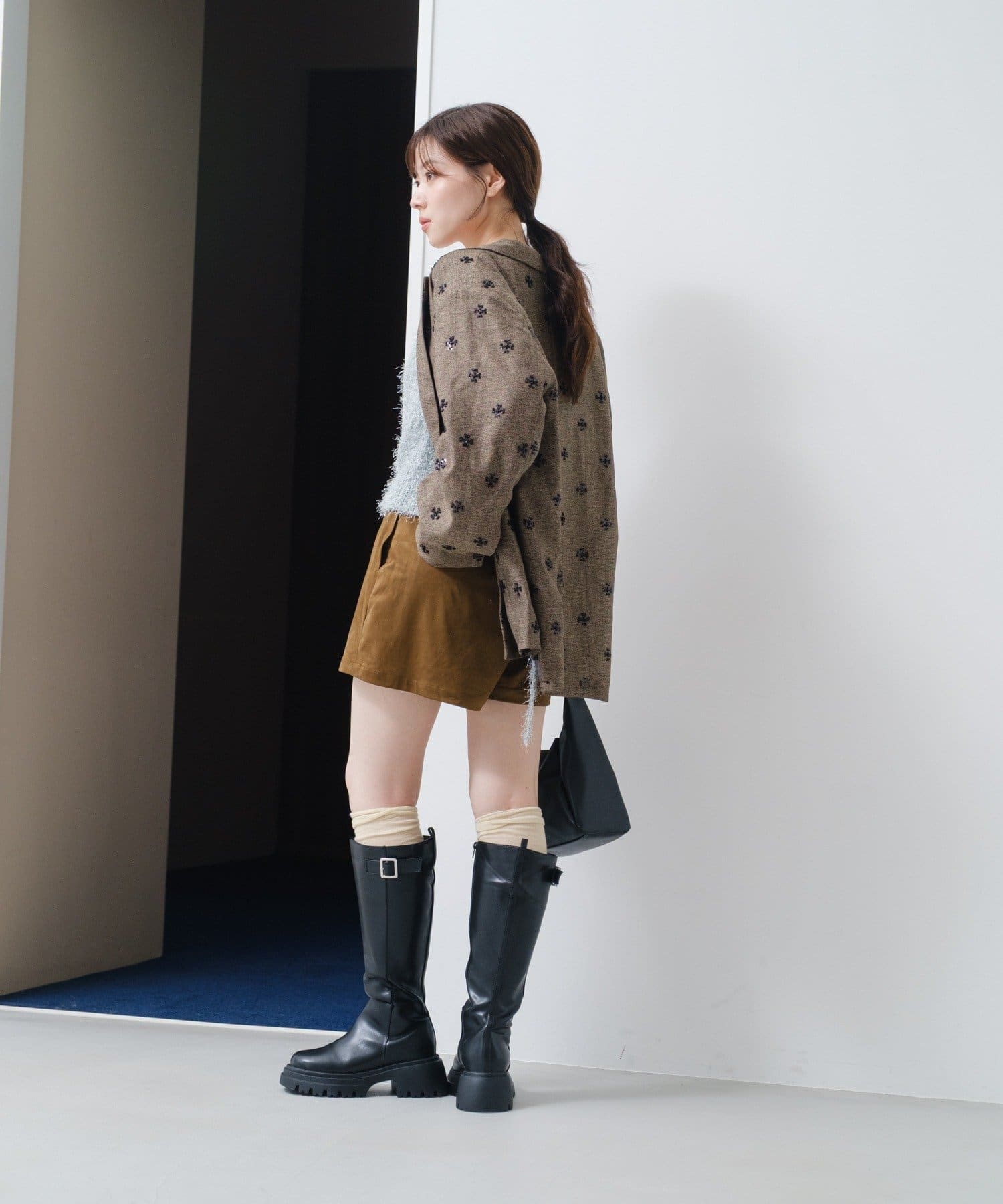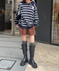 ロングブーツを合わせれば、季節感を高めつつ脚長効果も◎。