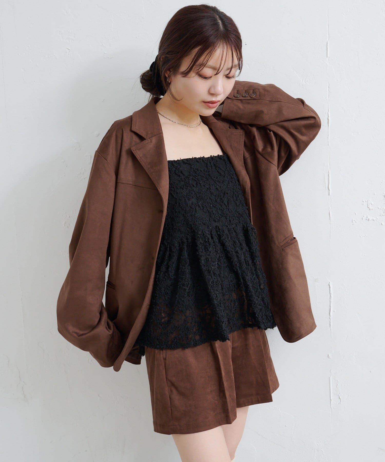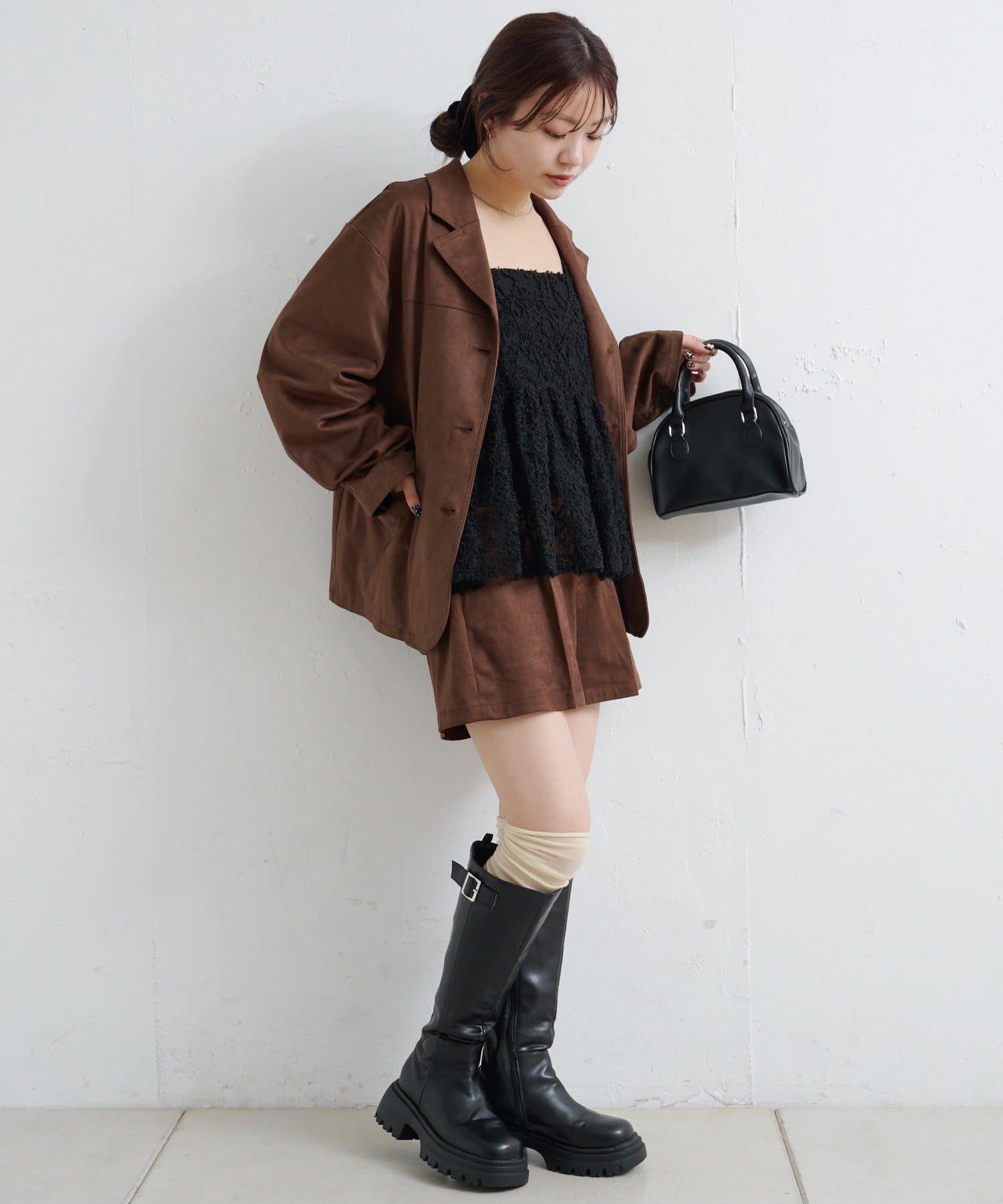 同素材のジャケットやカーディガンと合わせて、セットアップスタイルも楽しめます。