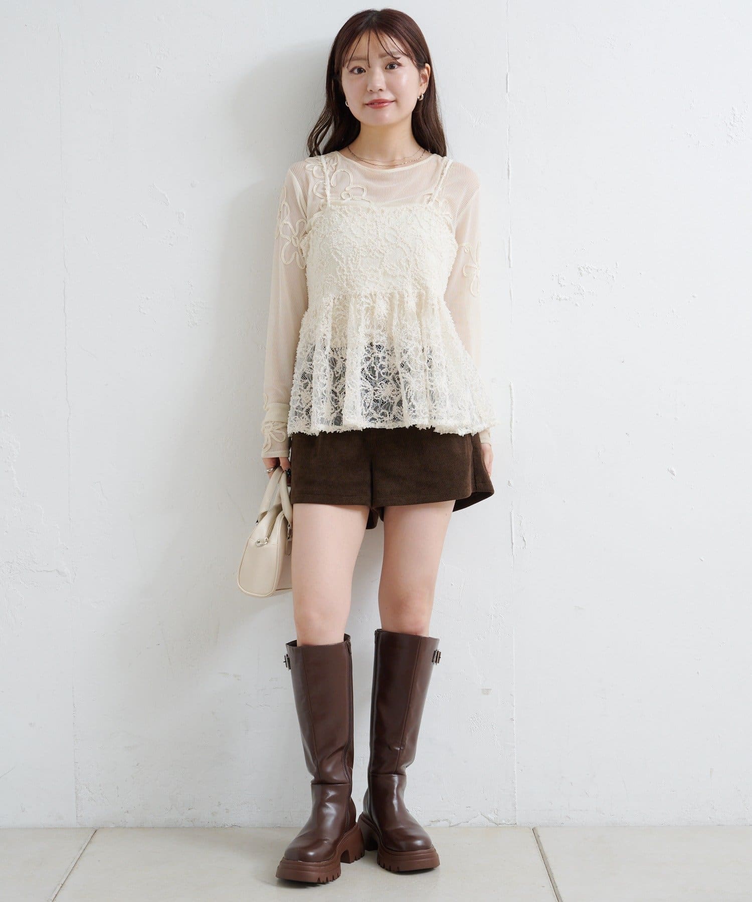 ジャケットやカーデのインに仕込んで、レースの質感をちらっと見せるスタイルも◎。