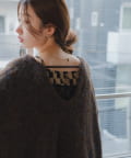 インナーやレースキャミをポイントにした、大人のレイヤードスタイルに。