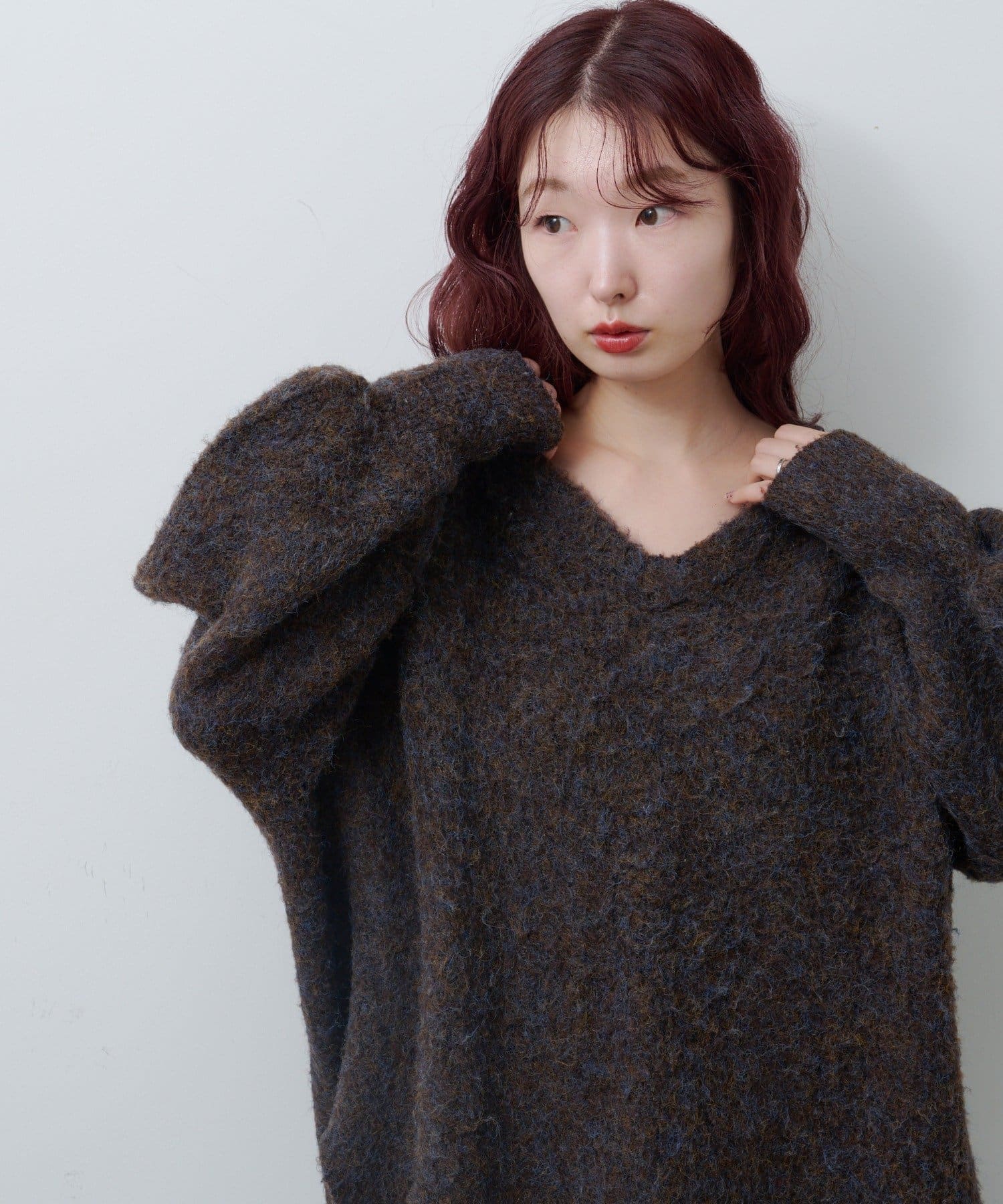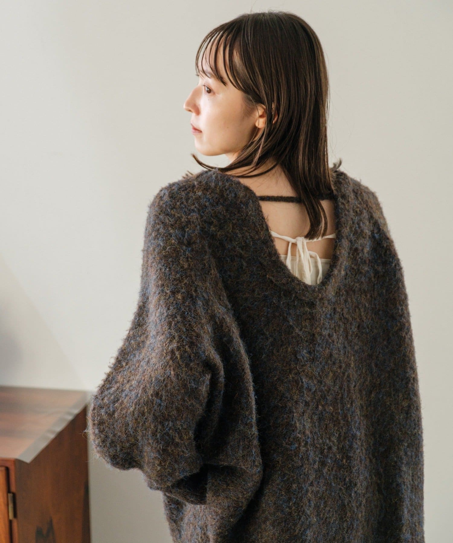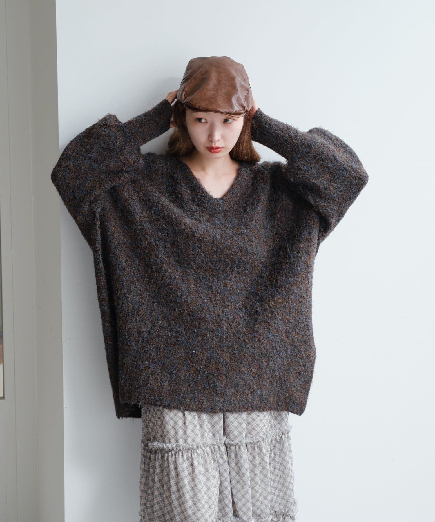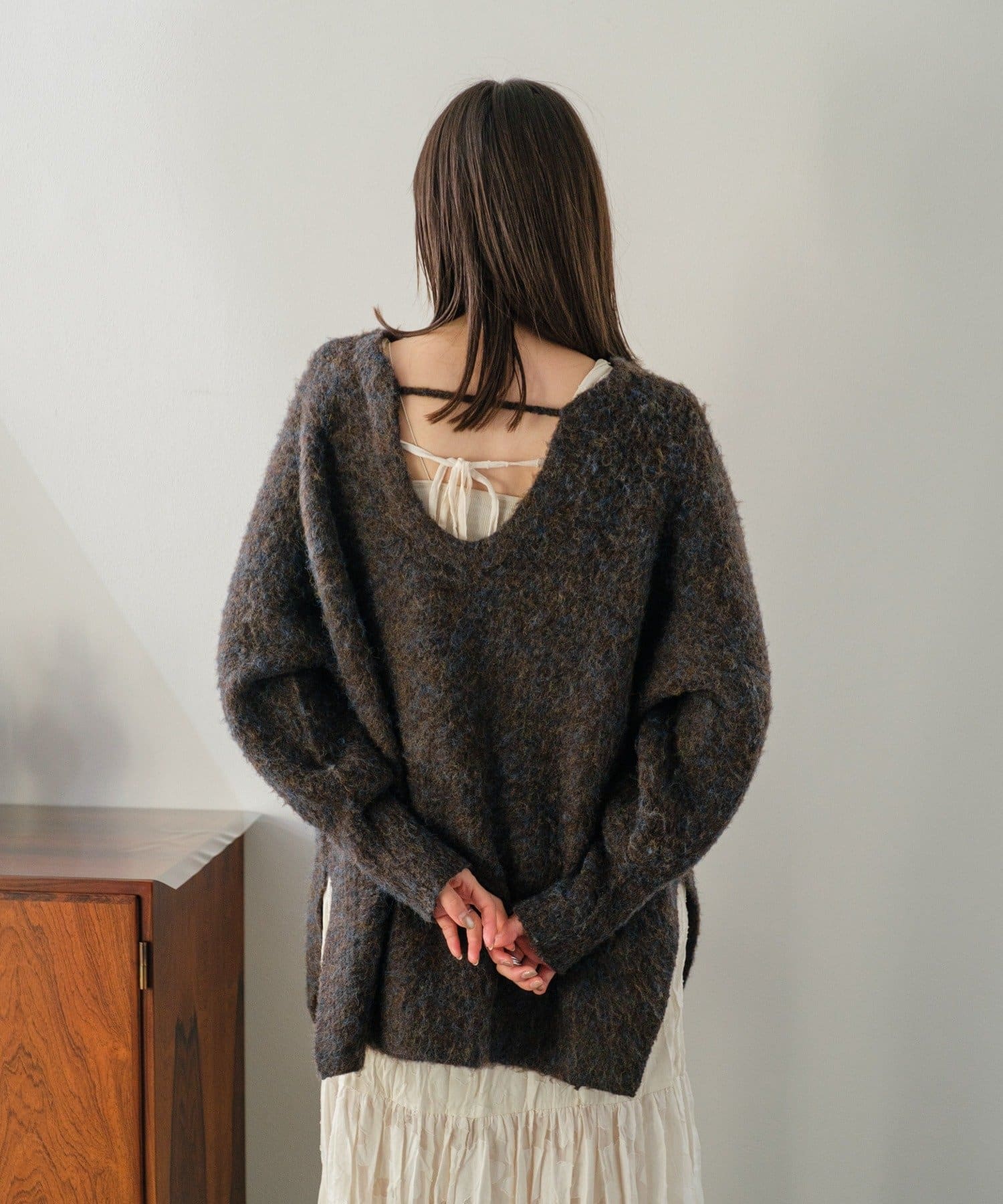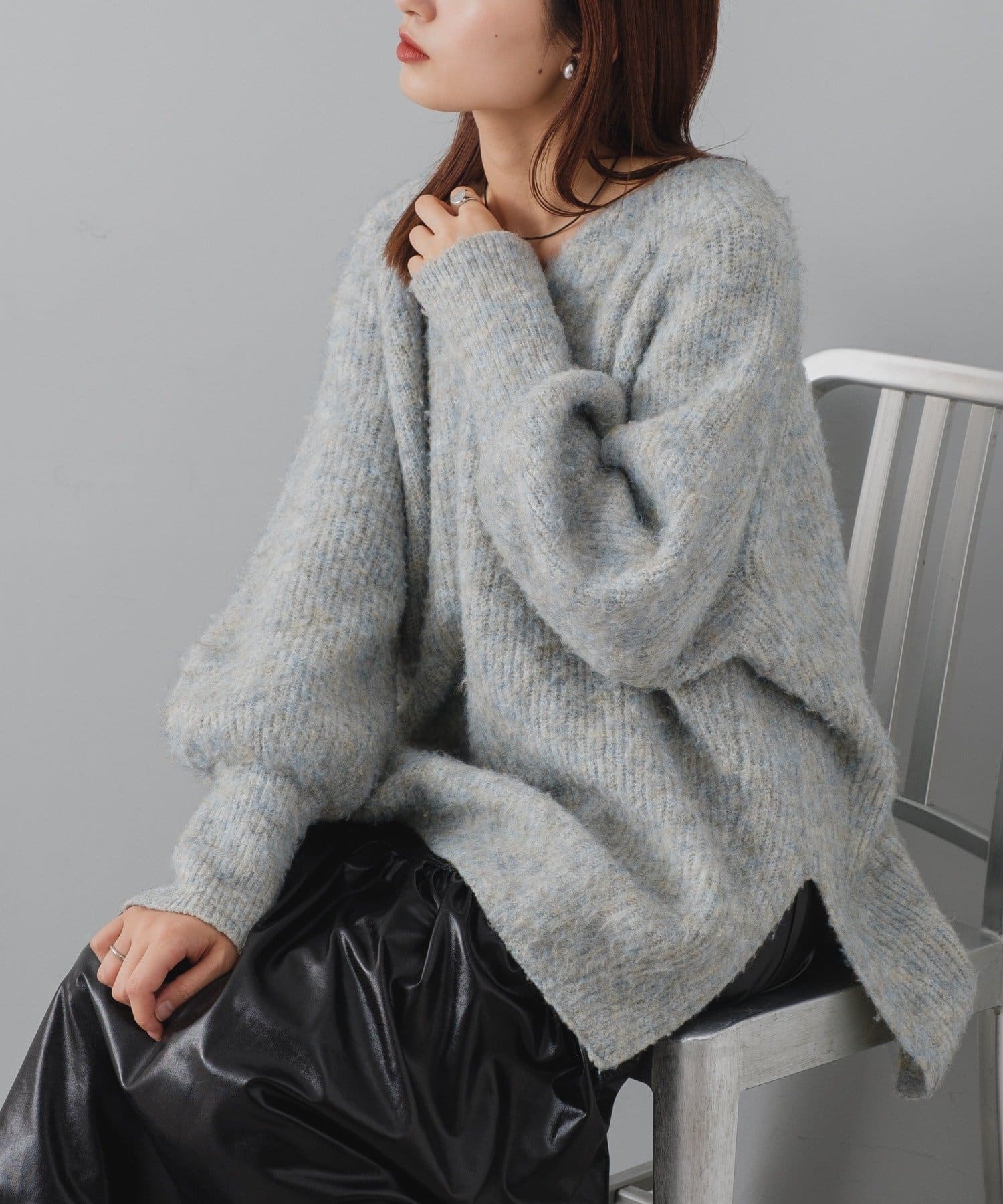 【WEB先行/前後2WAY】メランジVあきニットプルオーバー