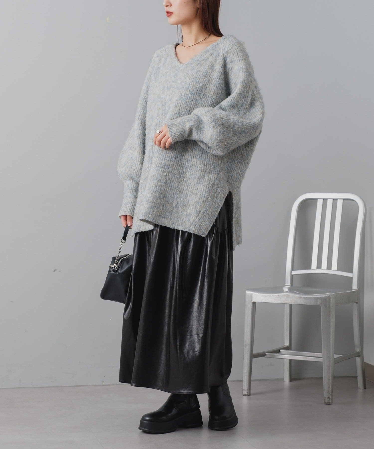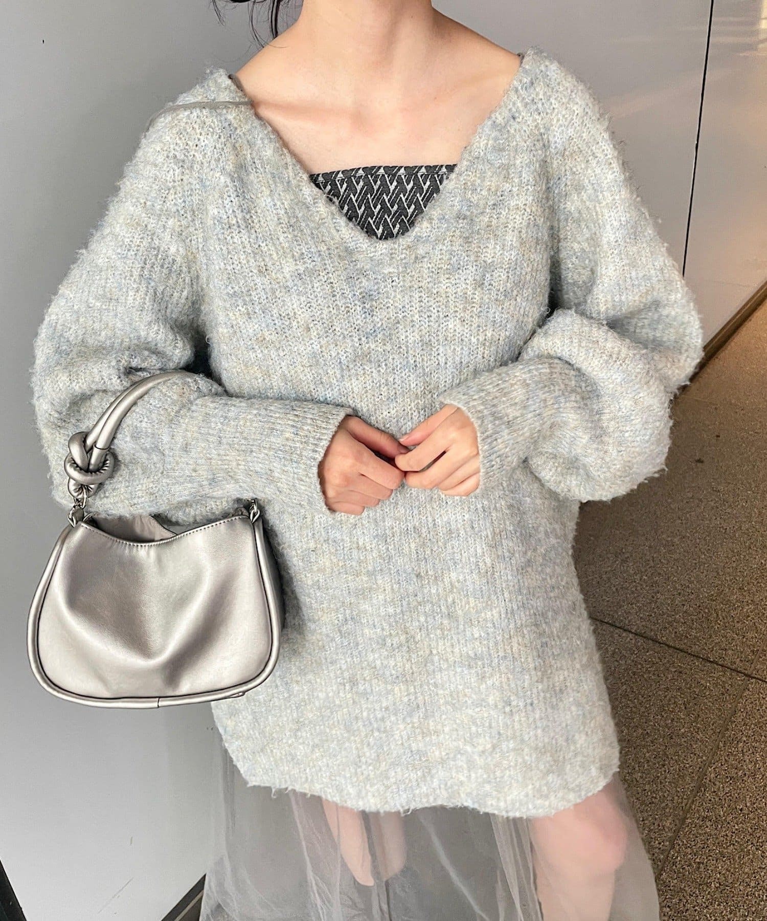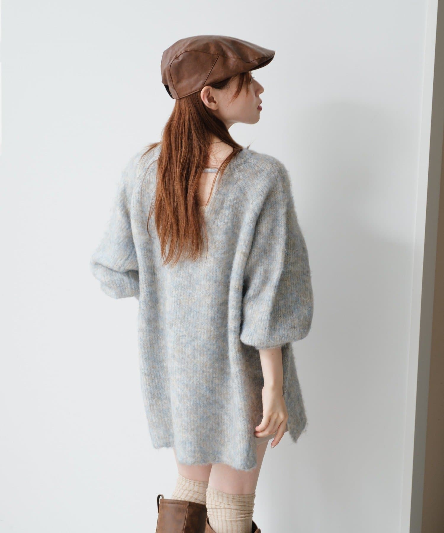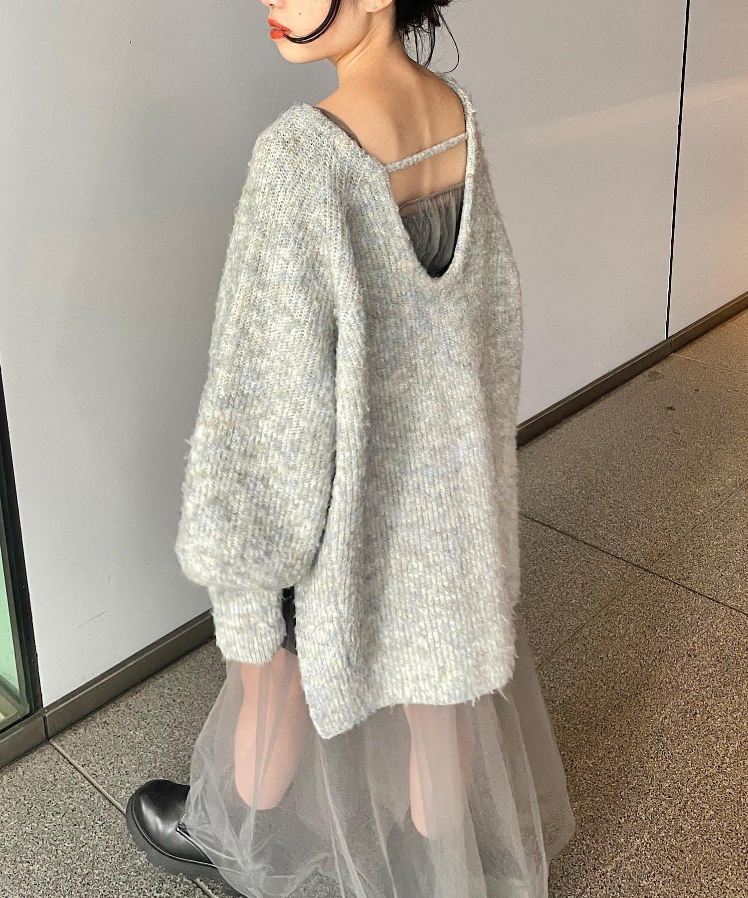 【WEB先行/前後2WAY】メランジVあきニットプルオーバー