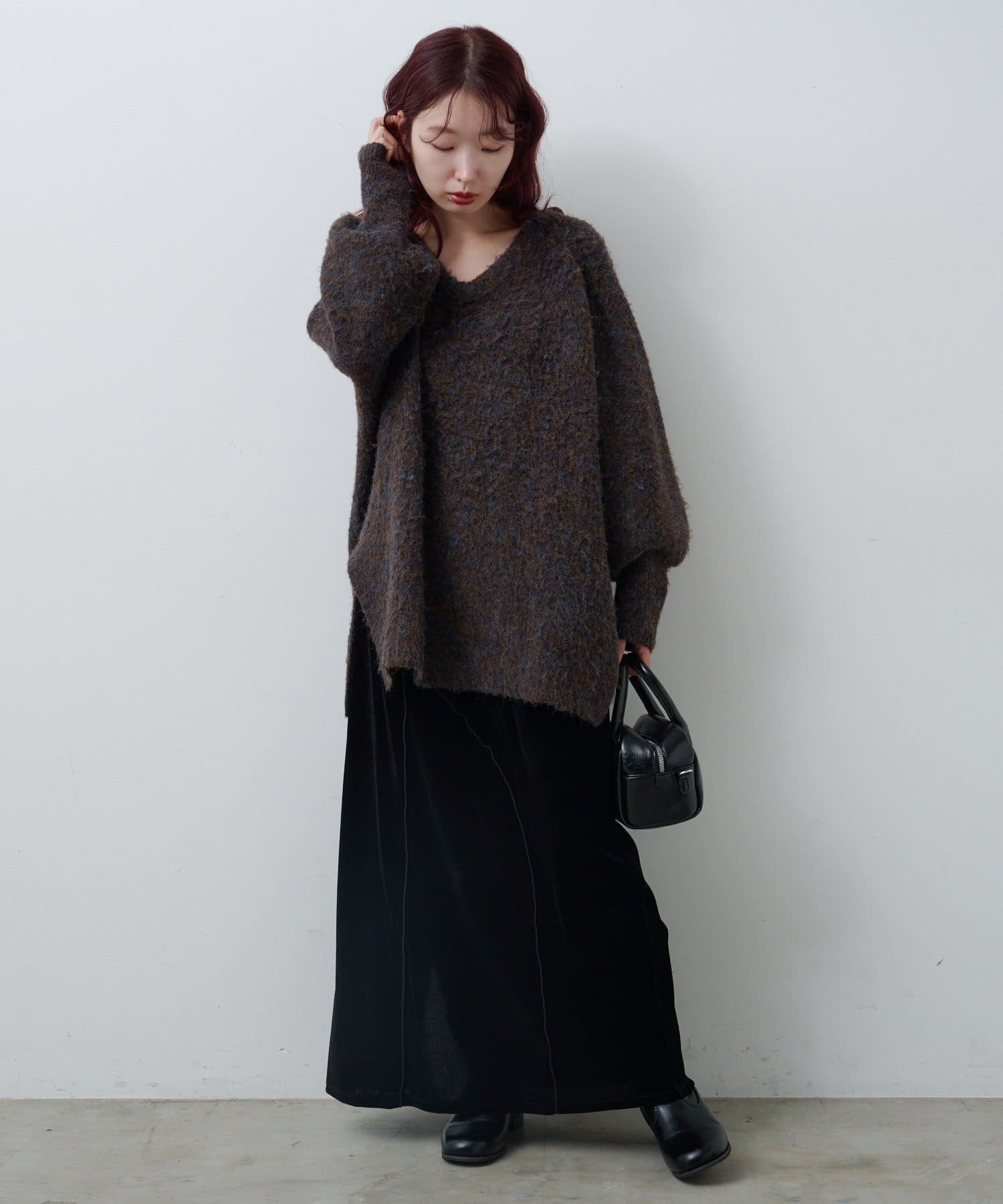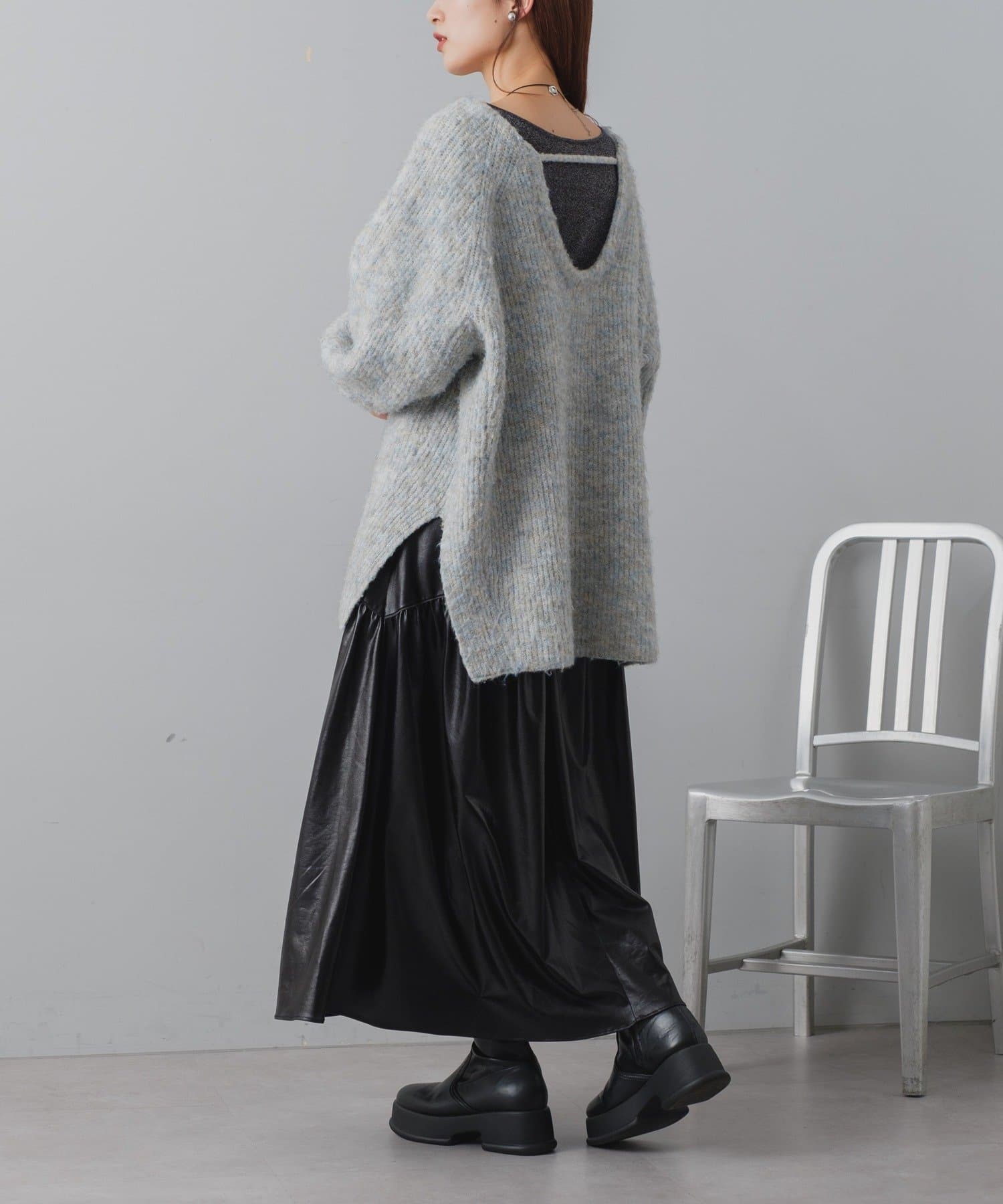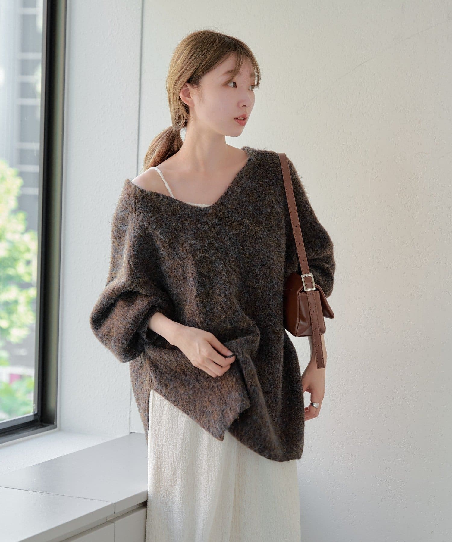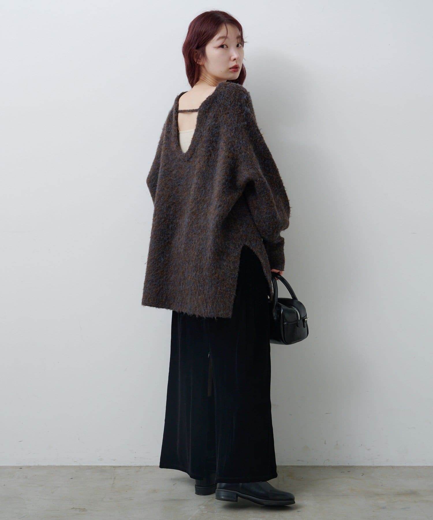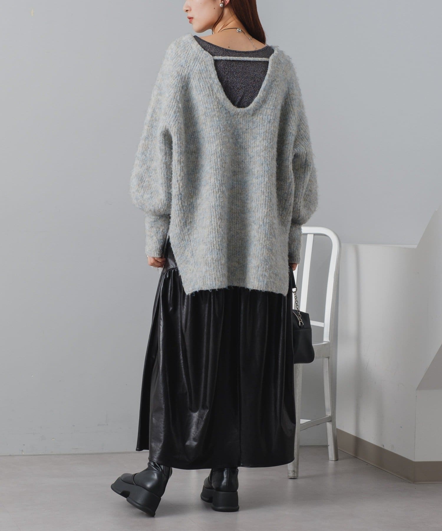 【WEB先行/前後2WAY】メランジVあきニットプルオーバー
