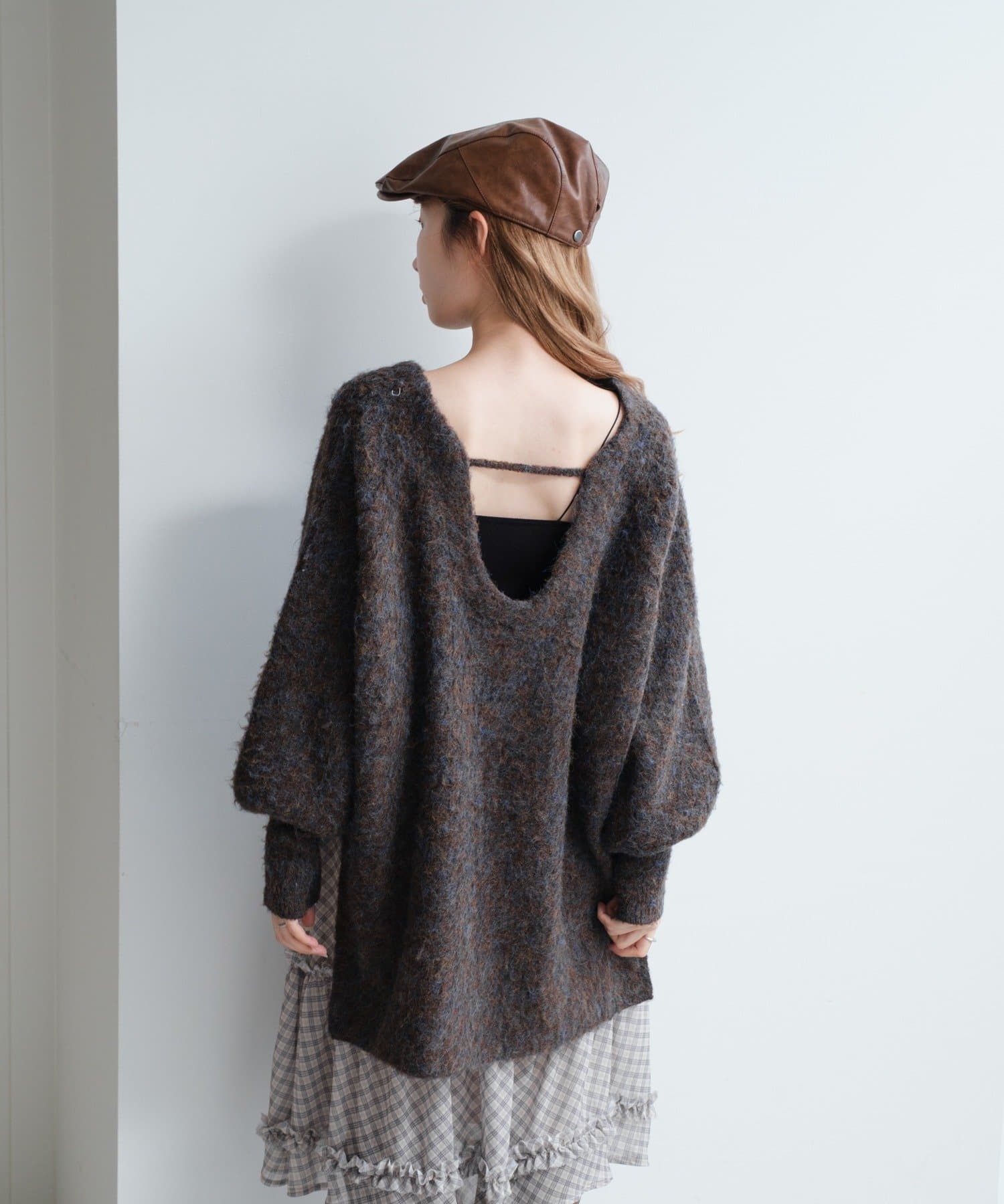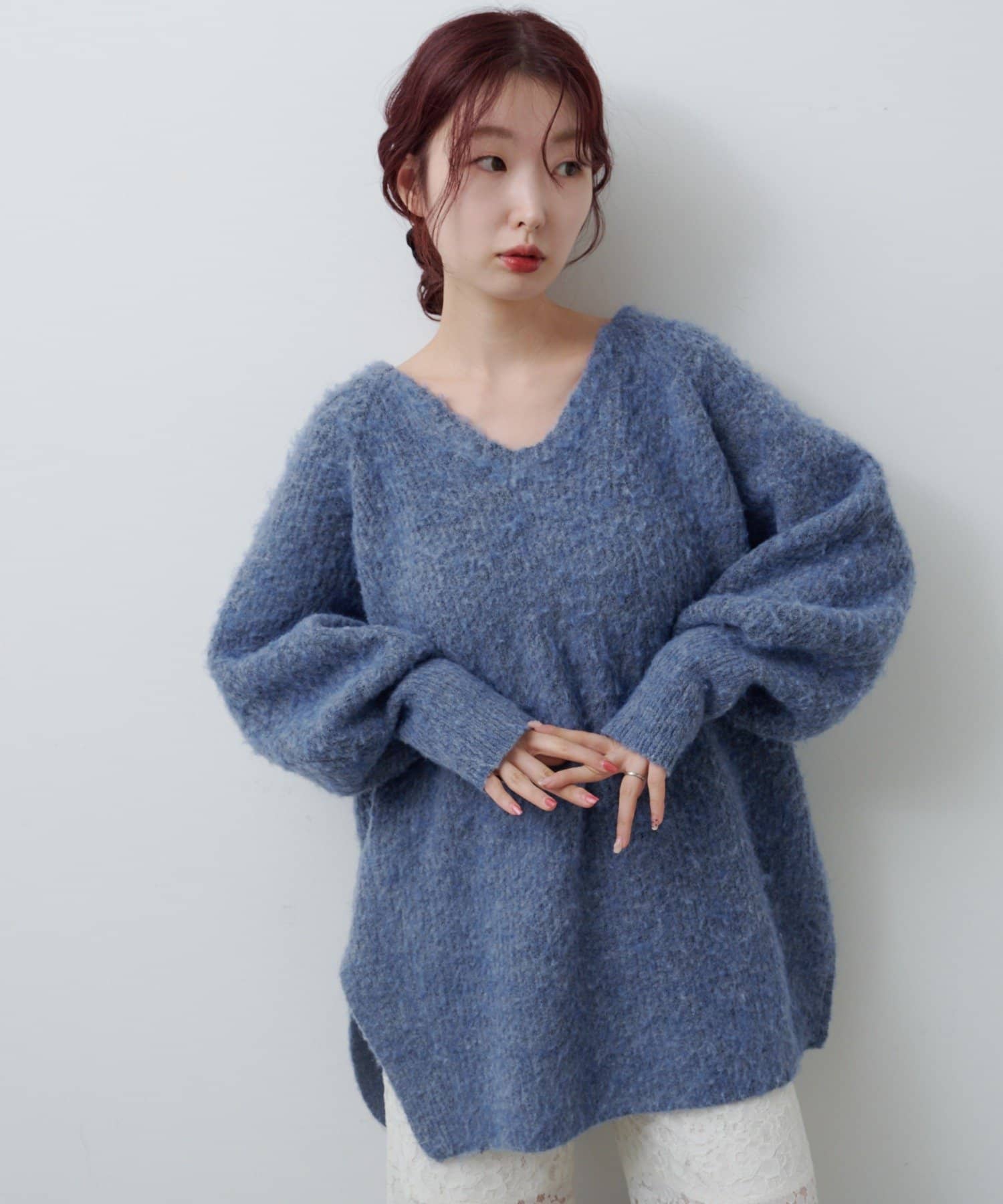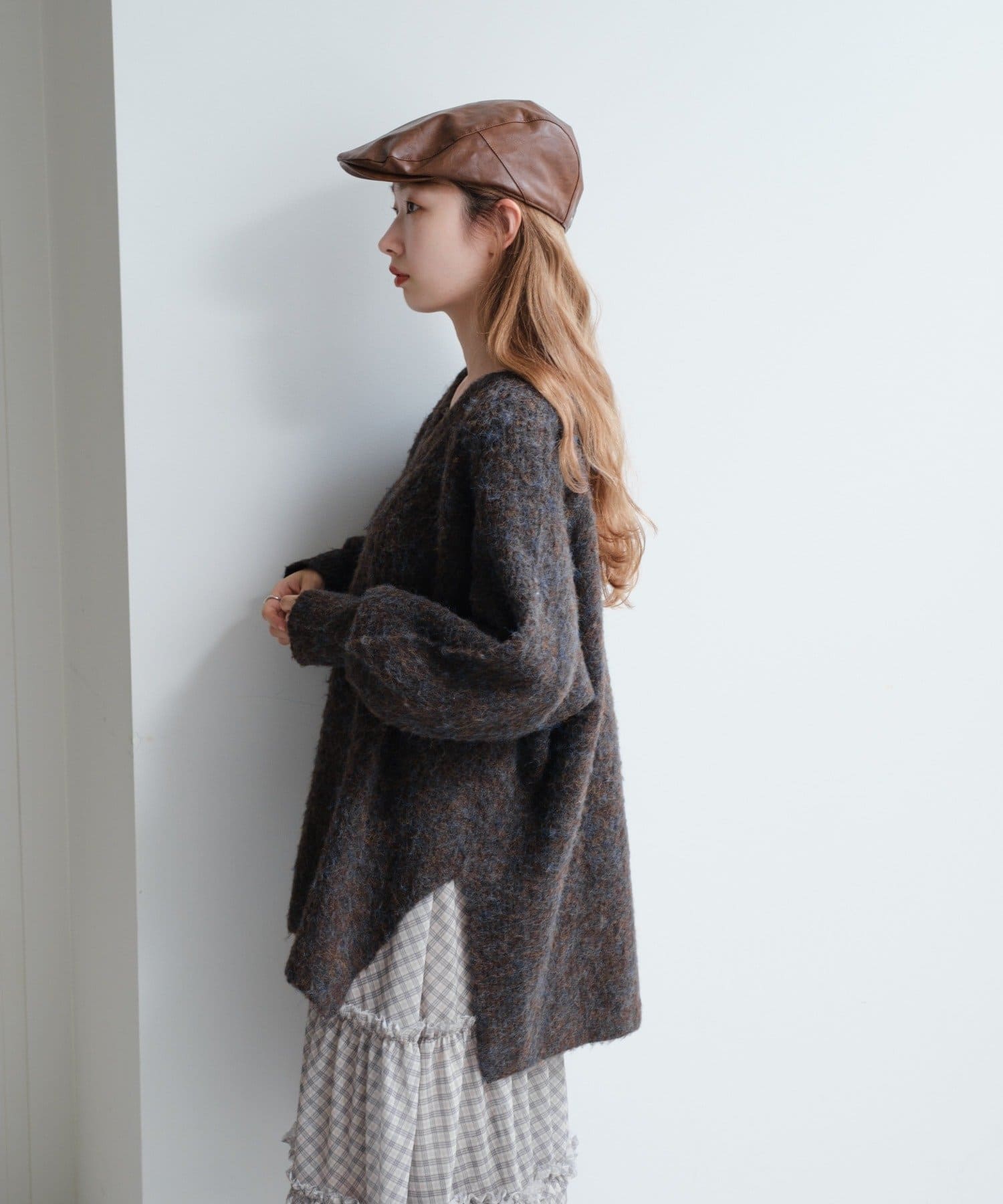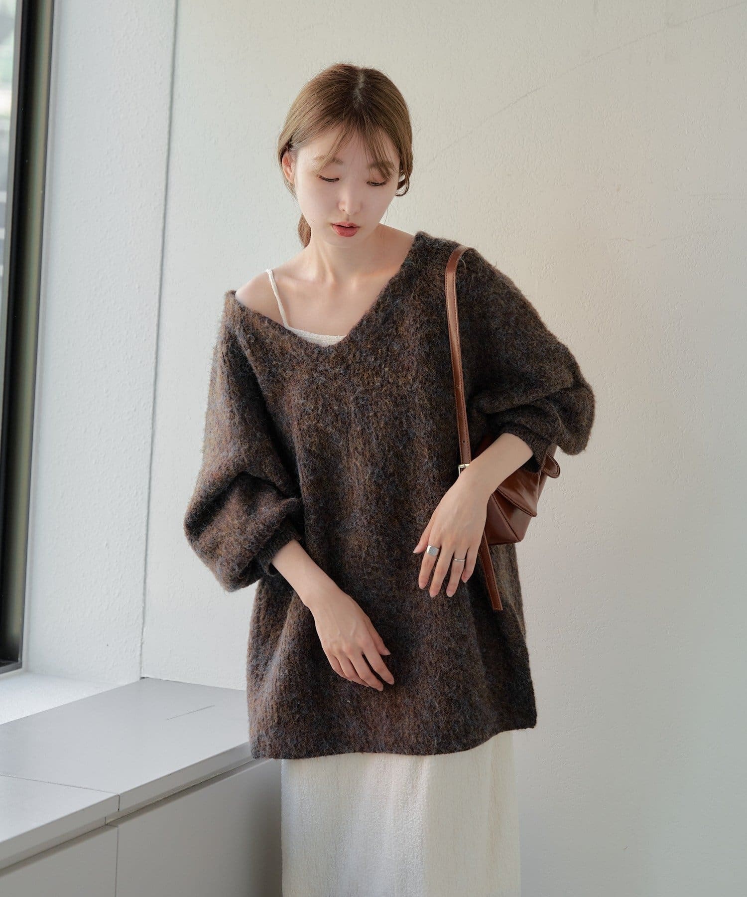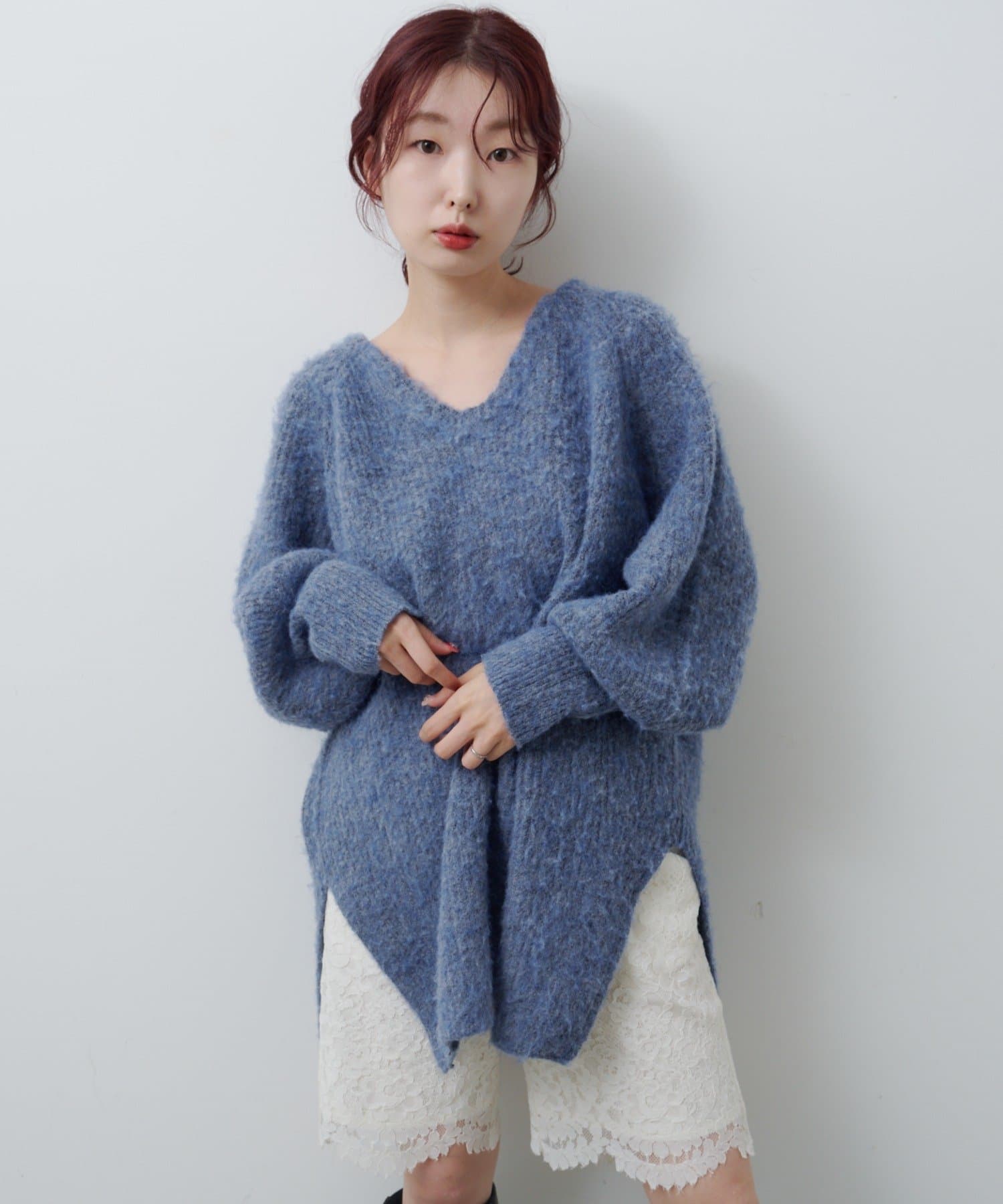 【WEB先行/前後2WAY】メランジVあきニットプルオーバー