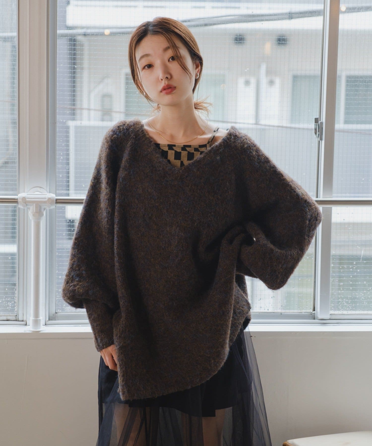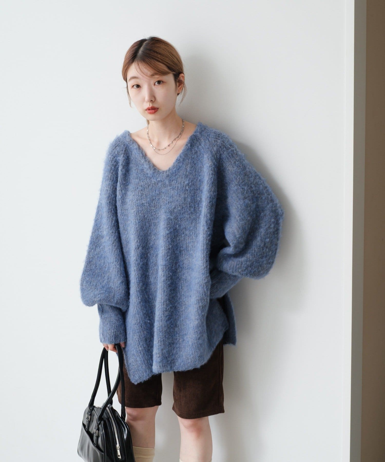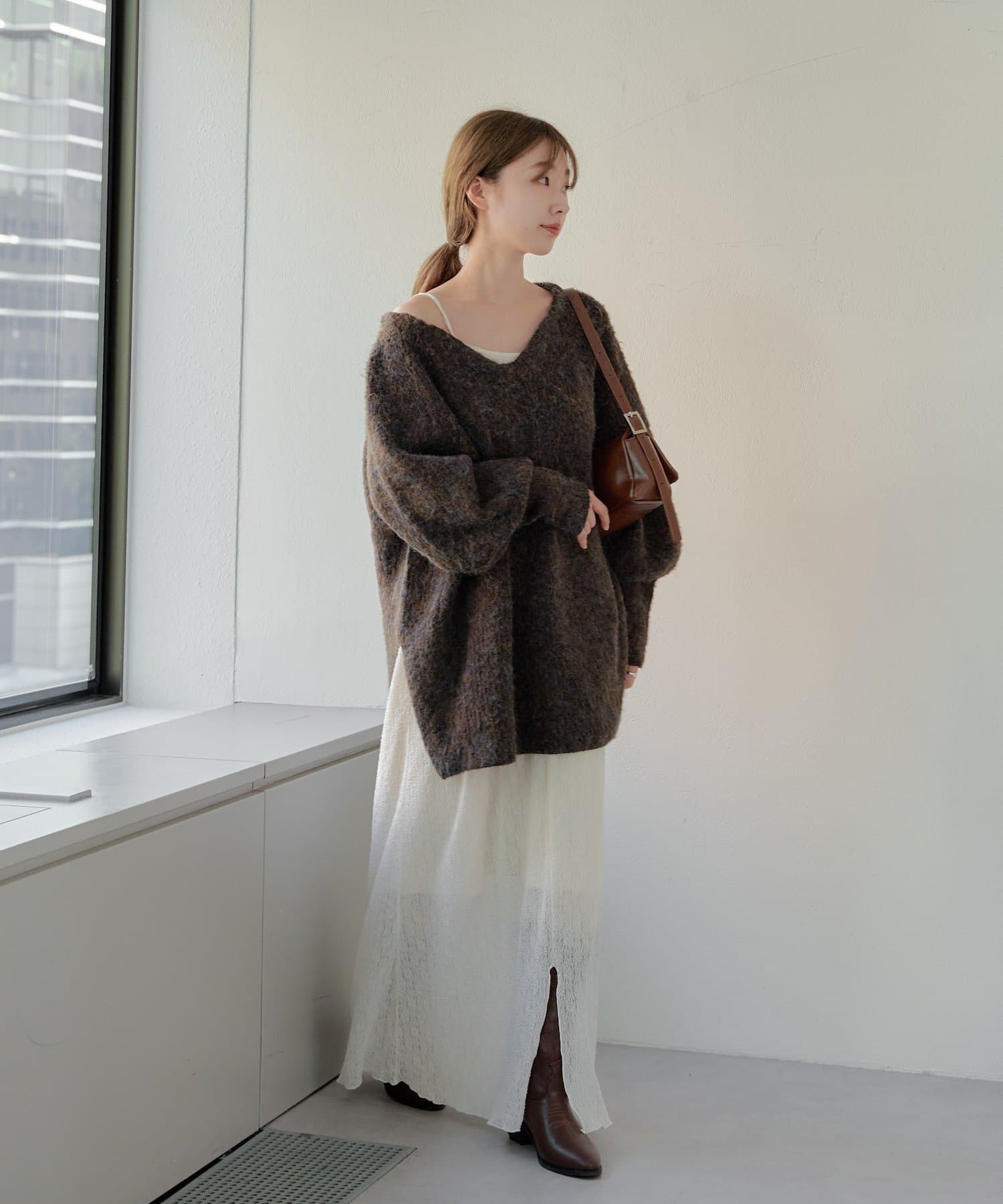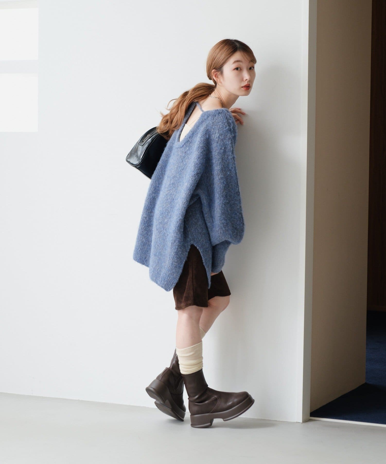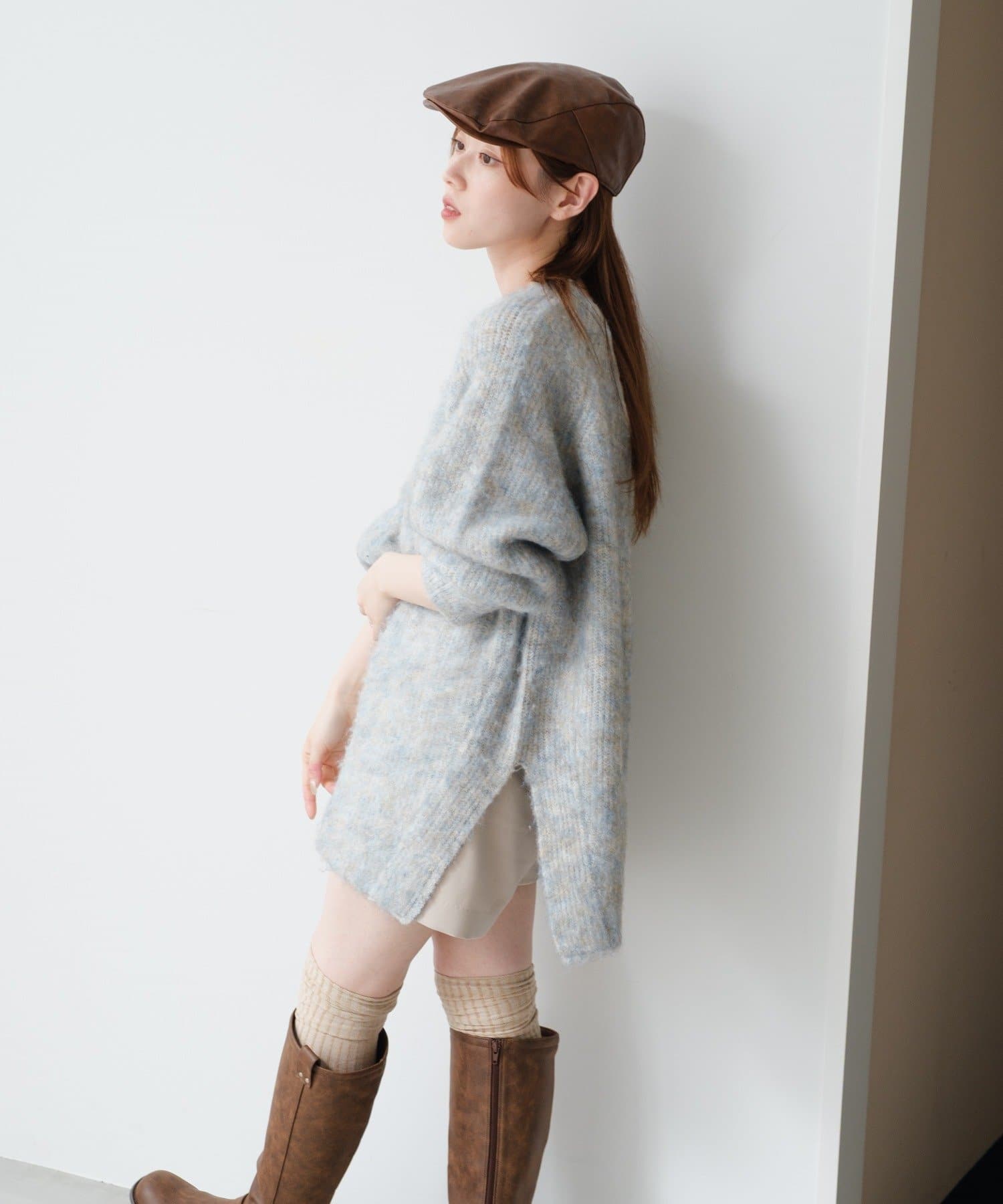 【WEB先行/前後2WAY】メランジVあきニットプルオーバー