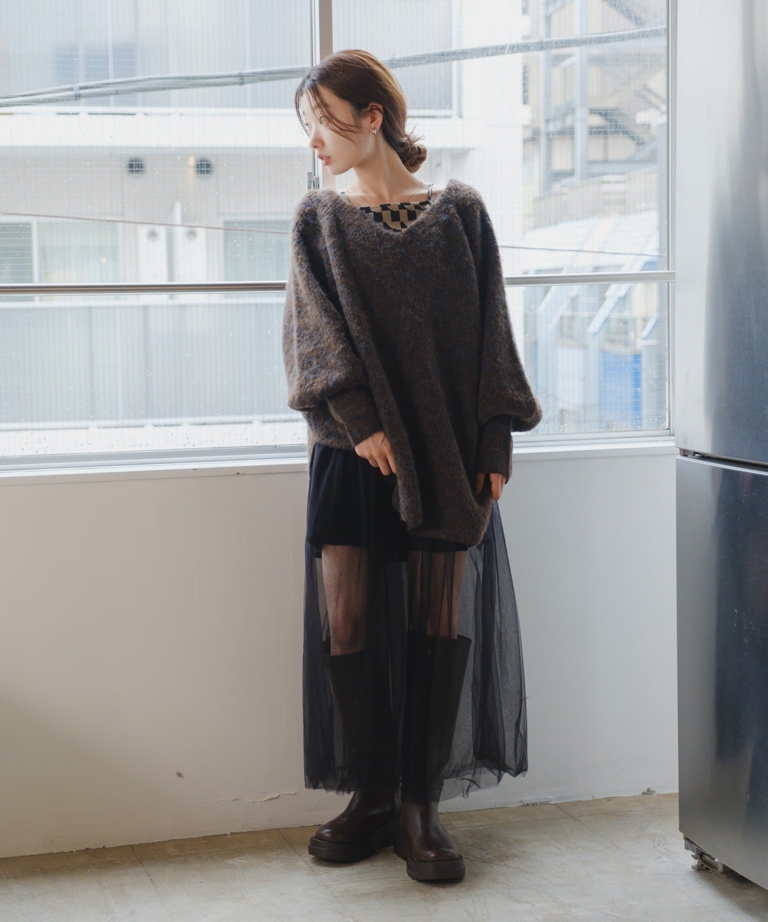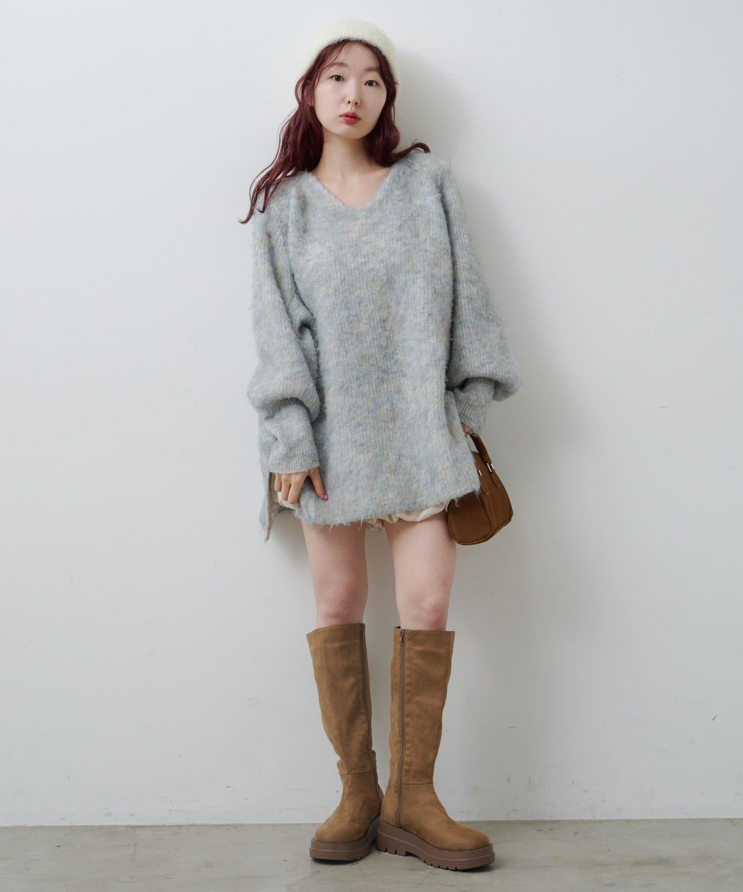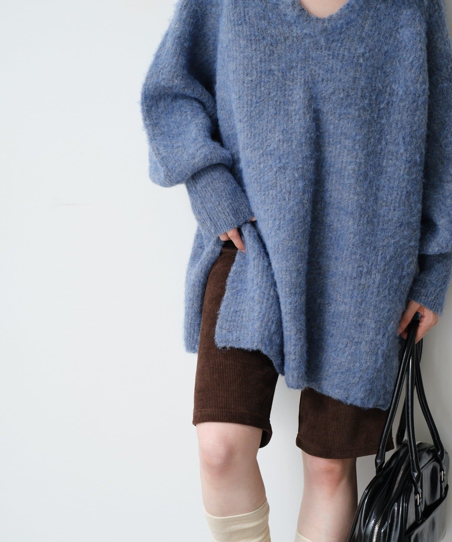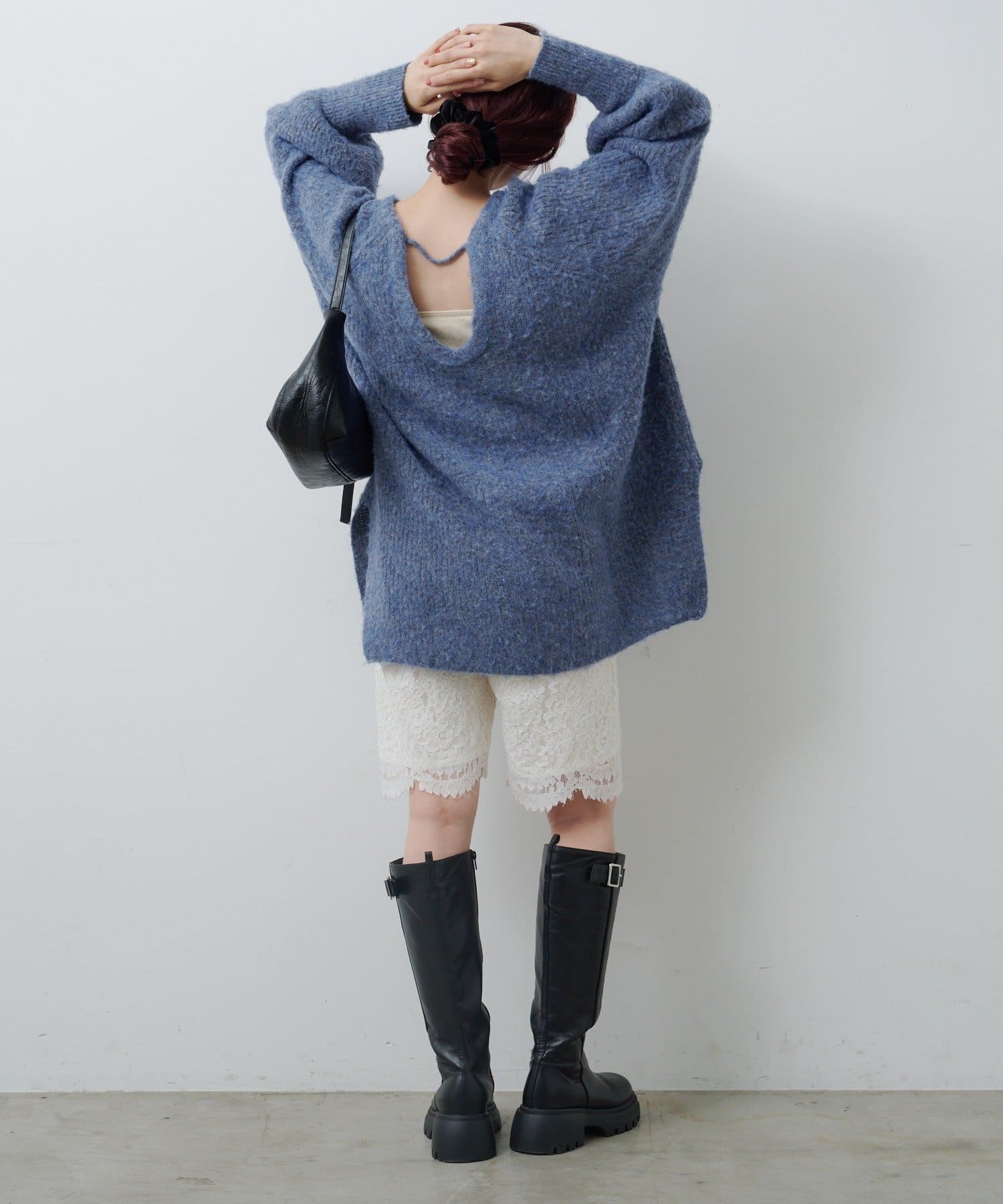 【WEB先行/前後2WAY】メランジVあきニットプルオーバー