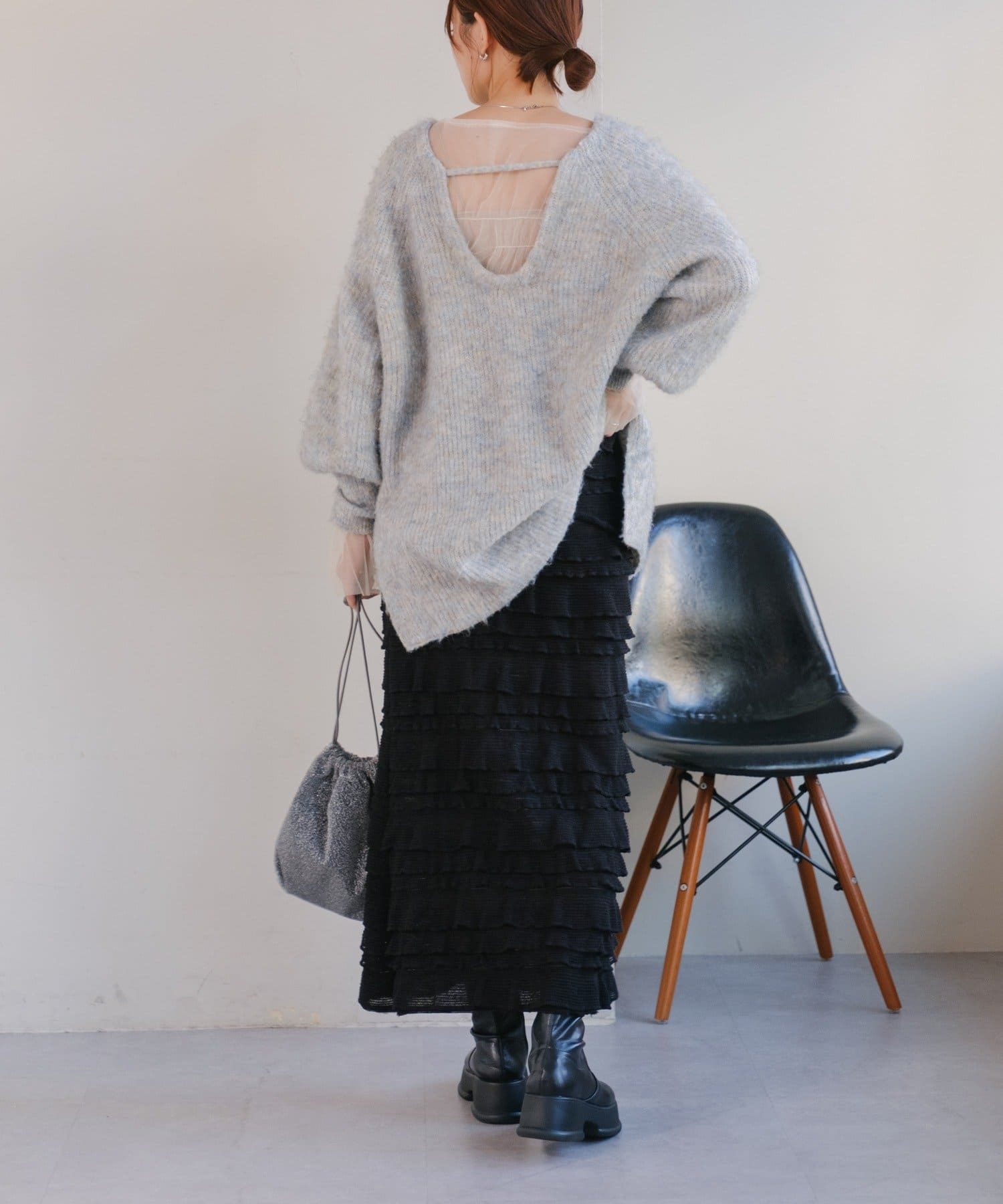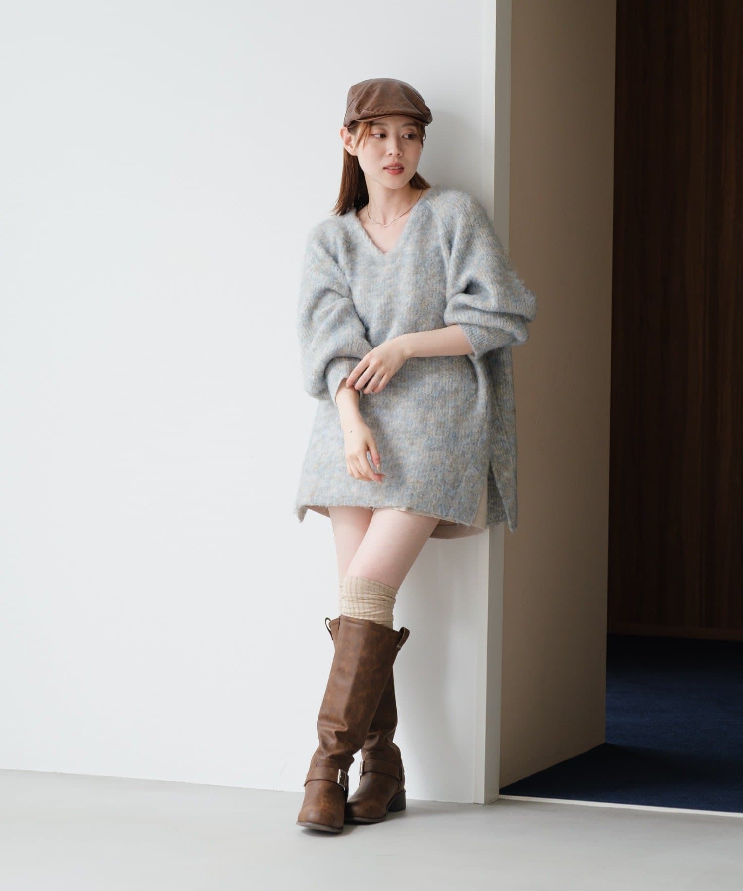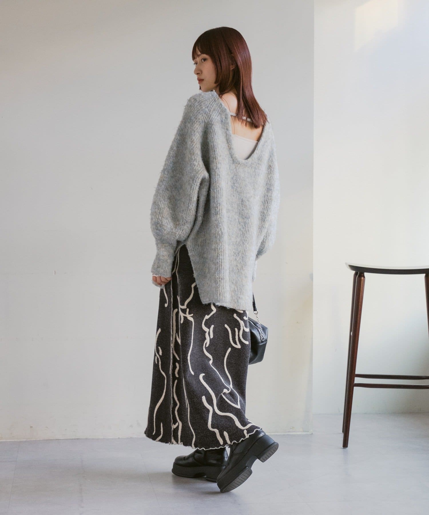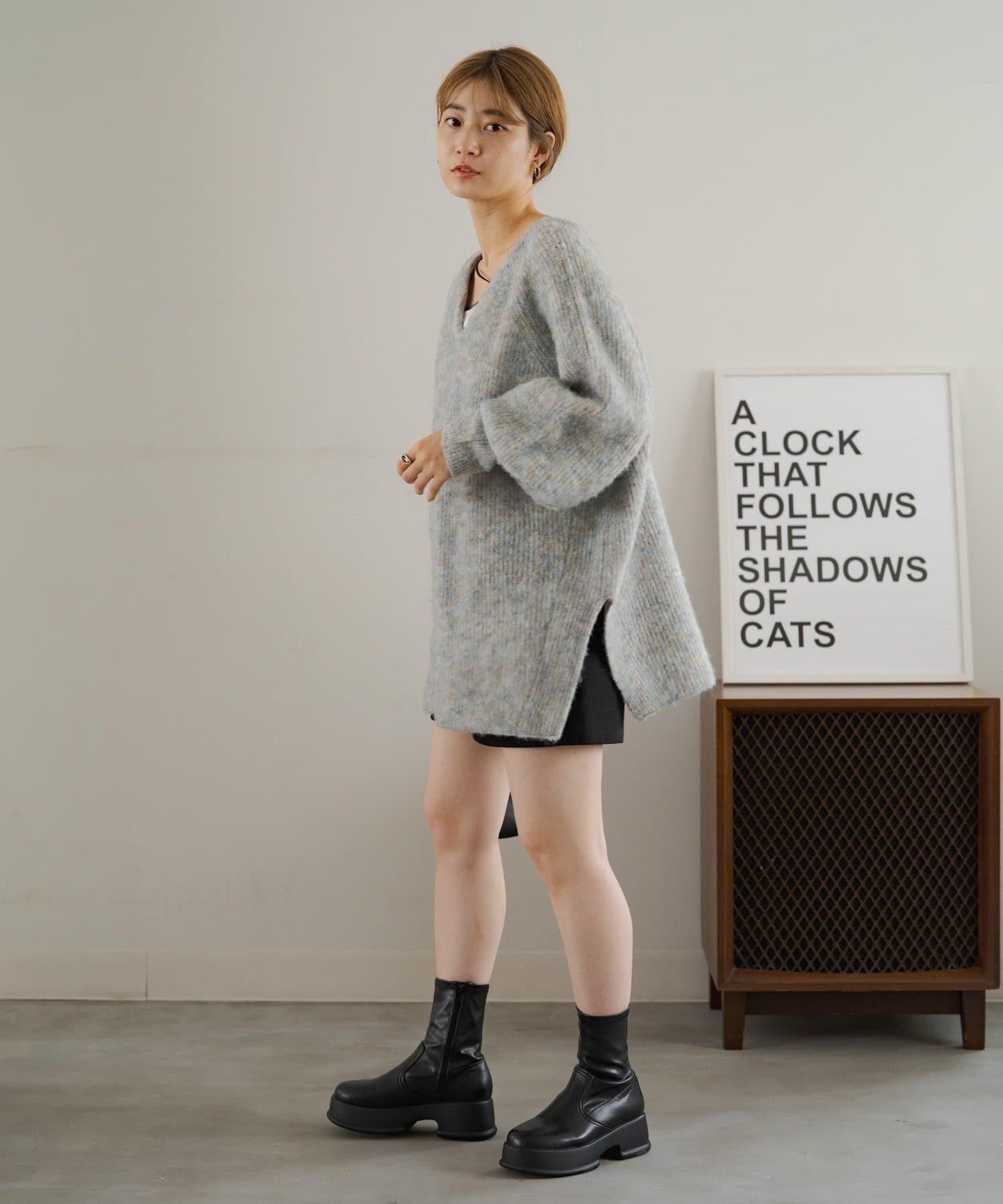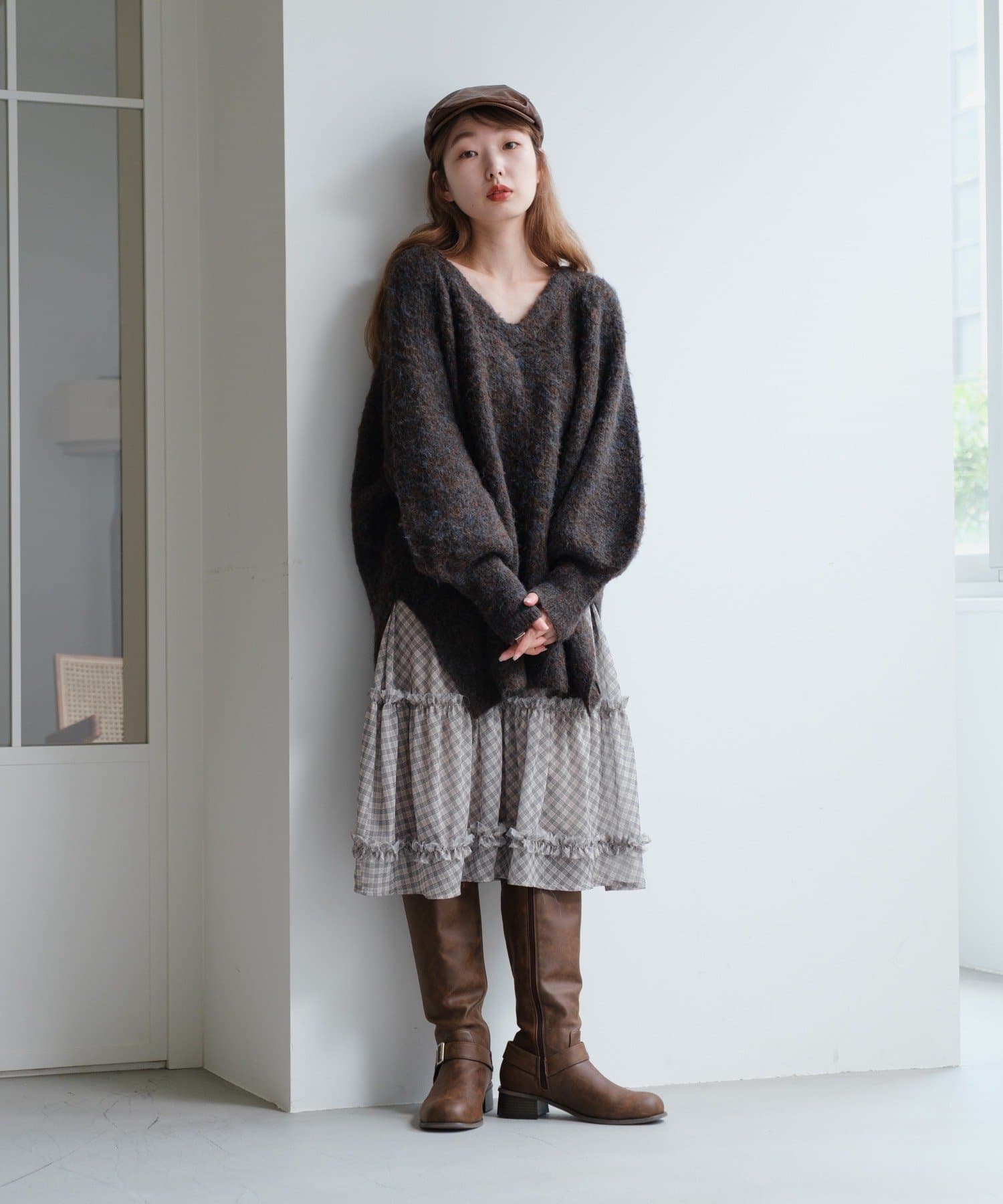 【WEB先行/前後2WAY】メランジVあきニットプルオーバー