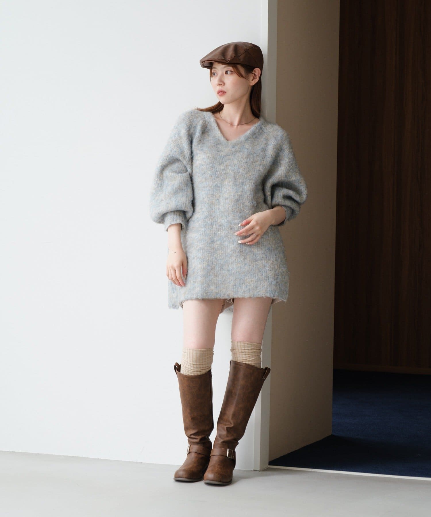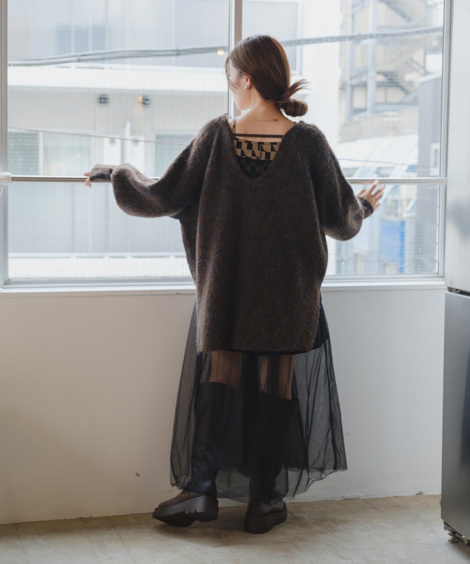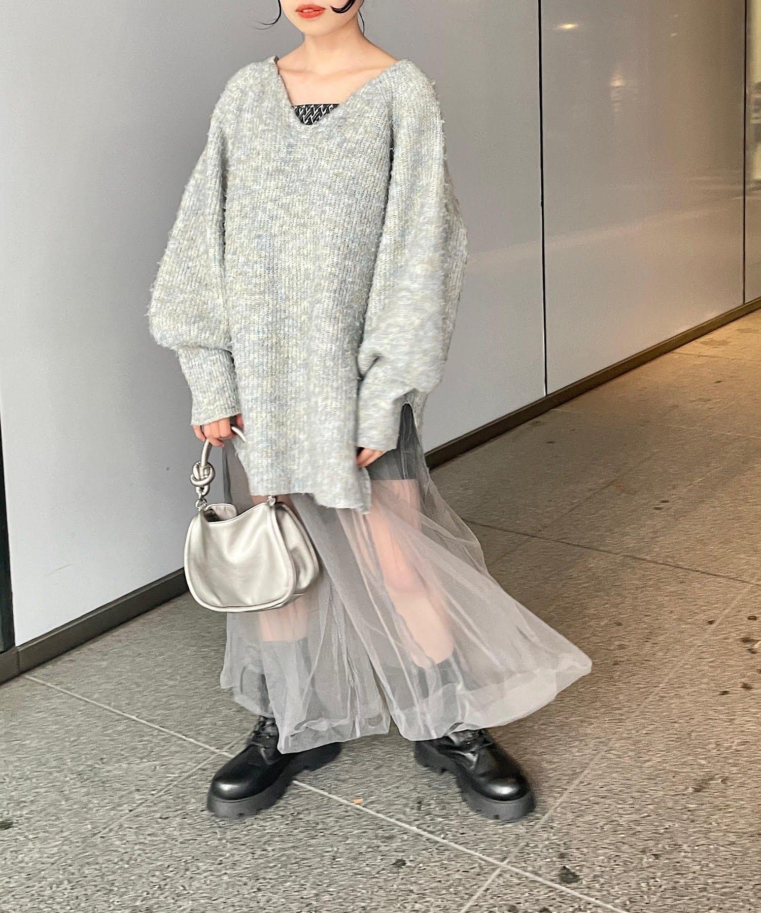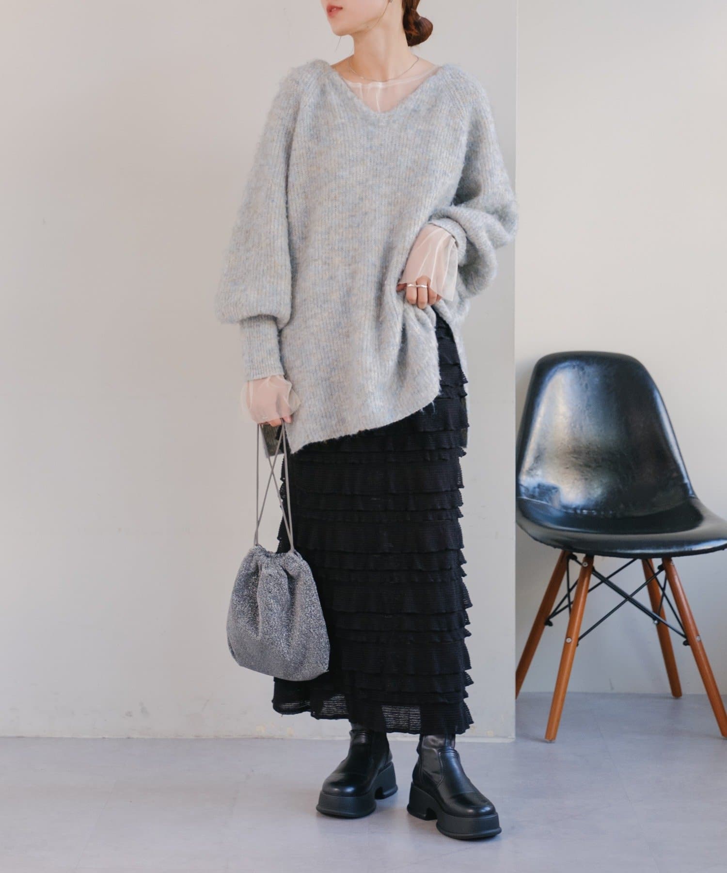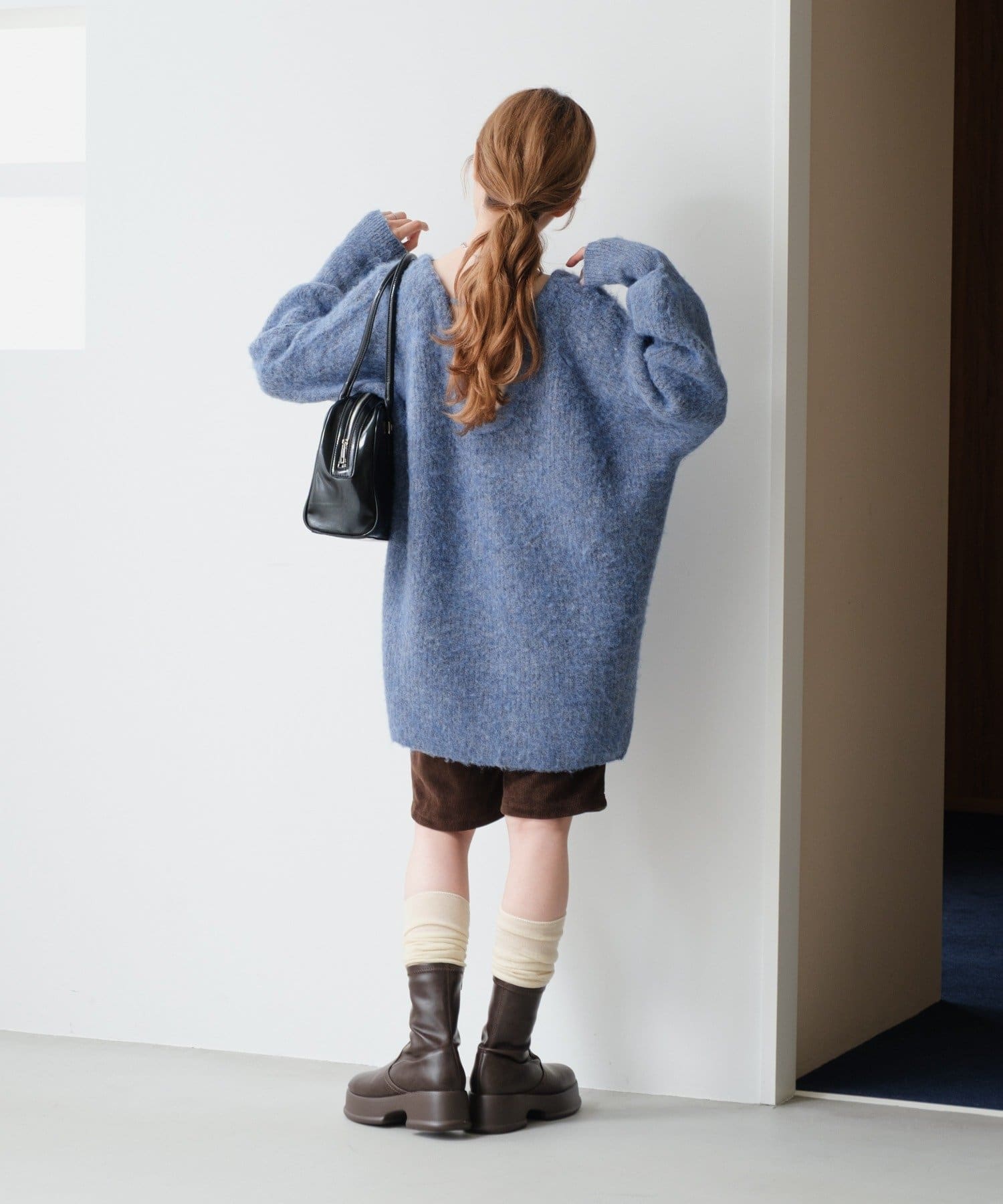 【WEB先行/前後2WAY】メランジVあきニットプルオーバー