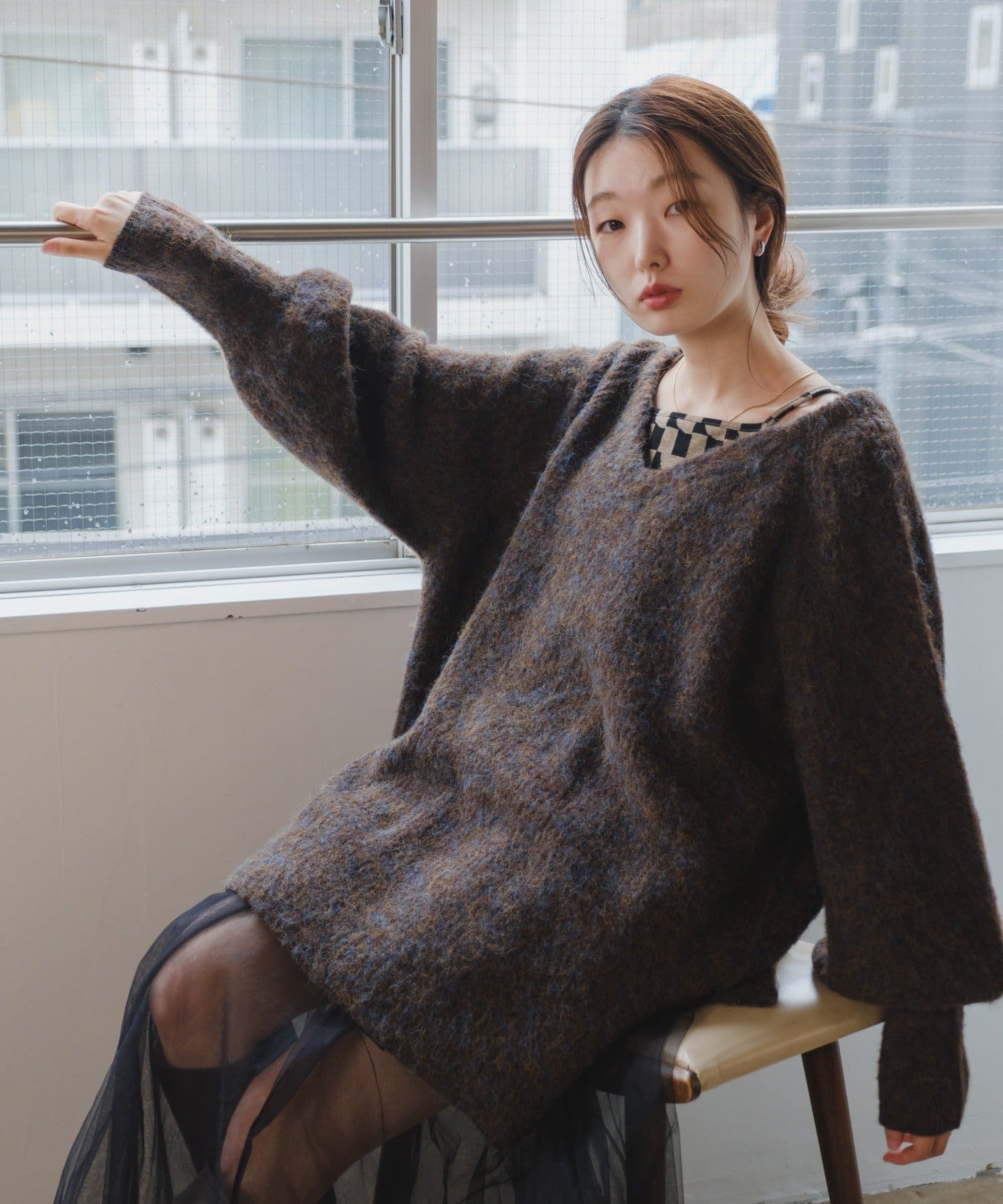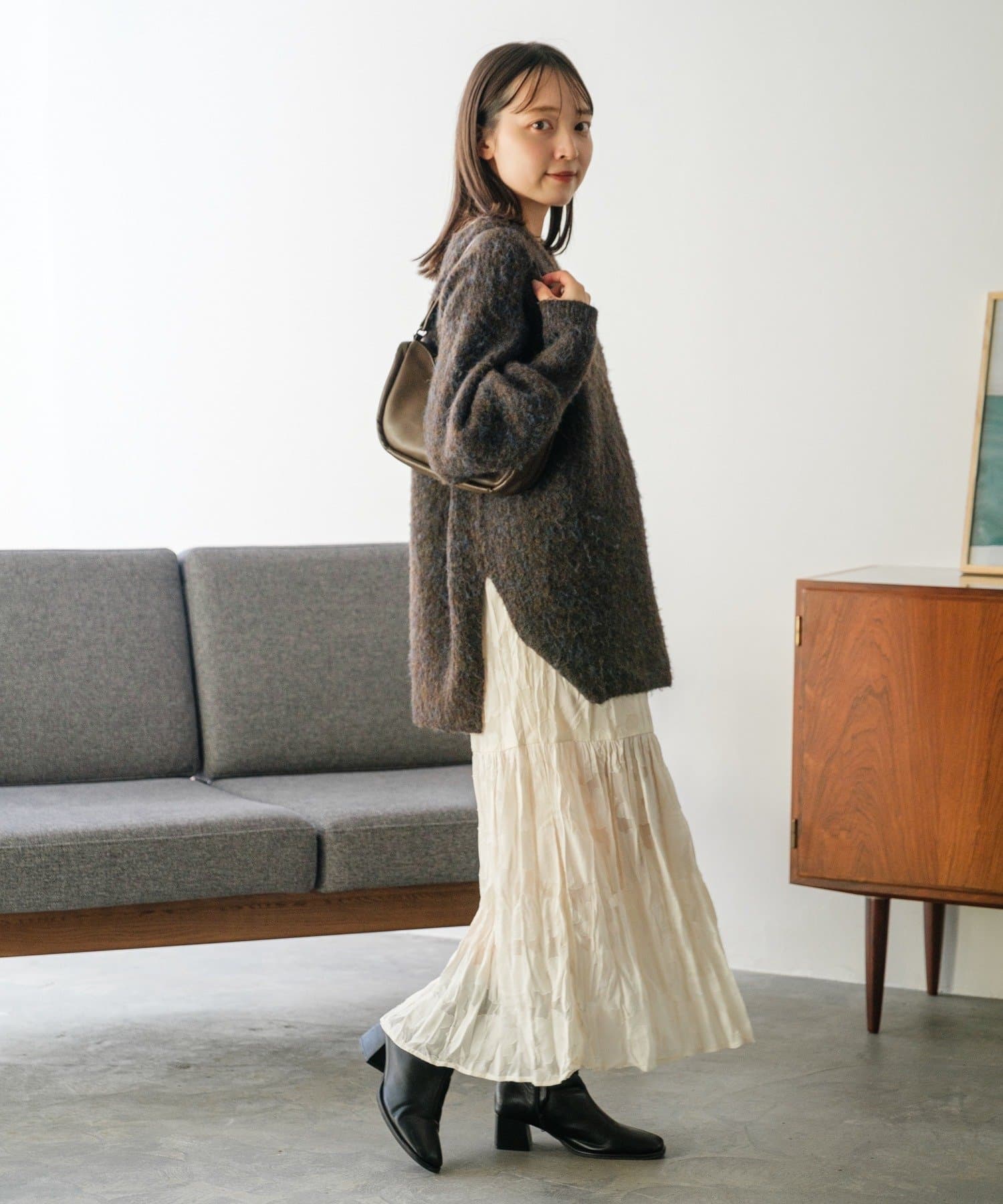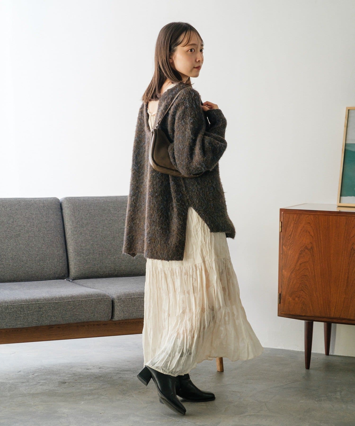 霜降り調の色合いが、ナチュラルで温かみのある印象を与え、着るだけでやさしい雰囲気を演出。