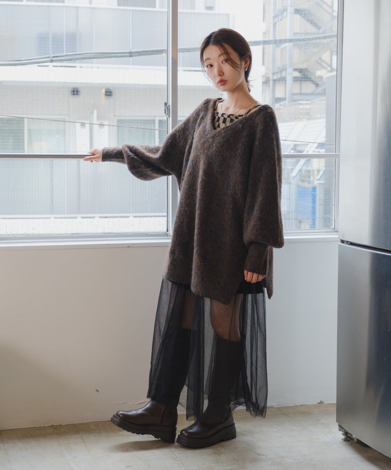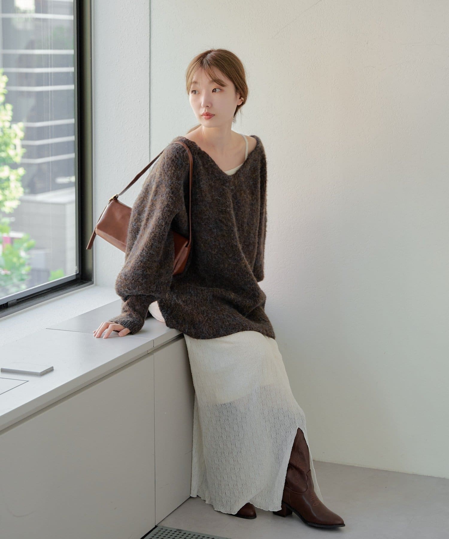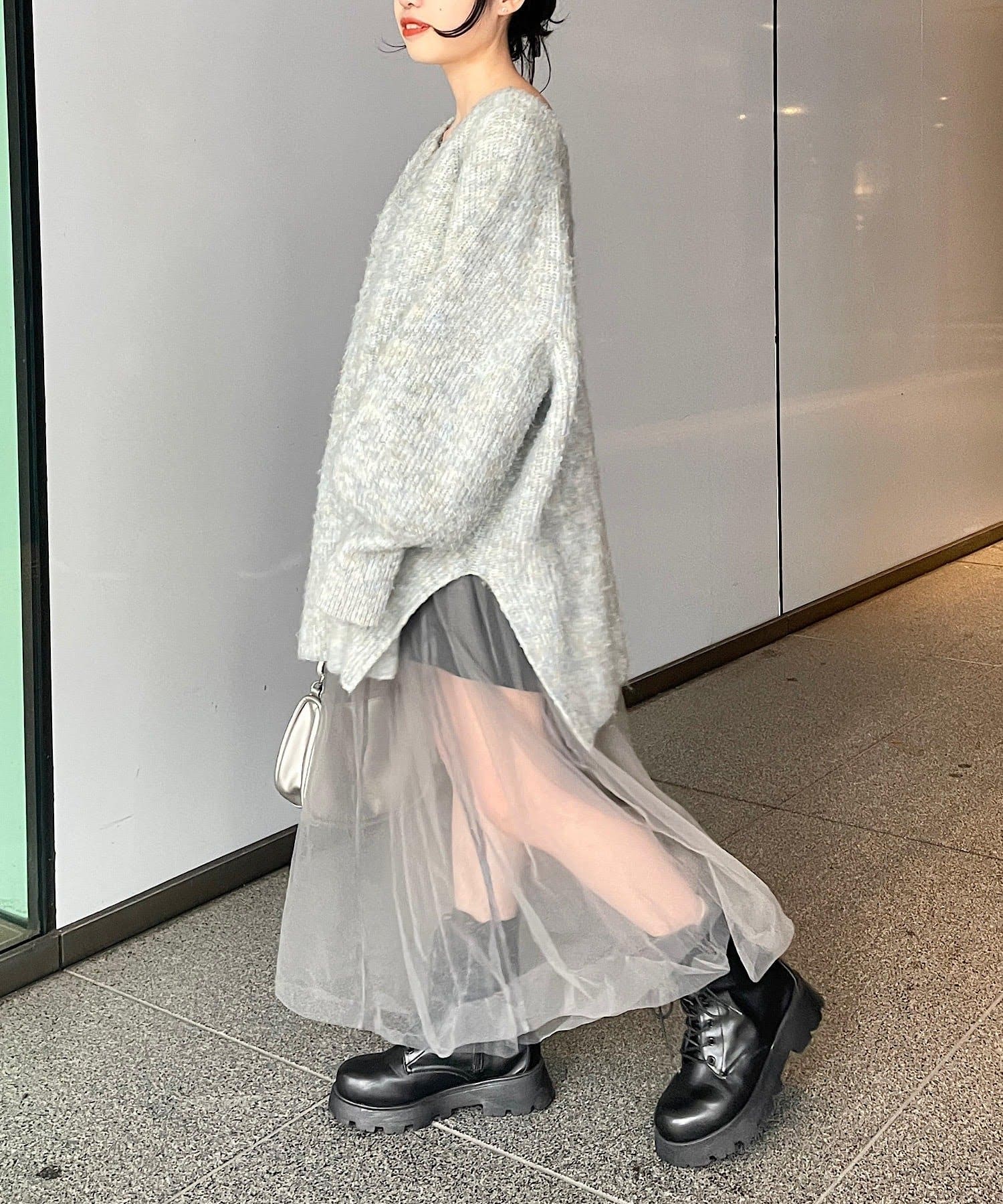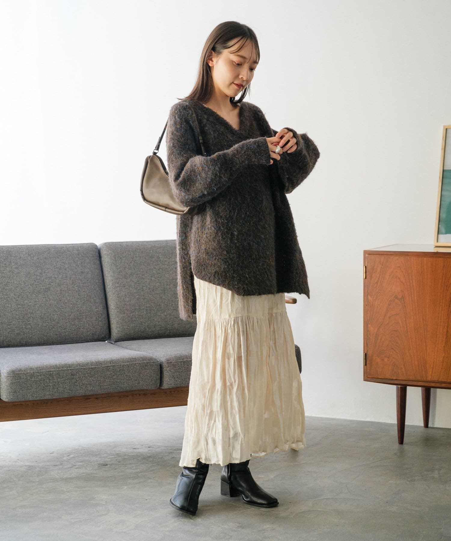 霜降り調の色合いが、ナチュラルで温かみのある印象を与え、着るだけでやさしい雰囲気を演出。