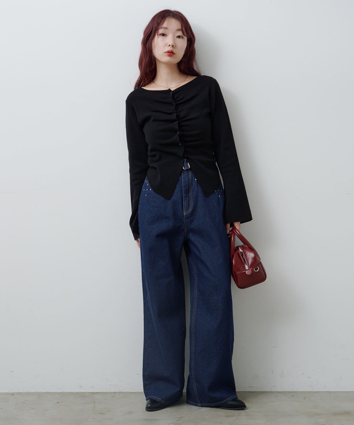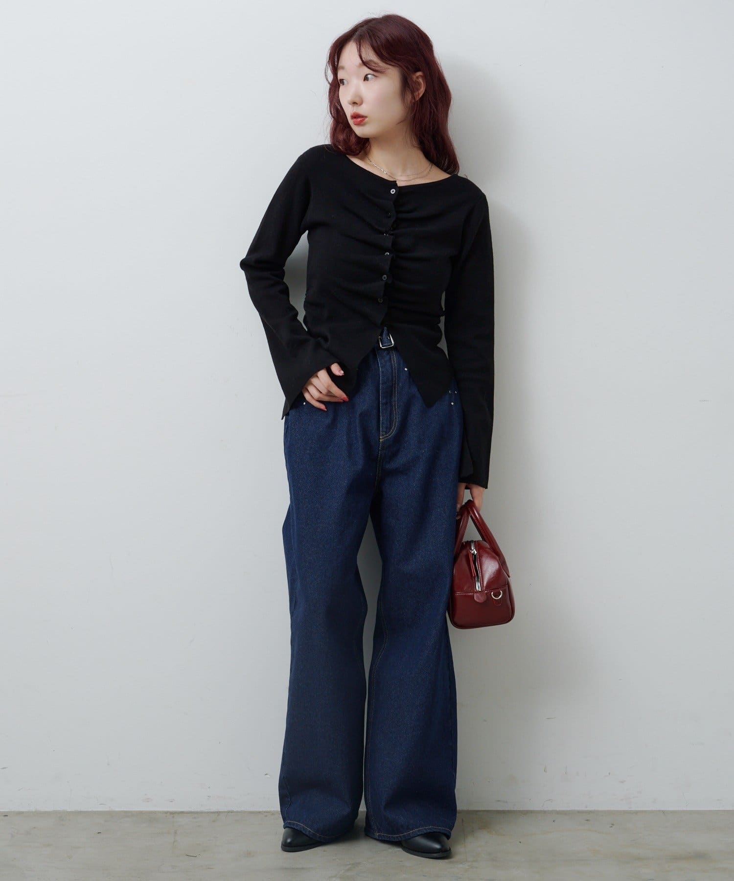すっきりと見せてくれるので、ボリュームのあるボトムとの相性◎