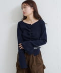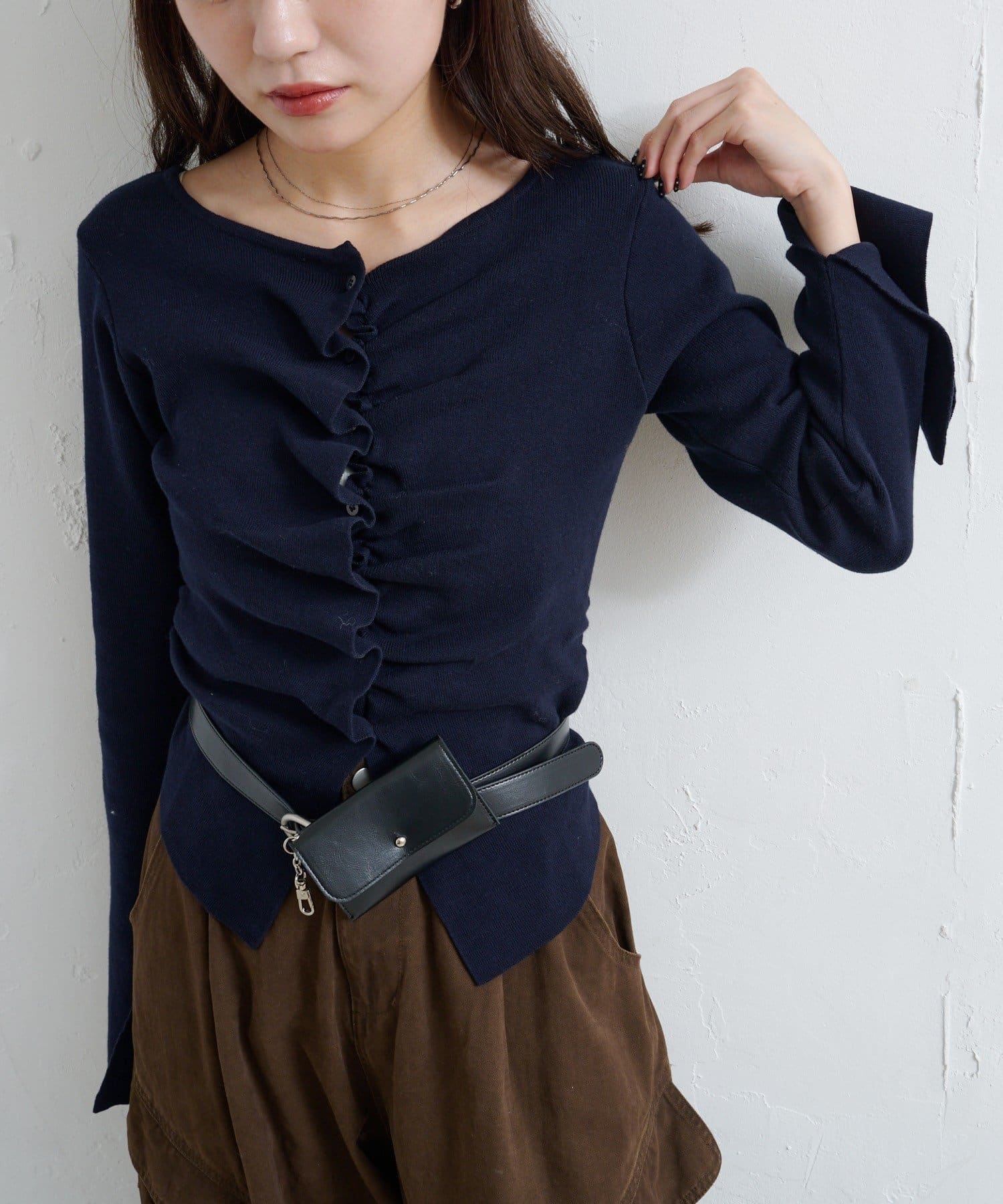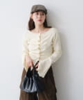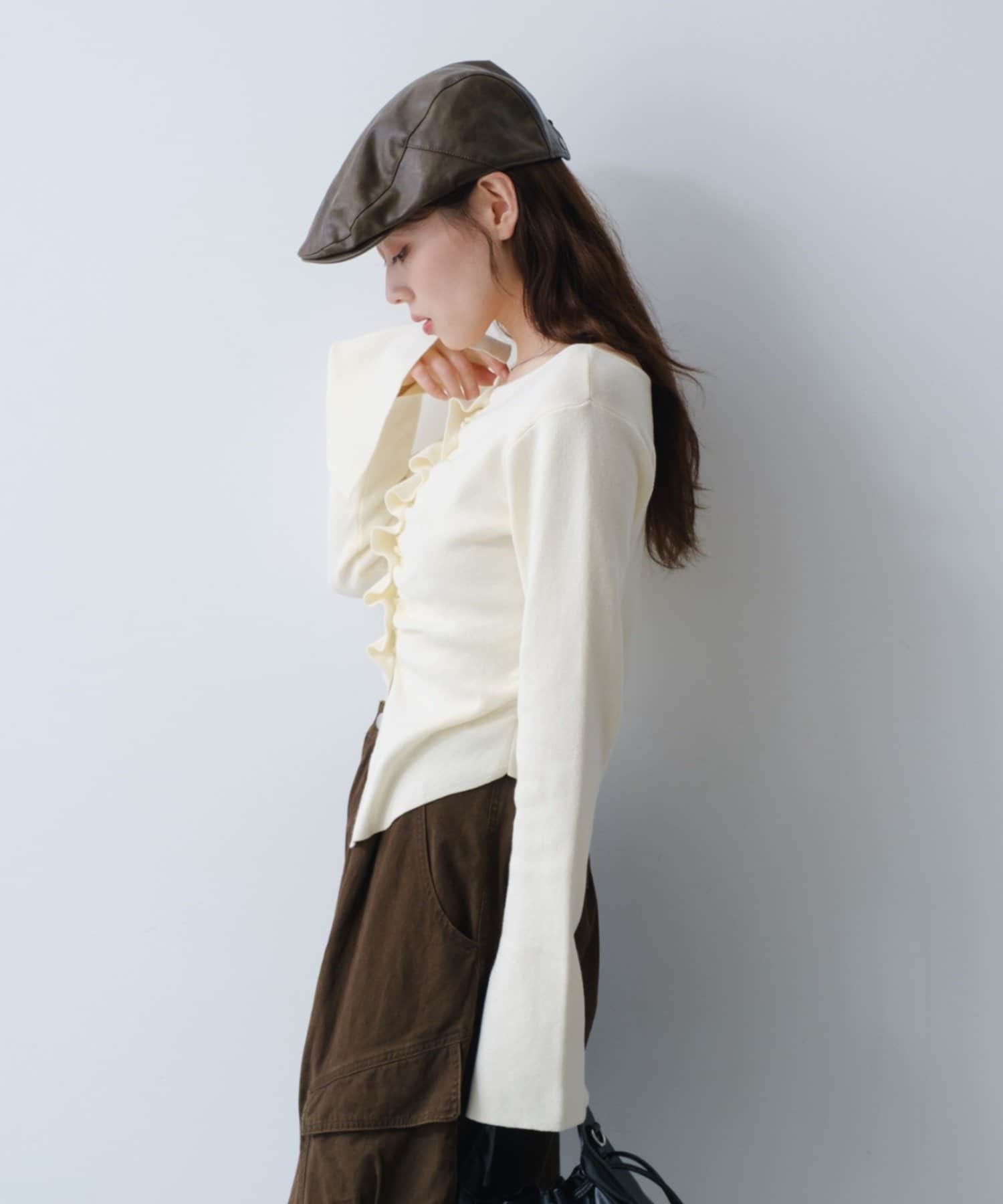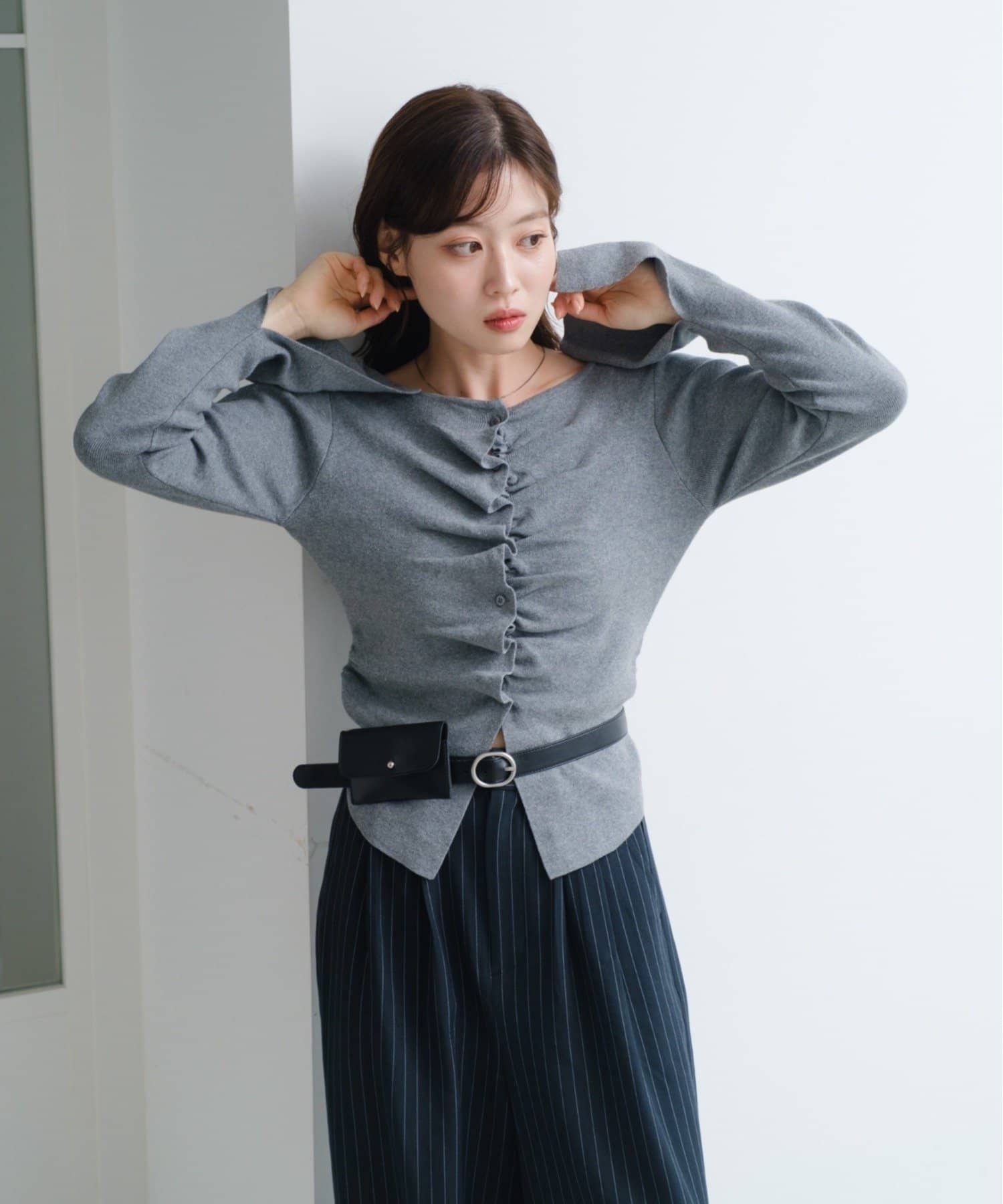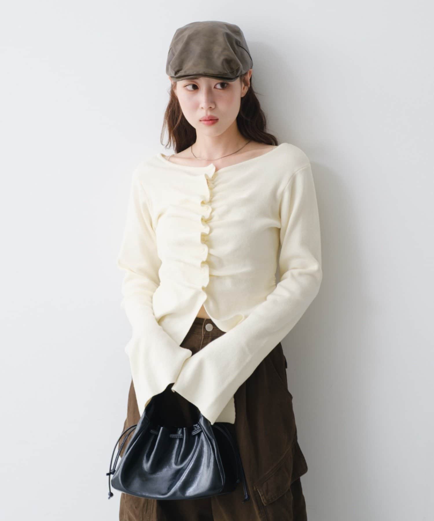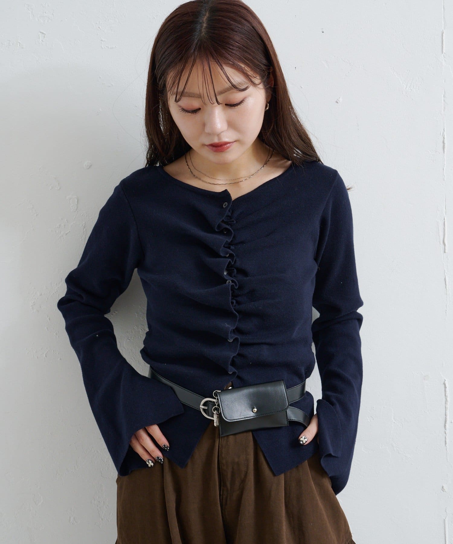 立体的なフロントギャザーがポイントのニットカーディガン。