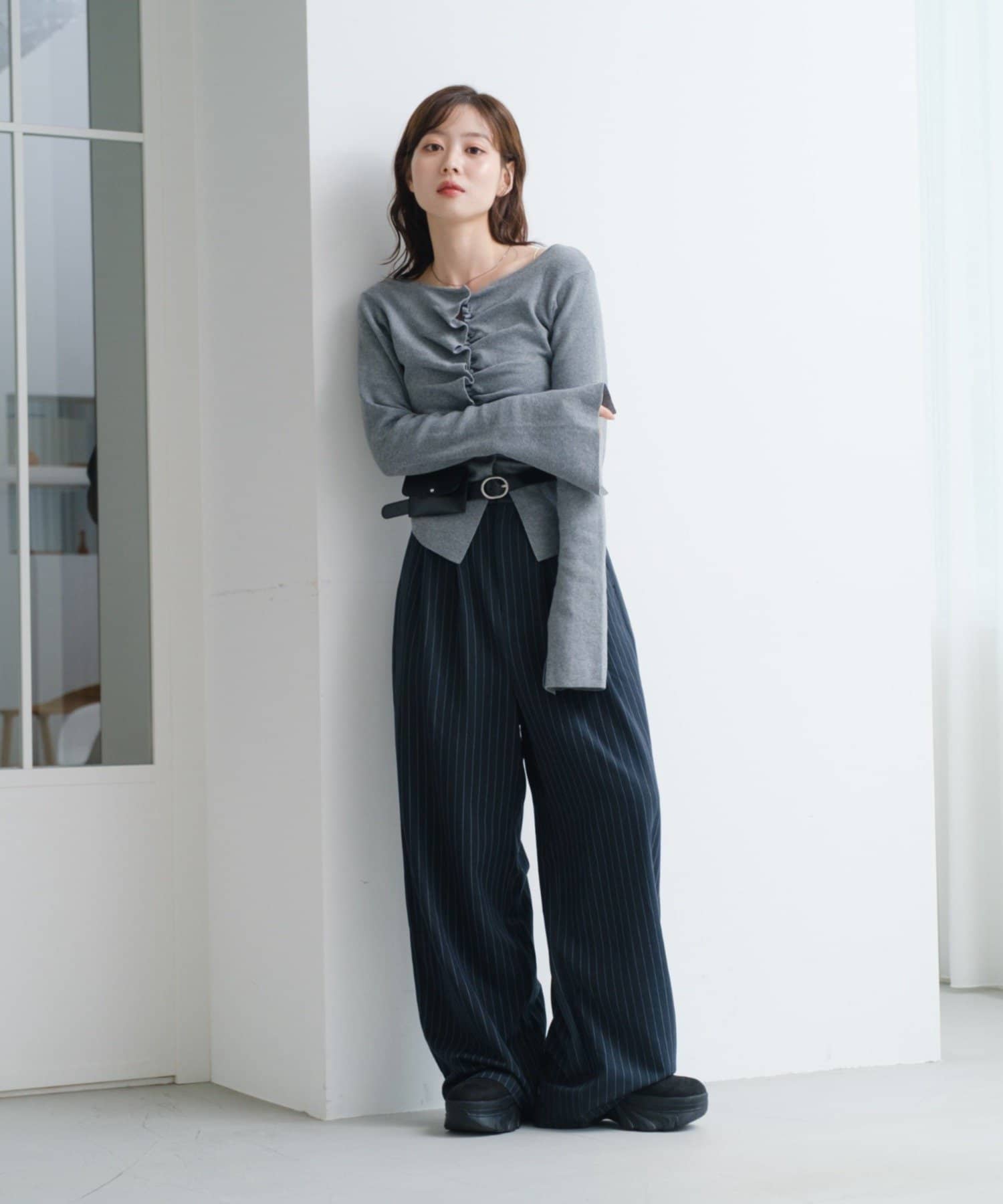 パンツと合わせてカジュアルに、スカートと合わせてフェミニンにと幅広いスタイリングが楽しめます。