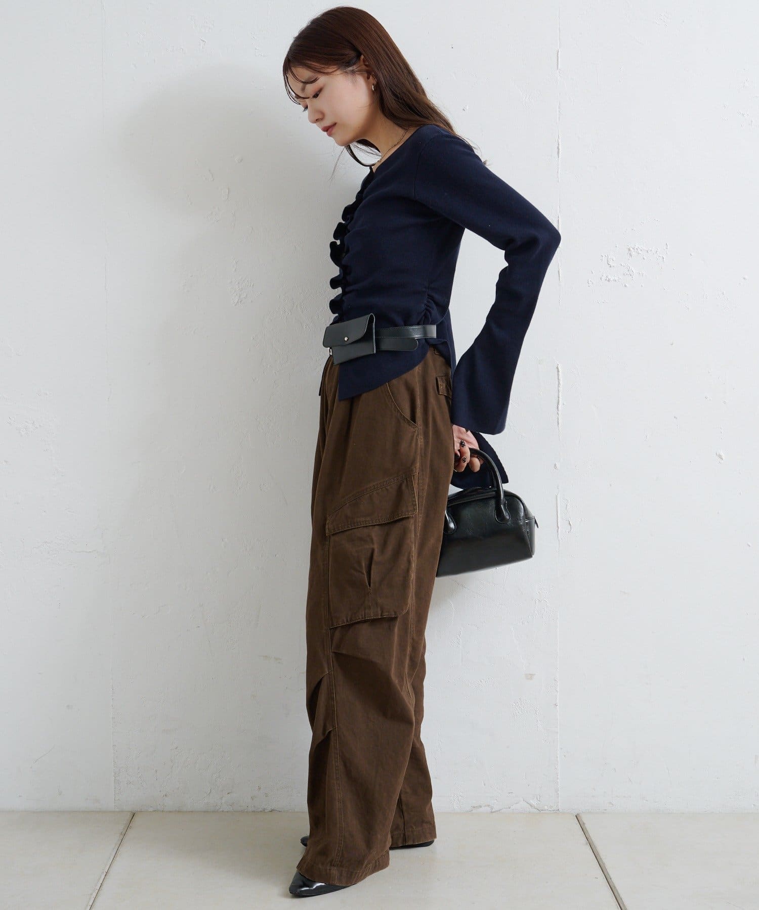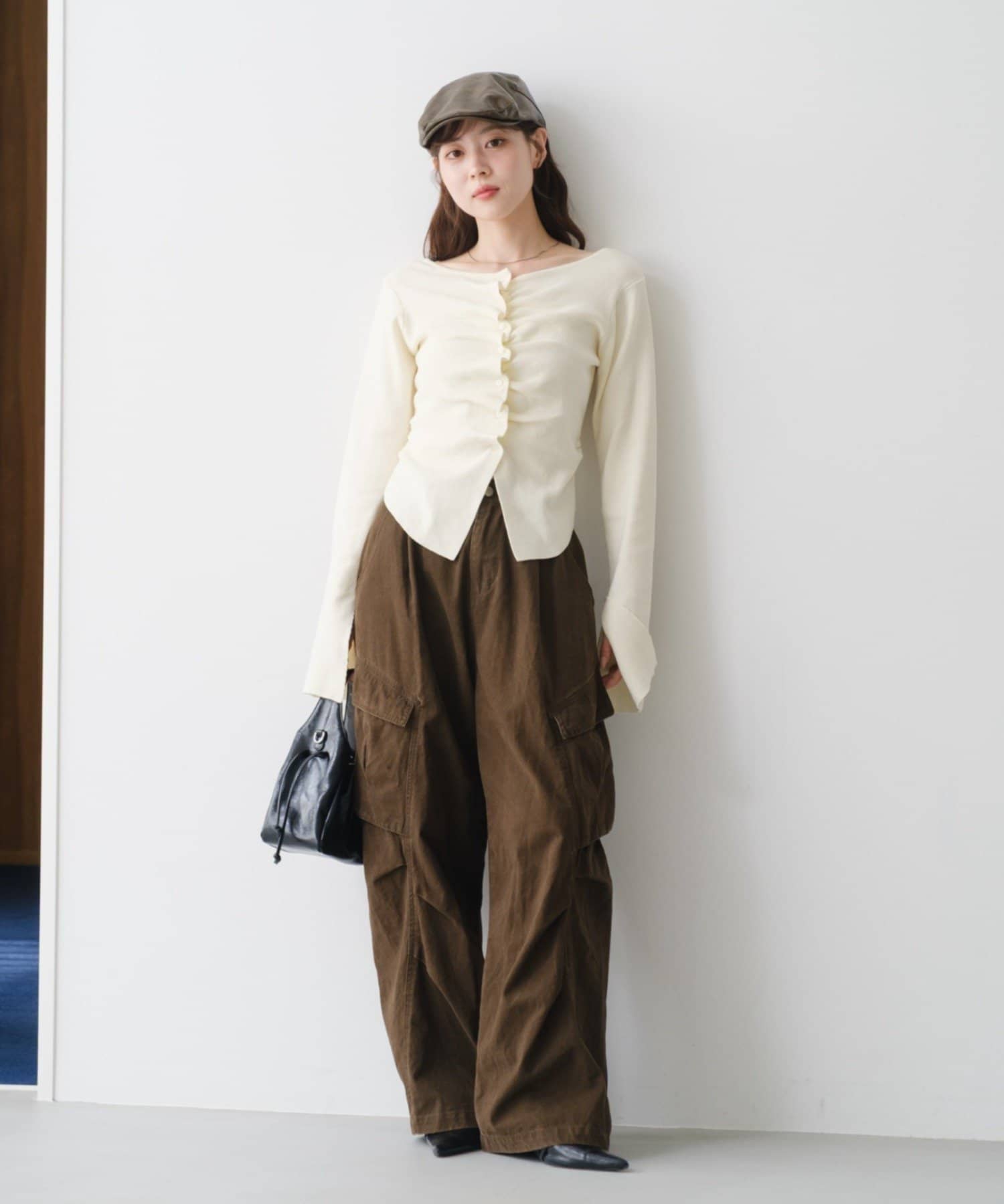 すっきりと見せてくれるので、ボリュームのあるボトムとの相性◎