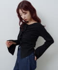 立体的なフロントギャザーがポイントのニットカーディガン。