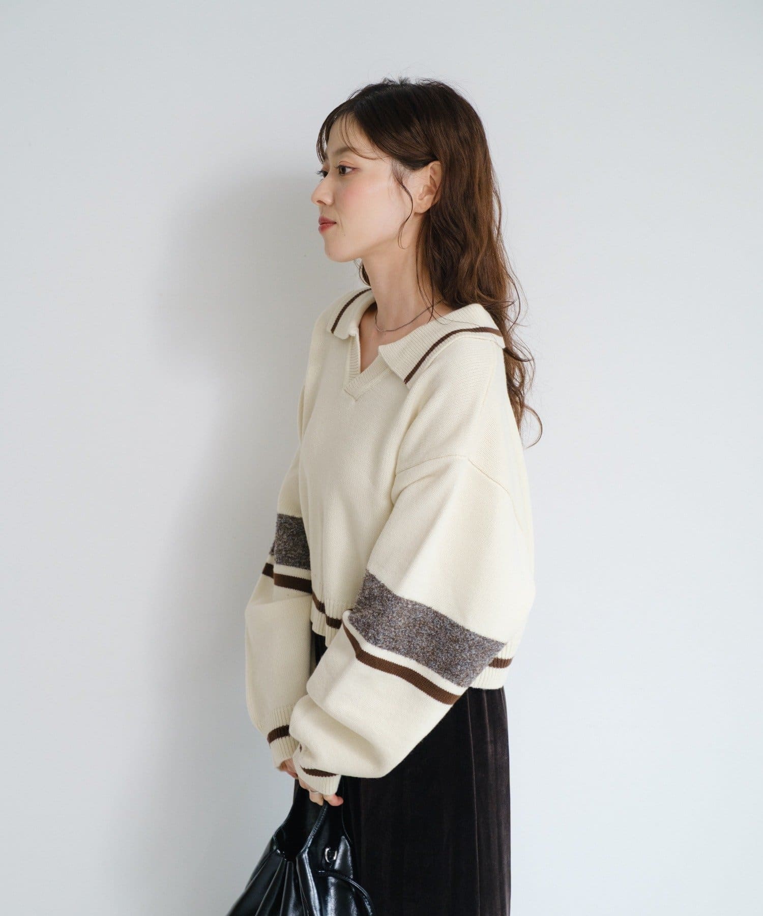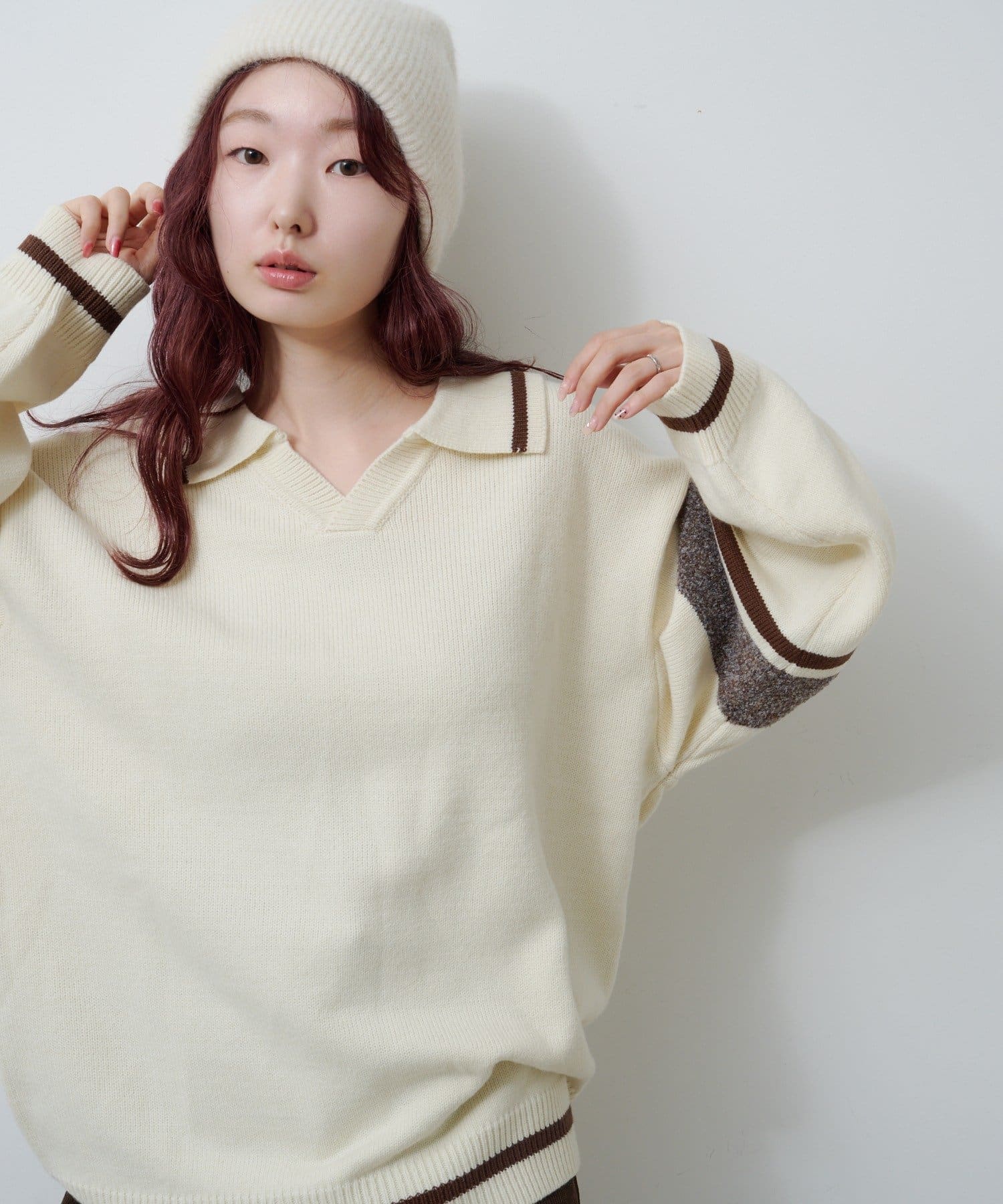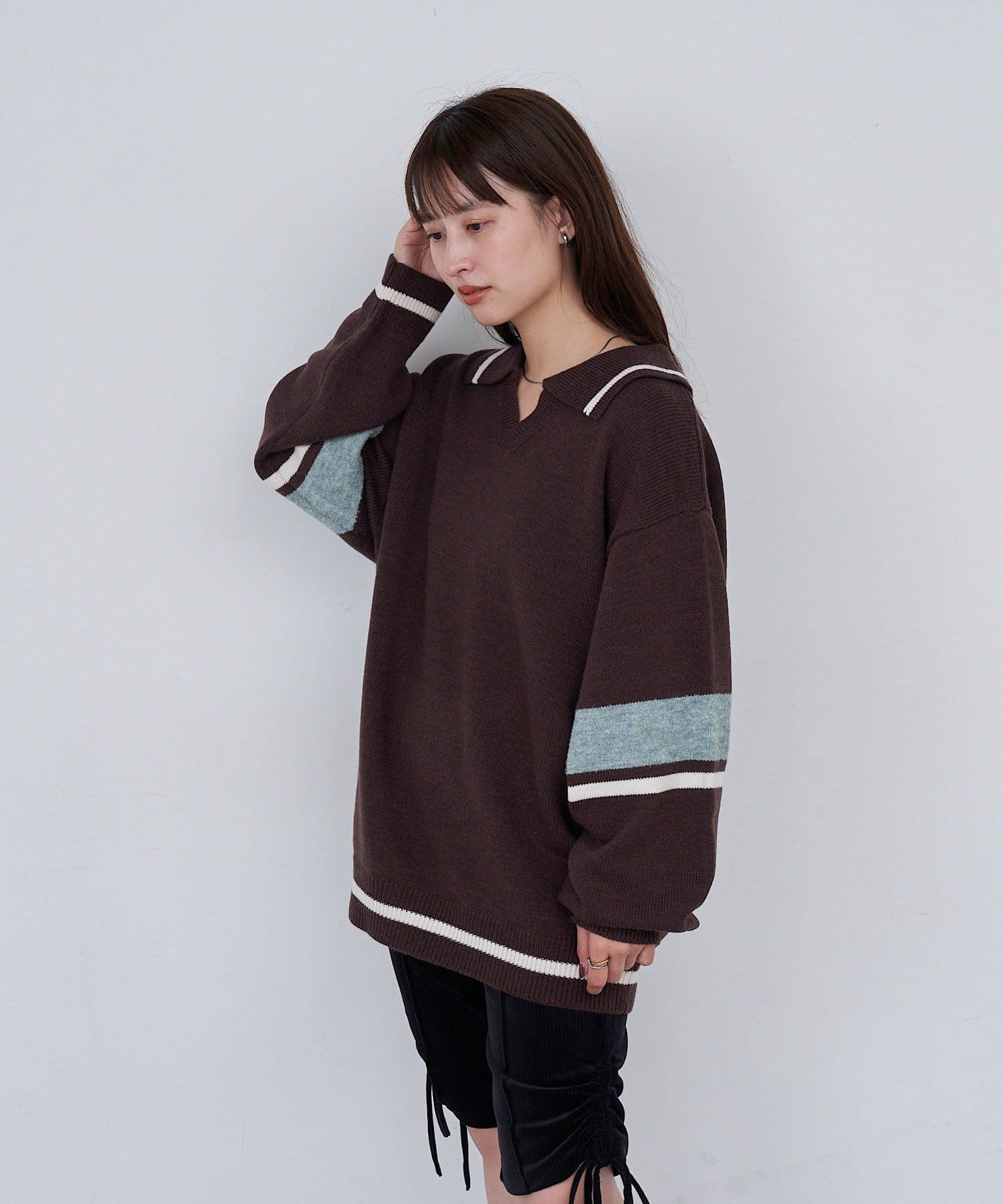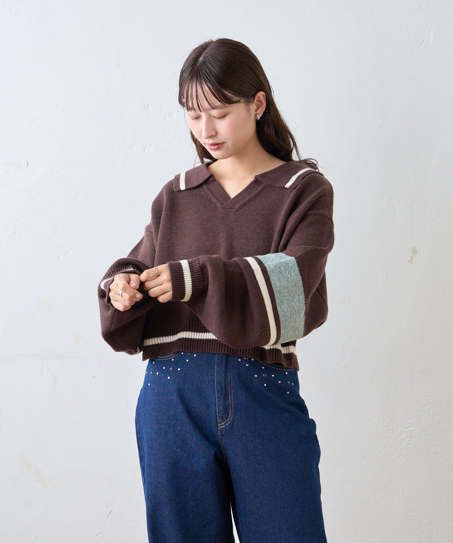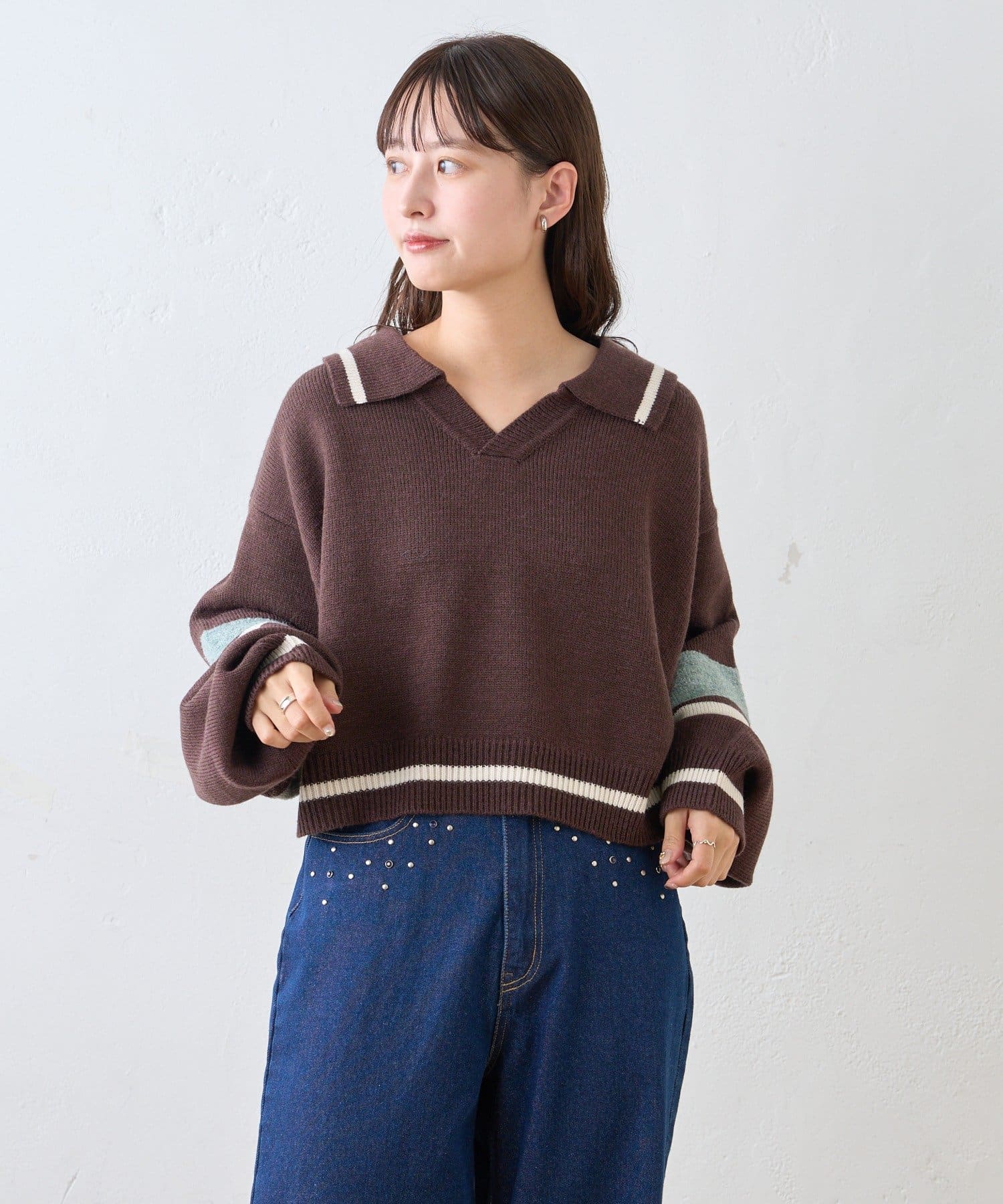 【S.Mサイズ展開】スキッパーラインニットプルオーバー