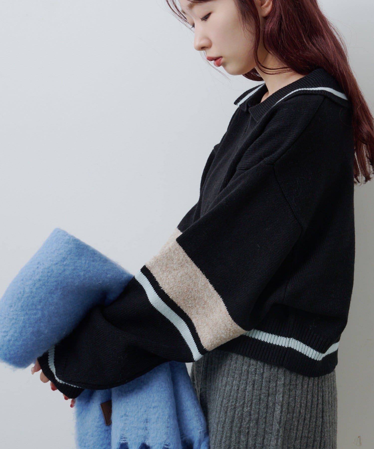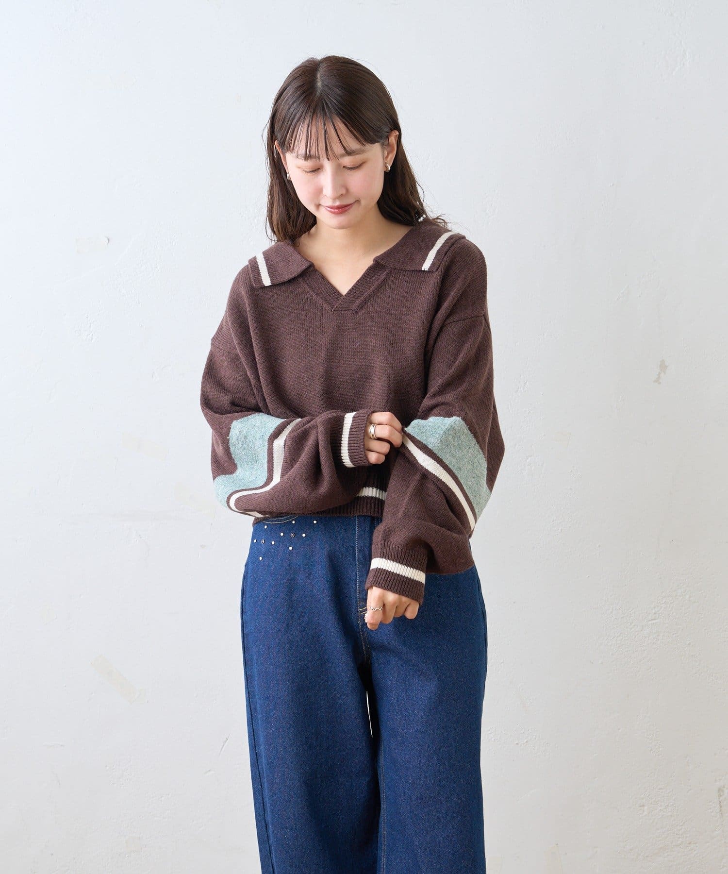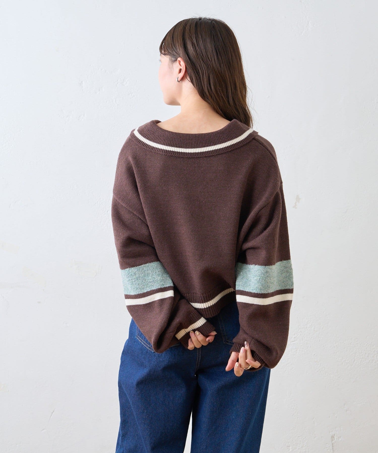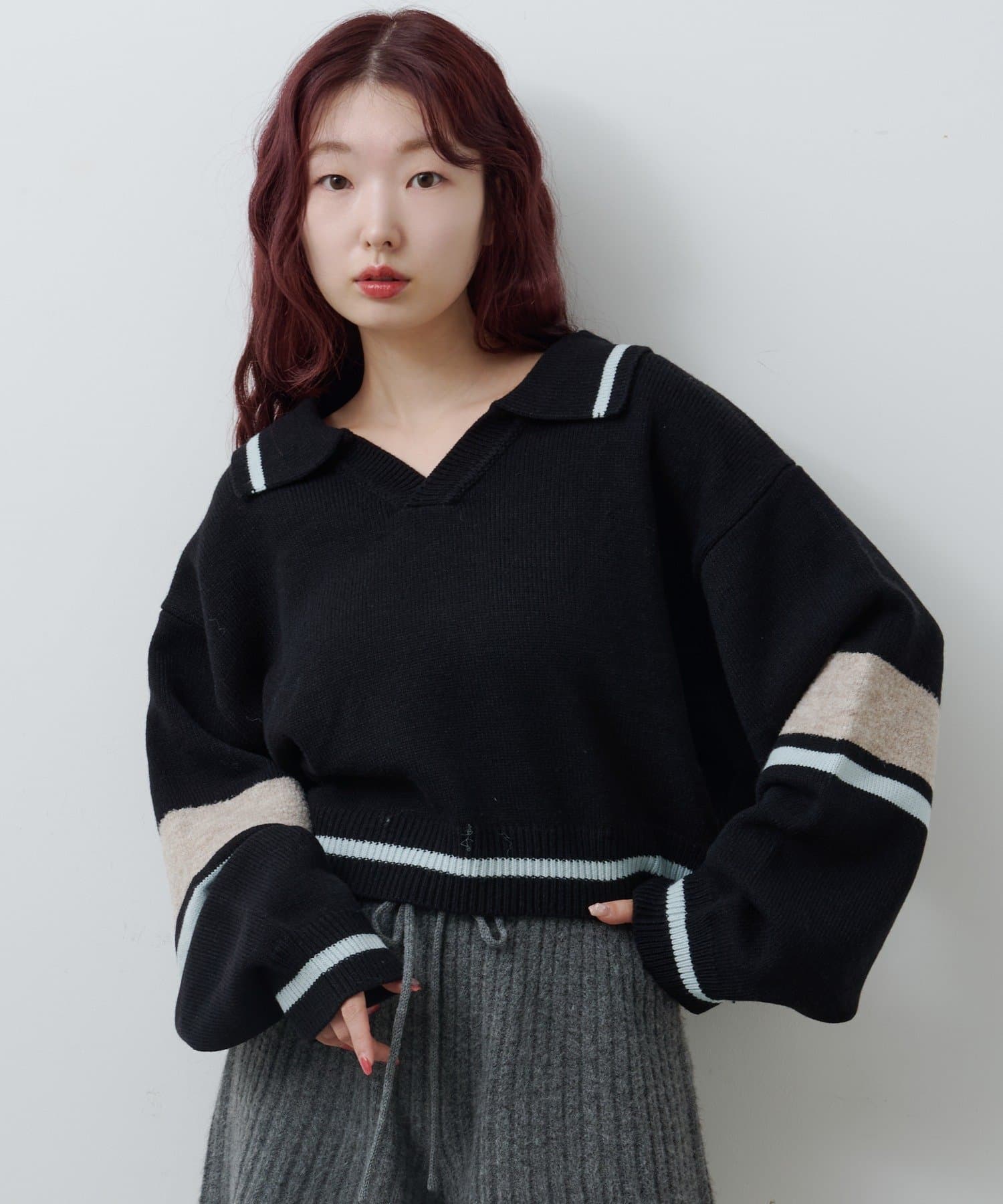 【S.Mサイズ展開】スキッパーラインニットプルオーバー