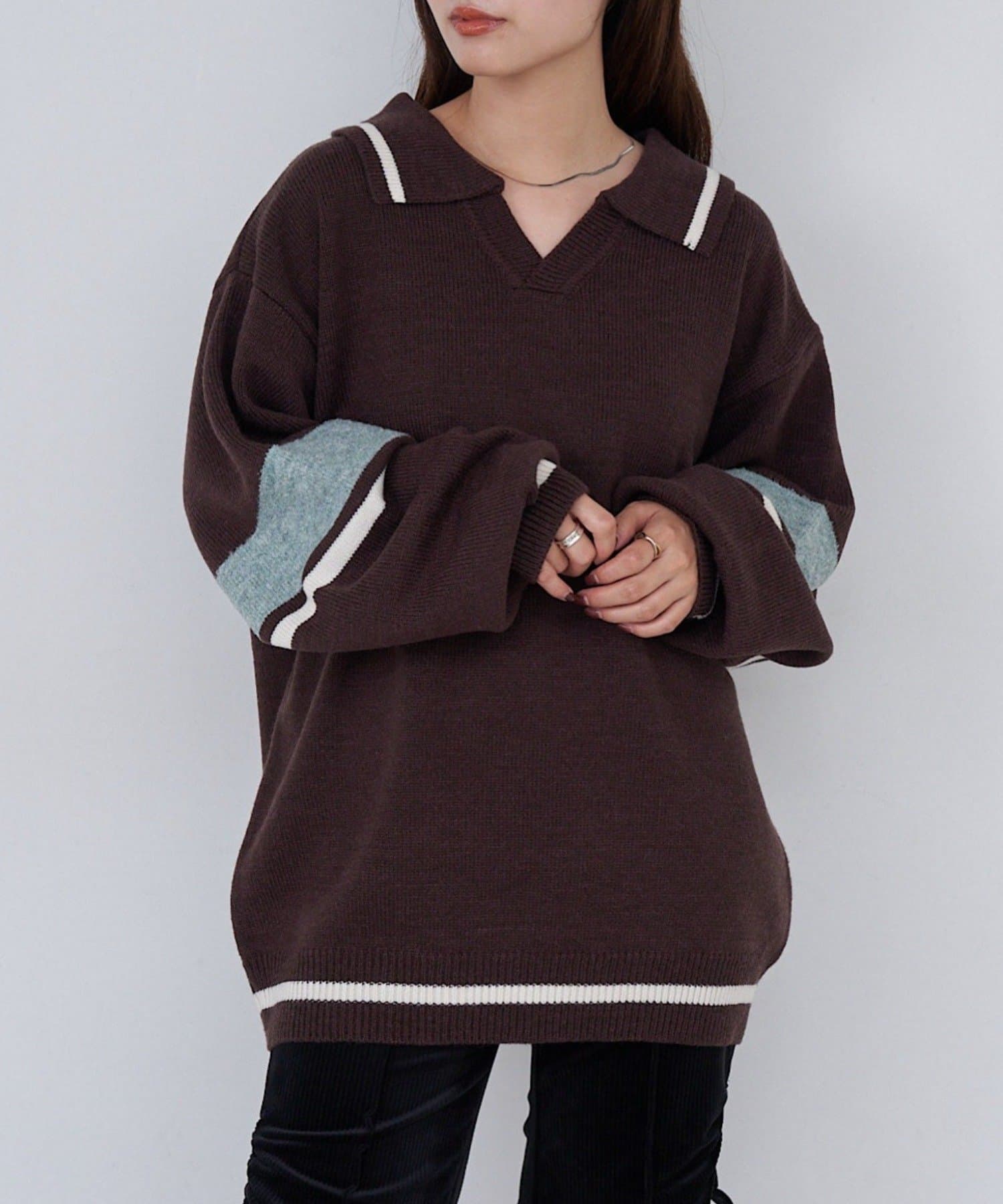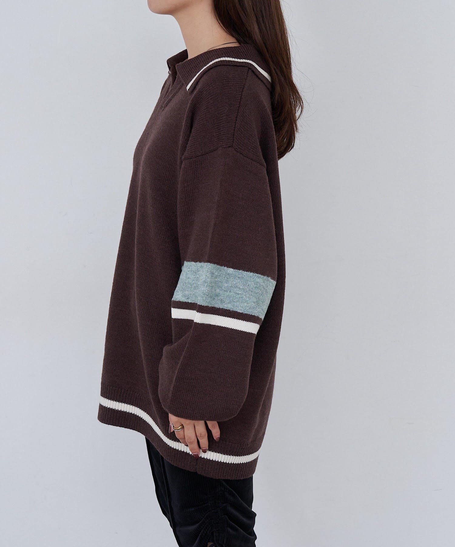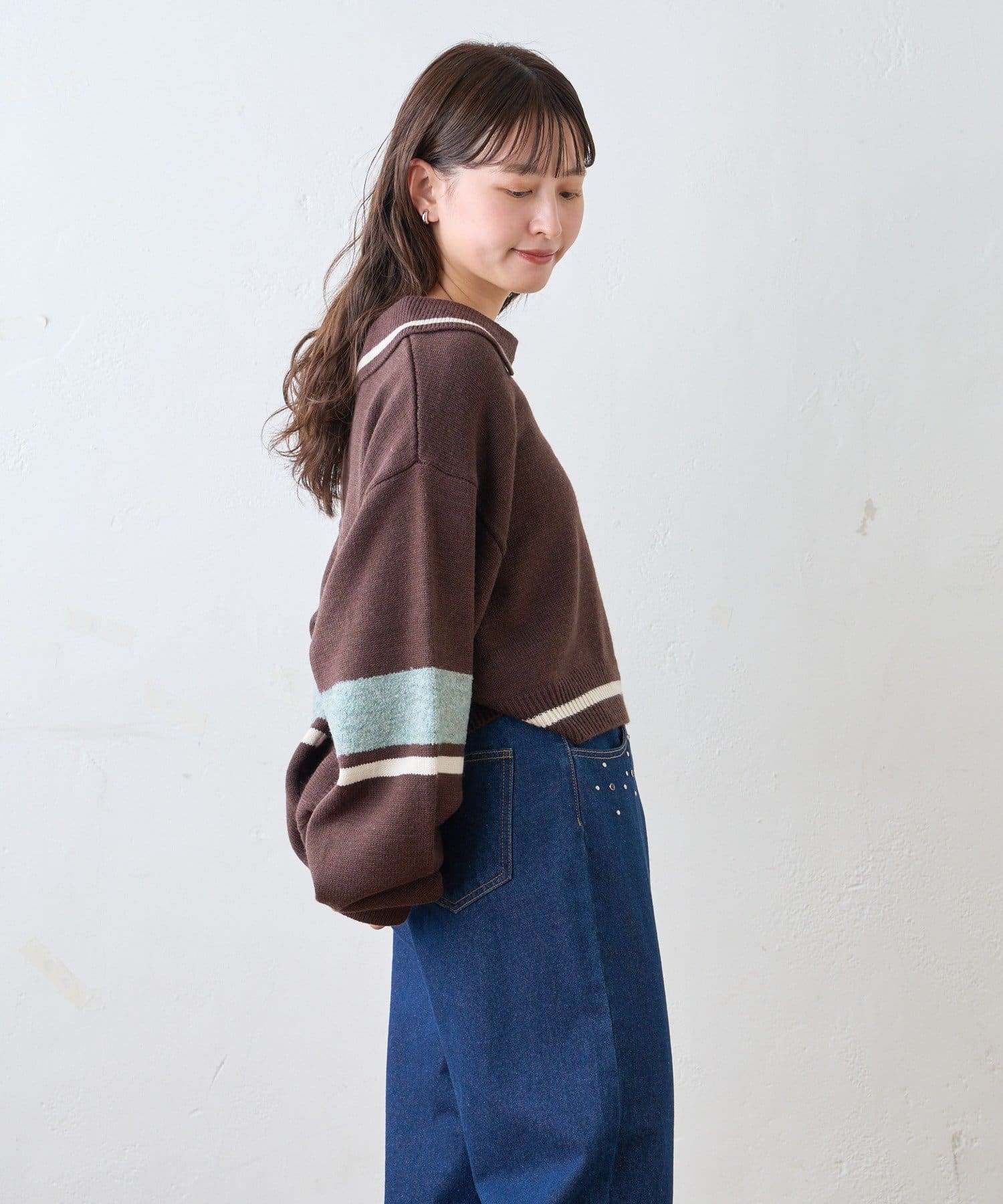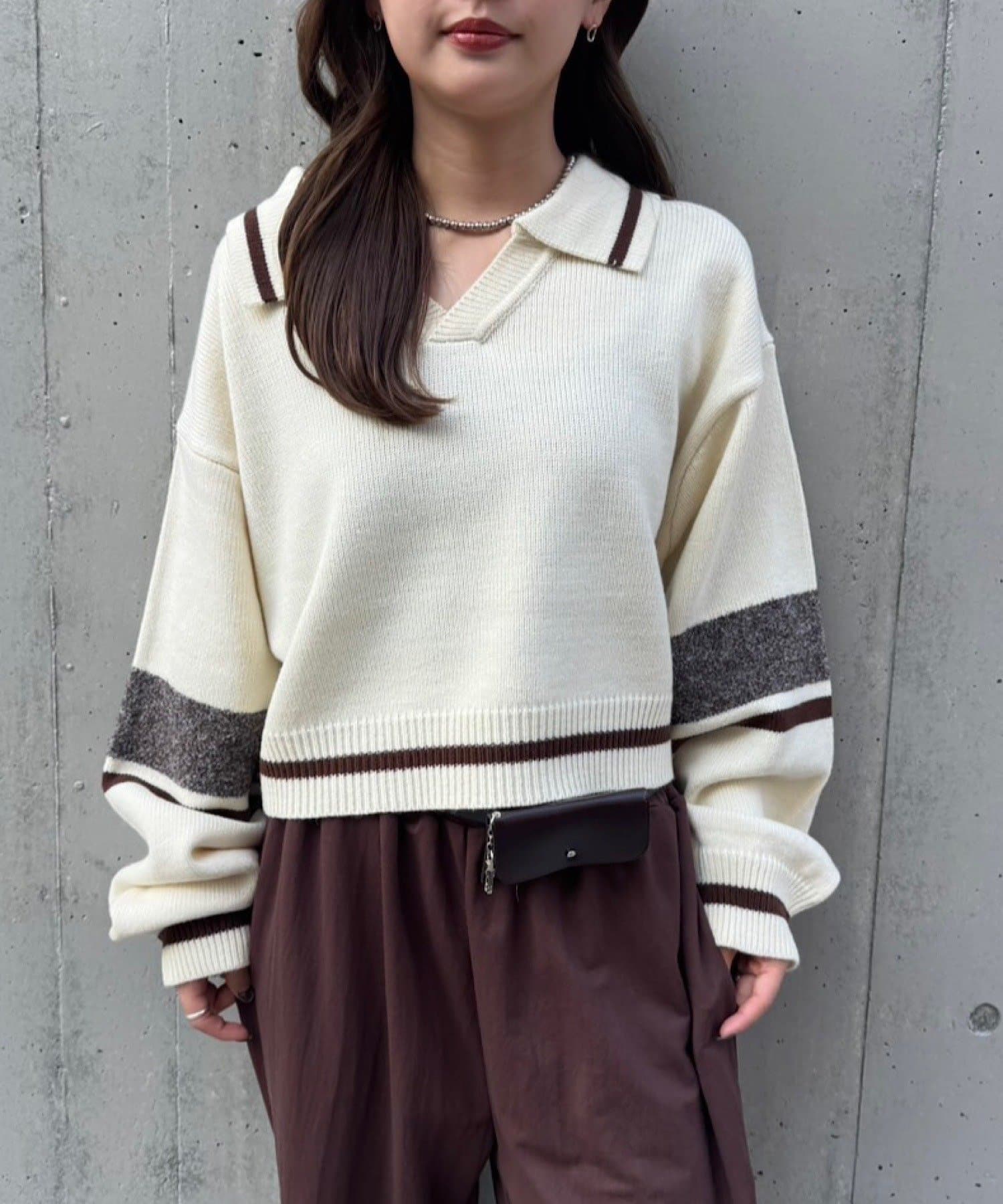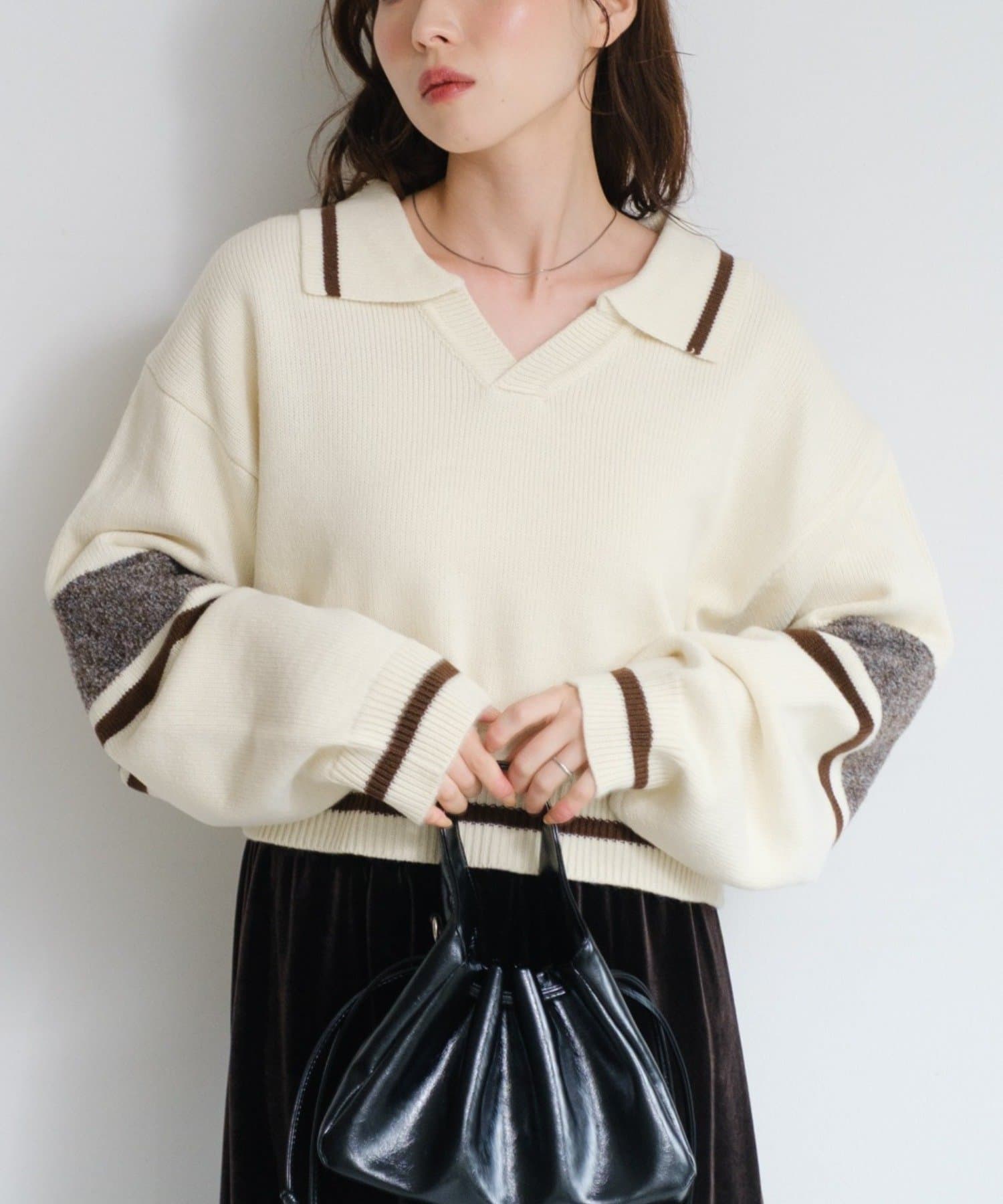 【S.Mサイズ展開】スキッパーラインニットプルオーバー