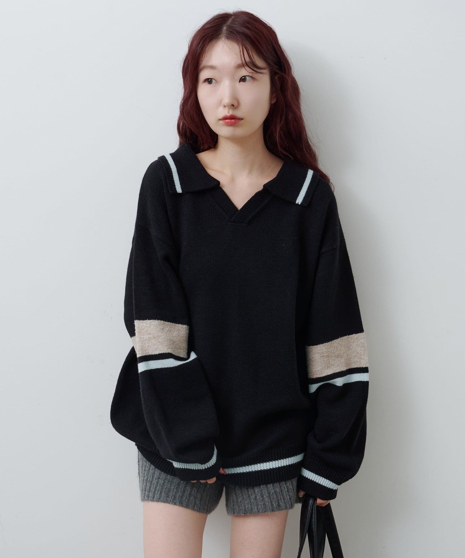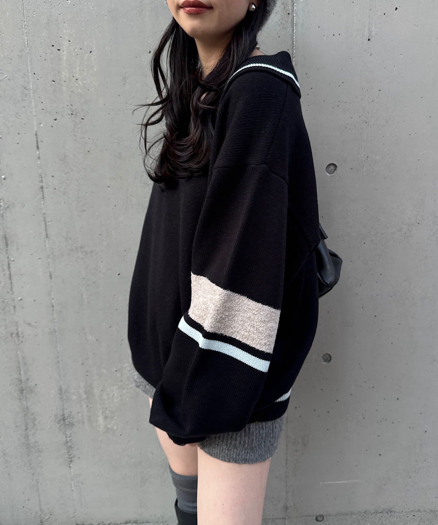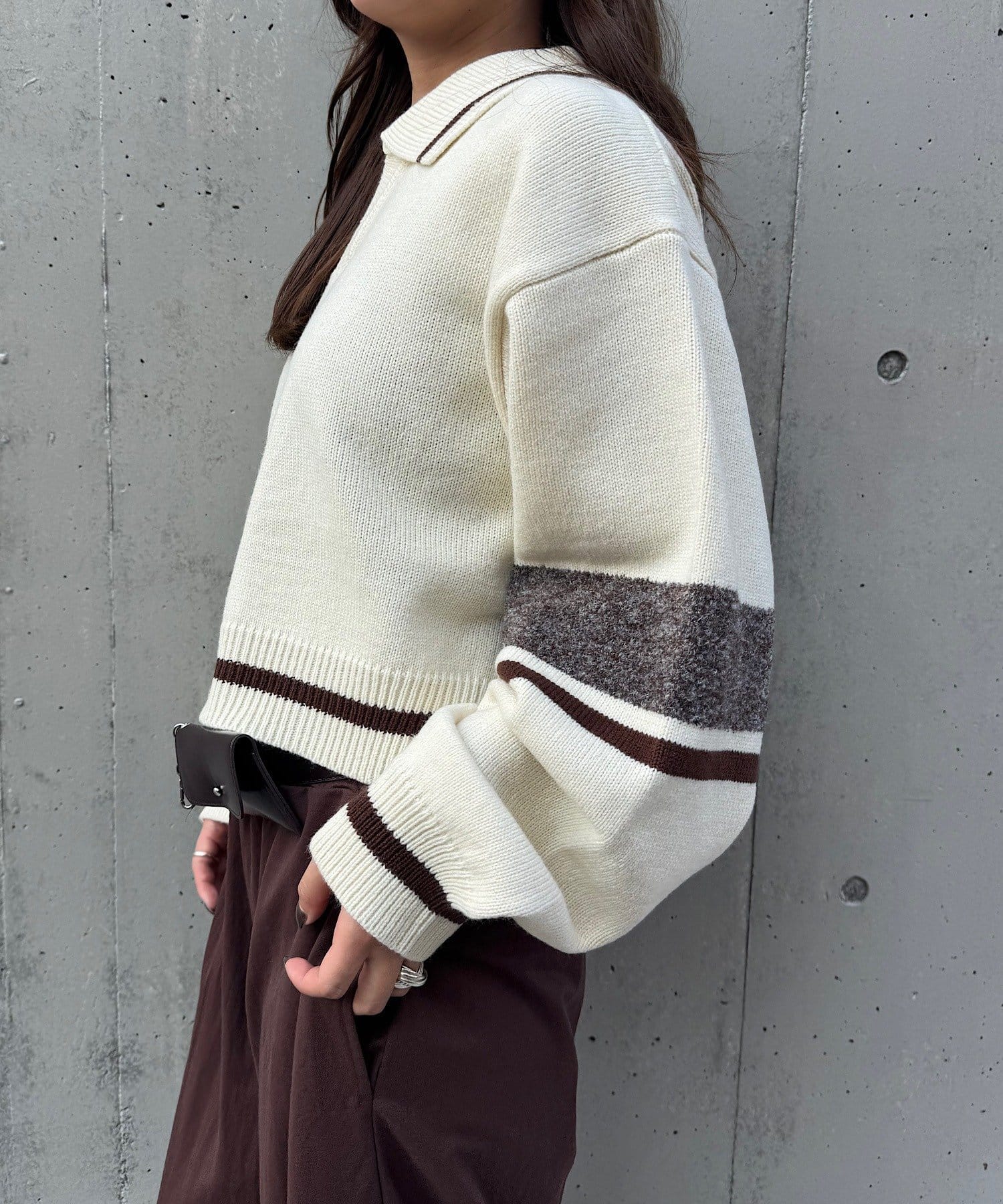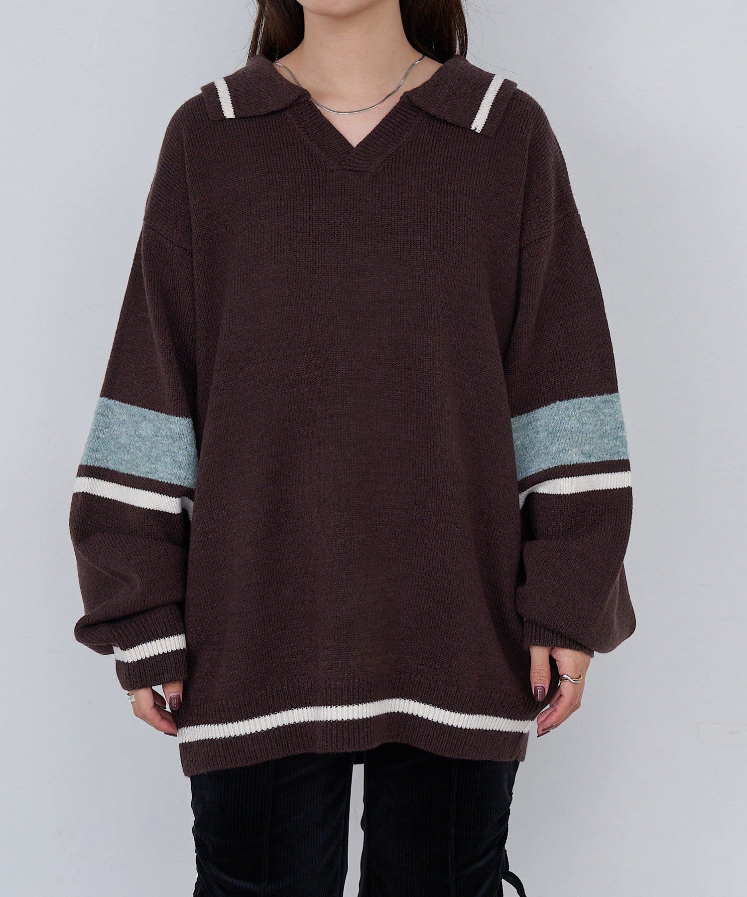 【S.Mサイズ展開】スキッパーラインニットプルオーバー